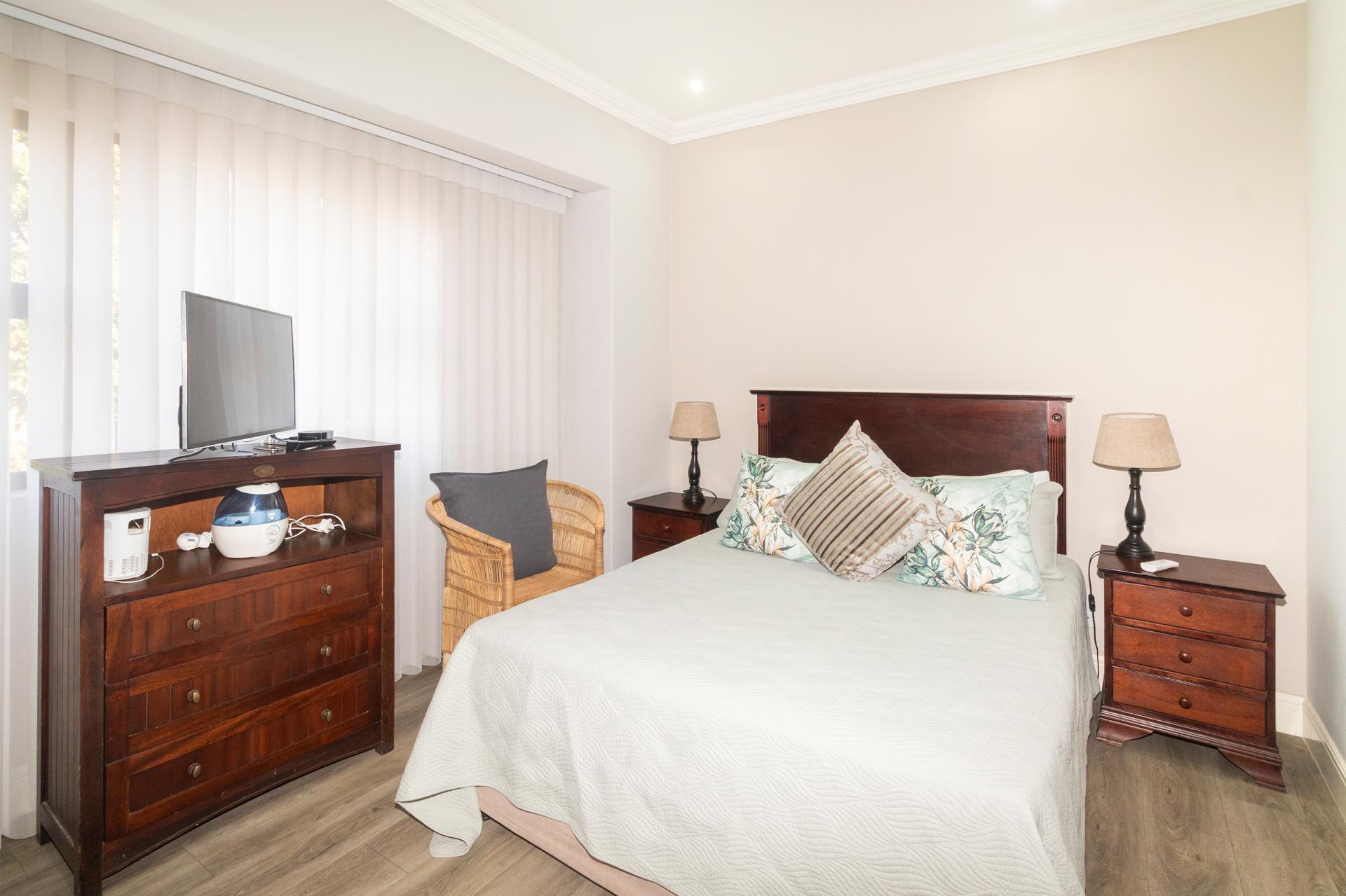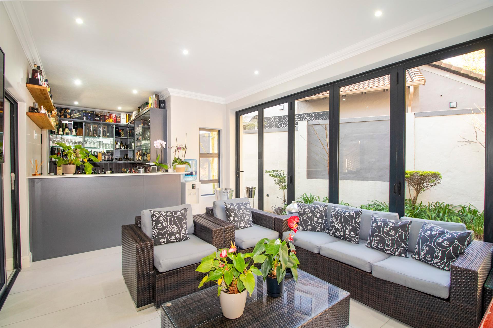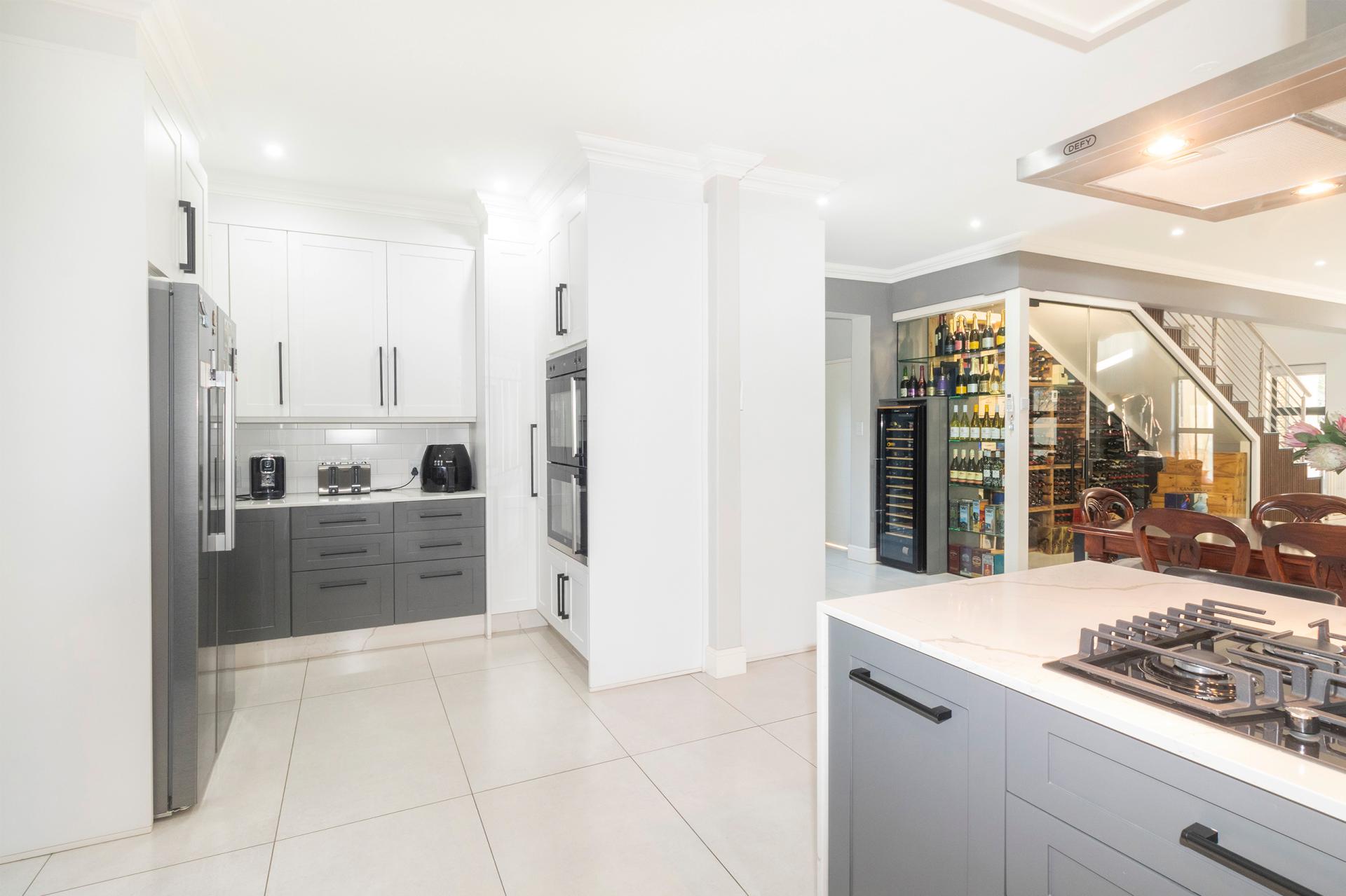 All three bedrooms are en-suite, offering privacy and comfort, while a stylish guest bathroom and large dedicated study add to the home’s convenience. The open-plan lounge and dining area flows effortlessly into a beautiful, well-appointed kitchen featuring a large gas stove — ideal for both everyday family meals and entertaining. From here, the living spaces extend into a fully enclosed entertainment patio, complete with a custom-built bar — perfect for hosting guests all year round. A cozy pajama lounge offers a secondary living area for relaxed family time.