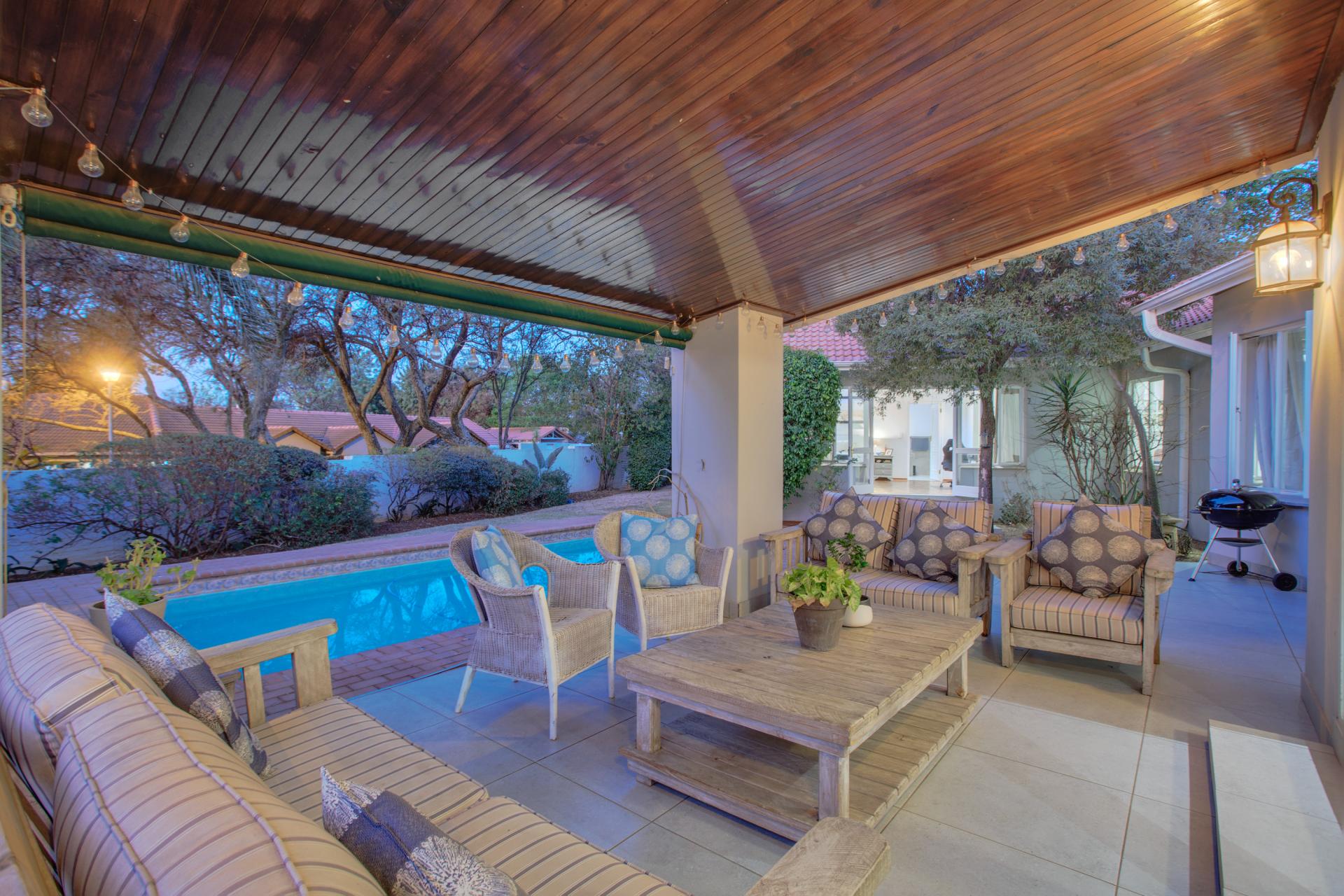 Discover your dream home in the heart of Phase 1, Fourways Gardens! This stunning north-facing residence is situated on a quiet street and features an expansive garden with a sparkling pool and inviting patio, perfect for entertaining.