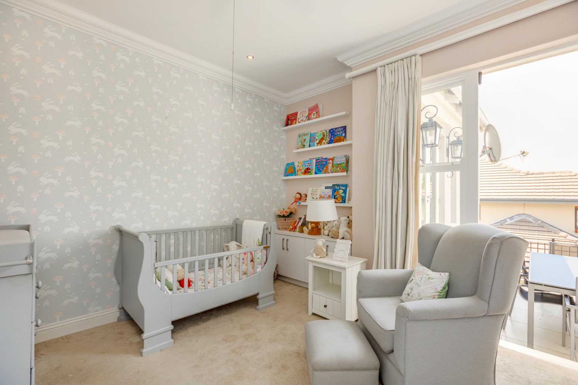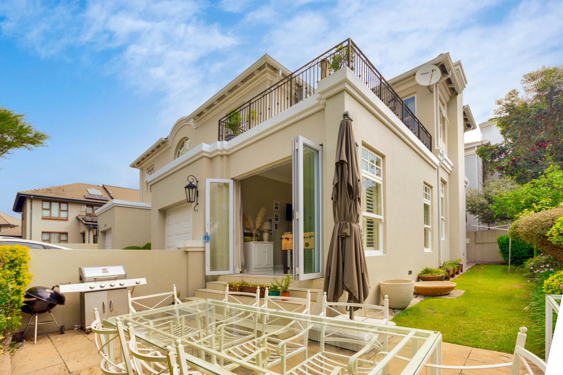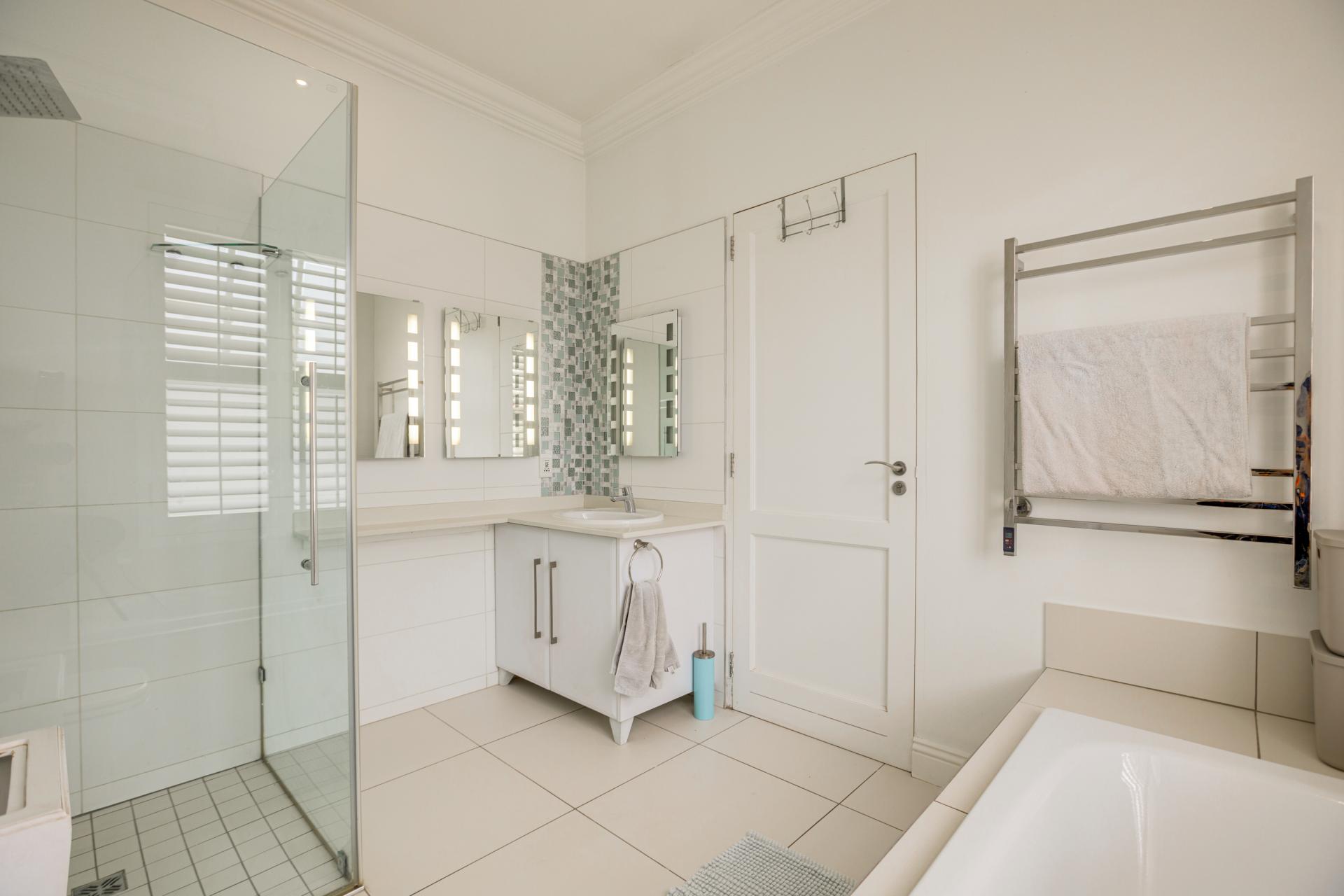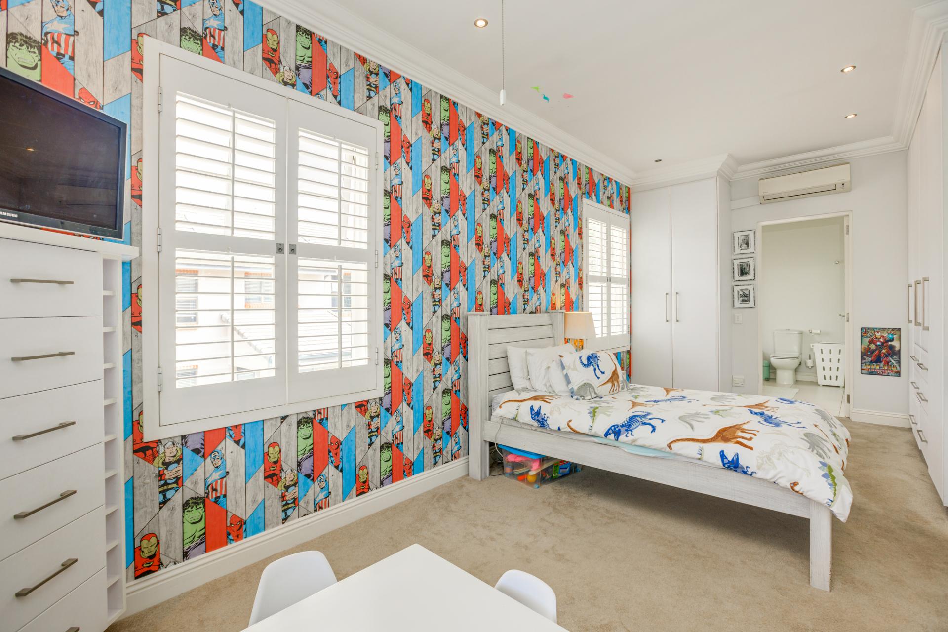 Upstairs, a study pause area with ample cupboard space provides a perfect workspace or reading nook. The first bedroom is spacious and carpeted, complete with American shutters, generous built-in cupboards, an en-suite bathroom, and air conditioning. The second bedroom, also carpeted and fitted with ample cupboard space, features an en-suite bathroom with a shower, basin, and toilet and opens onto a gorgeous balcony, offering serene views of the estate and lush green tree canopies. Completing the upstairs accommodation is the magnificent main bedroom, a sanctuary of luxury that includes a private study area leading to a balcony with breathtaking views. A separate, large walk-in dresser provides ample storage space, while the main en-suite bathroom exudes opulence with double vanities set on sleek steel stone countertops, a spacious bath, heated towel rails, and a large shower. All bedrooms in the home are fitted with air conditioning, ensuring comfort throughout the seasons.