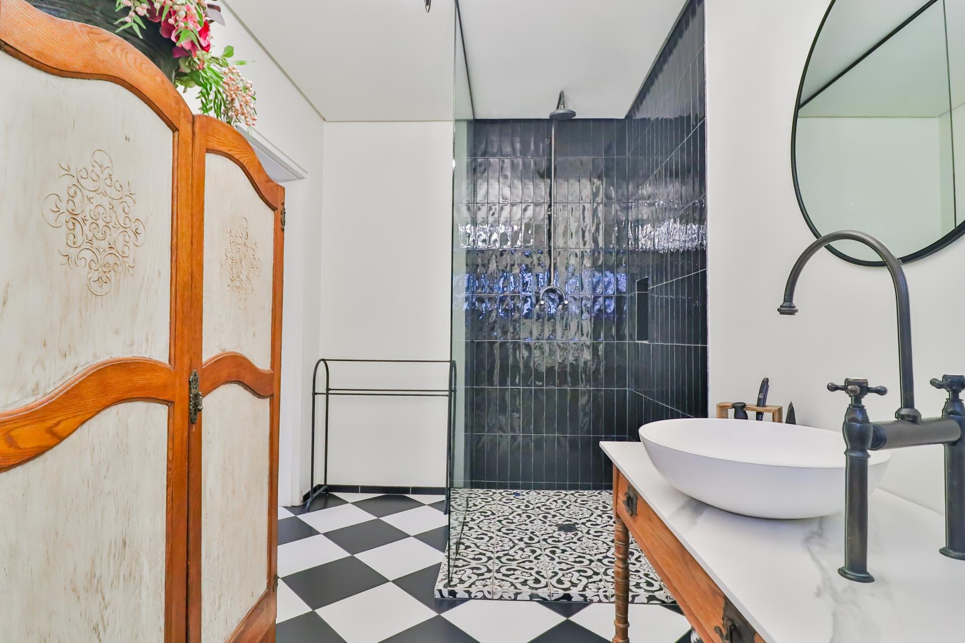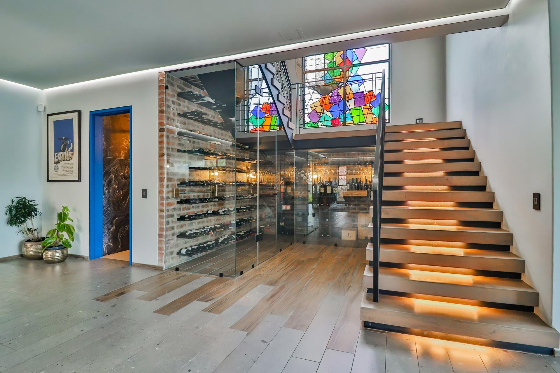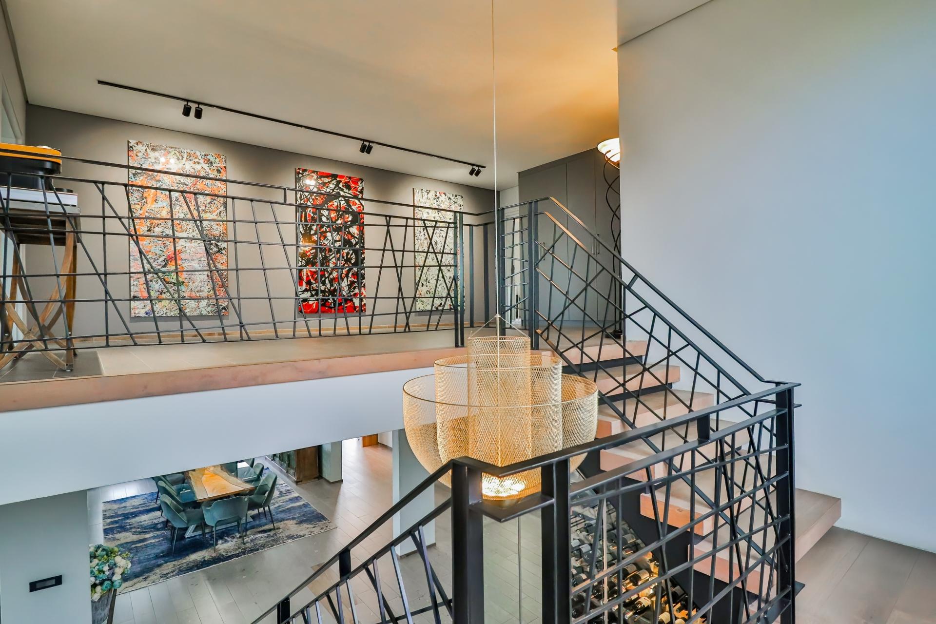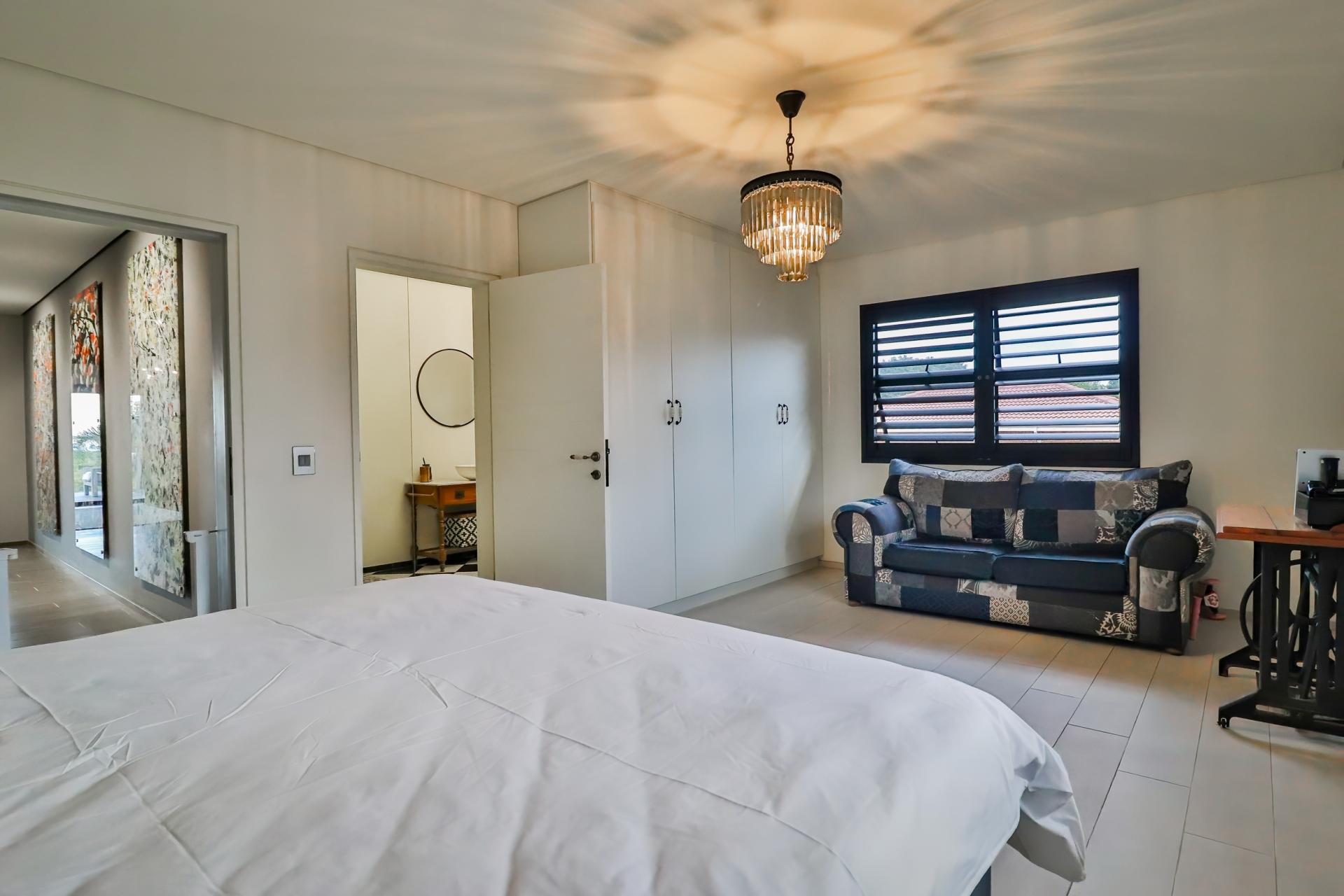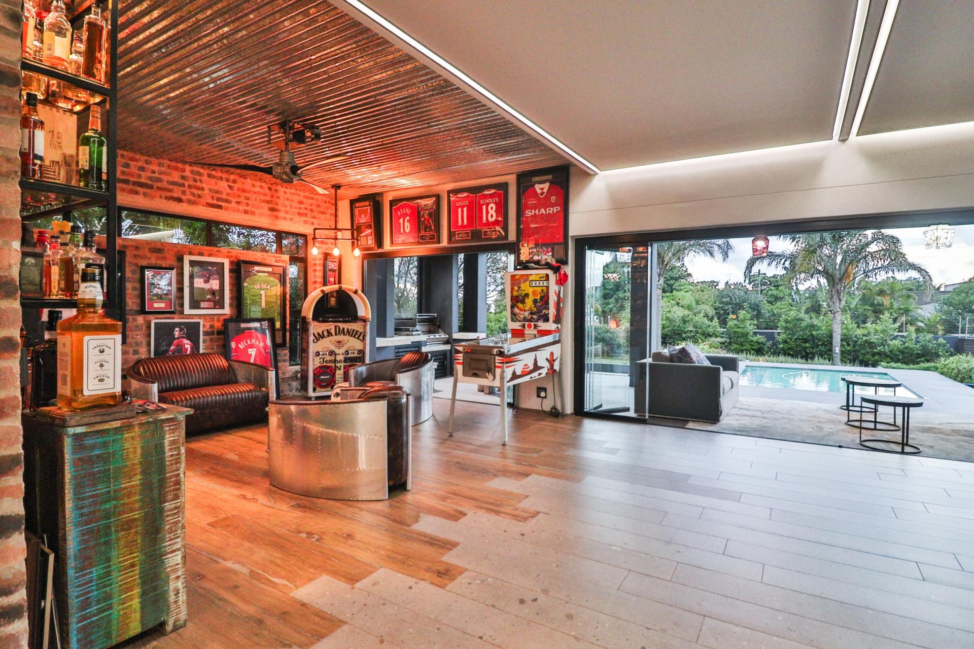 Entertain in unparalleled style with a designer bar that flows effortlessly into a sea-salt, temperature-controlled pool, ideal for alfresco celebrations or tranquil evenings under the stars. A dedicated braai area and fire pit add an unmistakable African charm to this luxurious outdoor setting.