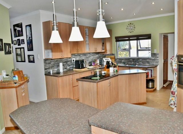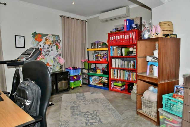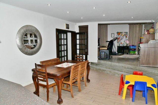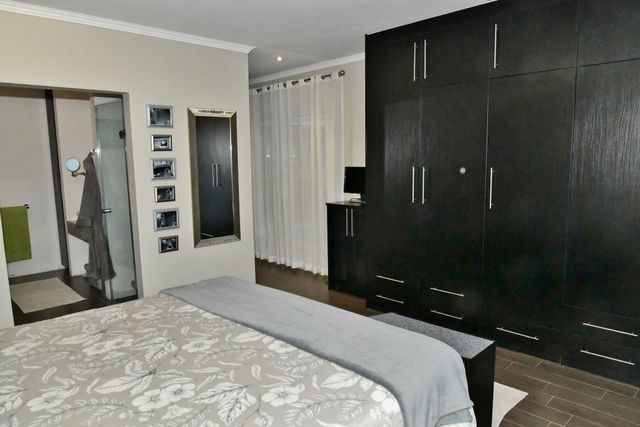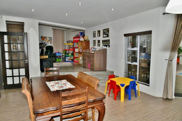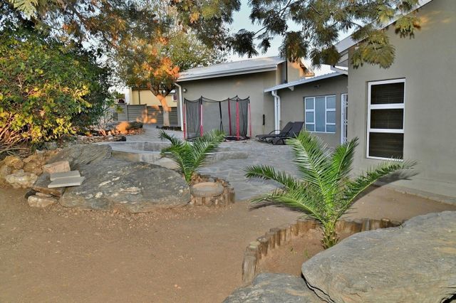But it's not just the interior that impresses. Outside, the sizeable erf offers ample space for parking, a play area for kids and pets, a built-in trampoline for hours of active fun, and a cosy boma, perfect for unwinding by the crackling fire.