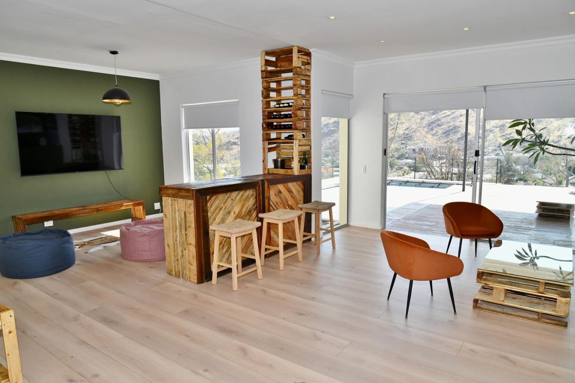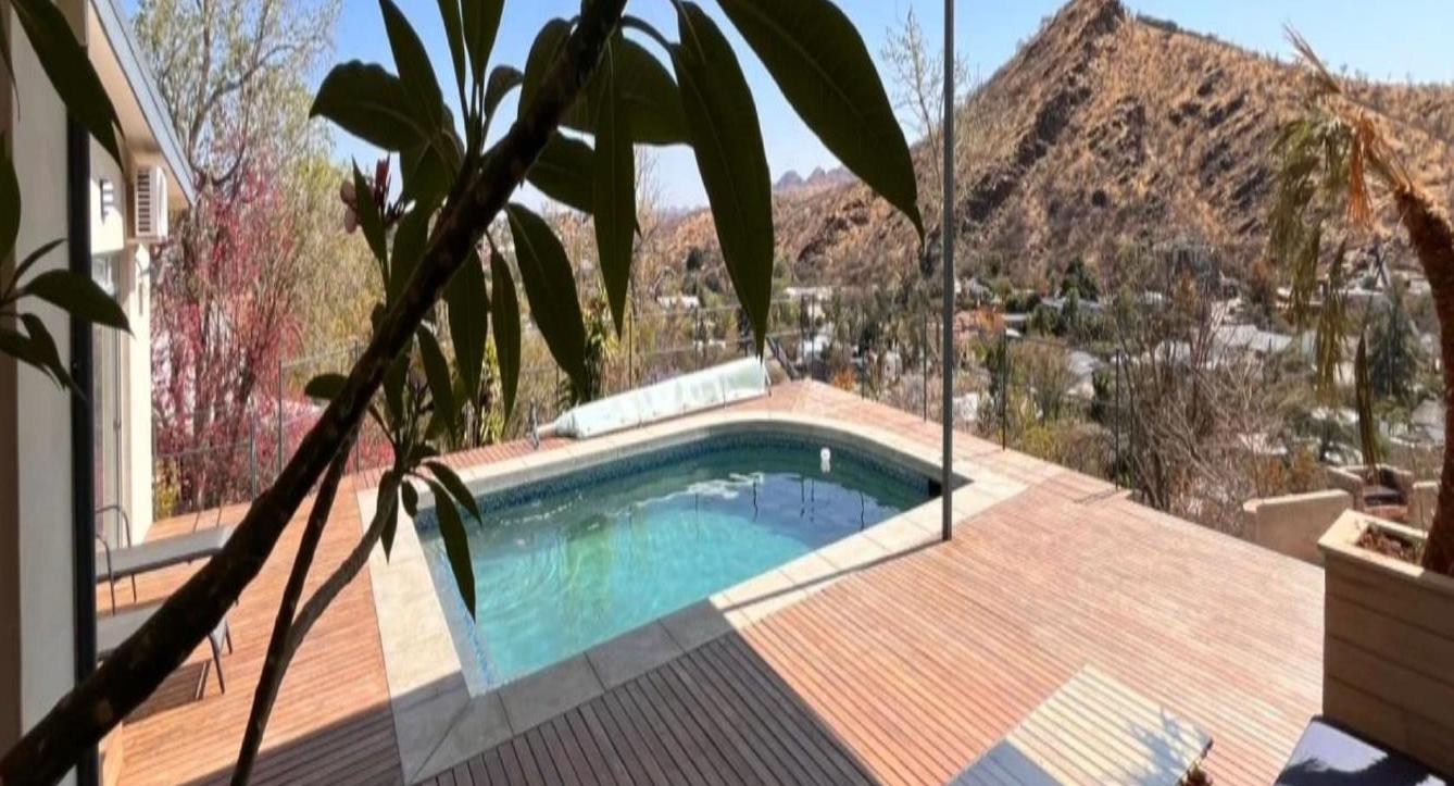 This North-east facing gem offers a spacious open plan layout, complete with a cozy fireplace, a sparkling swimming pool, and not one but two Bachelor flats for added versatility. A property that has been newly renovated with modern touches throughout.