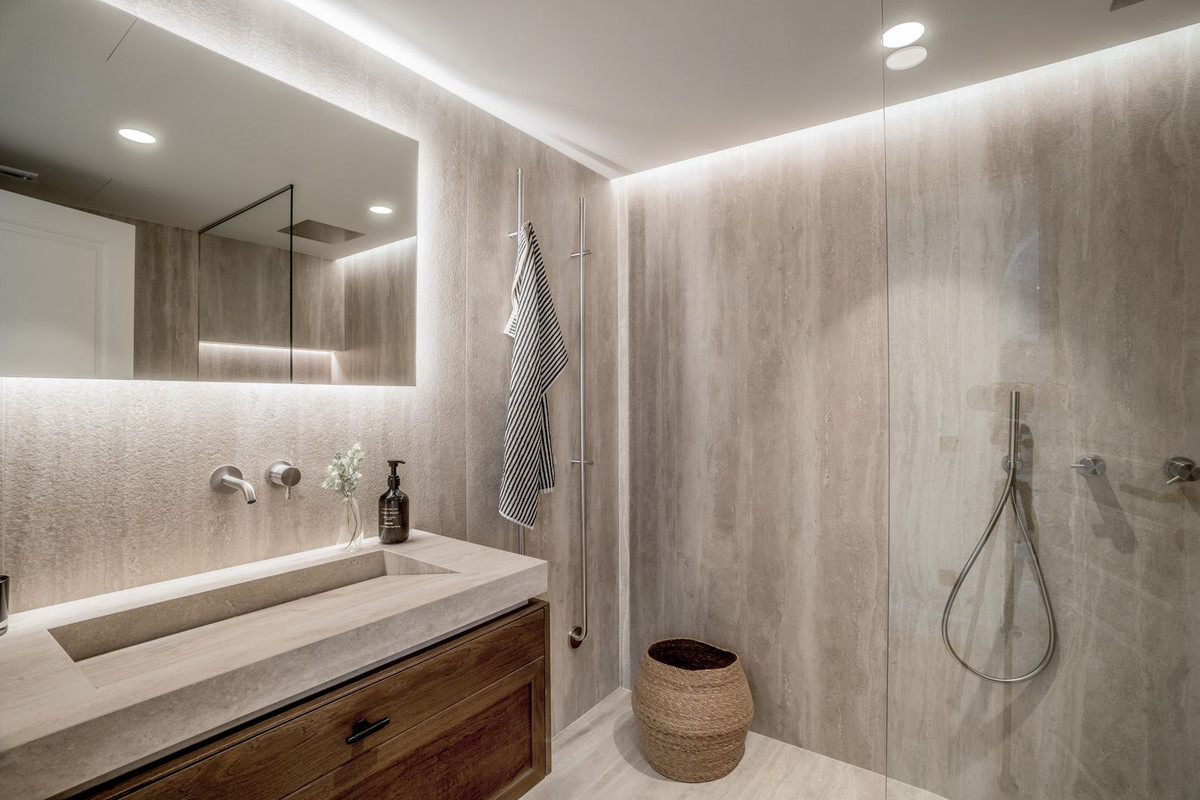 Luxurious duplex apartment in La Quinta featuring chevron wood floors, Danespan kitchen with Miele appliances, expansive terraces, private plunge pool, and breathtaking views of La Concha, the Mediterranean, and La Quinta Golf. Offers villa-style living with lock-and-leave ease.