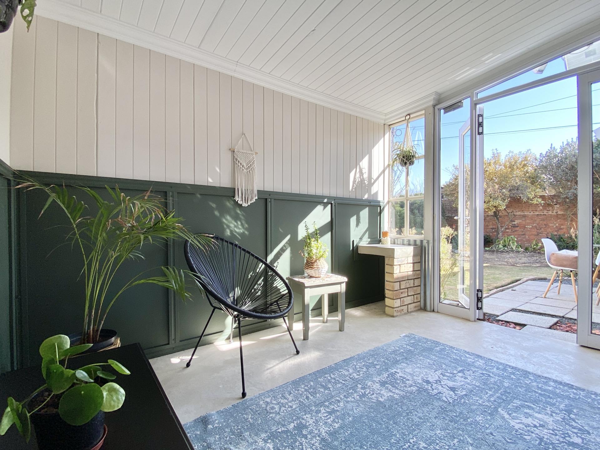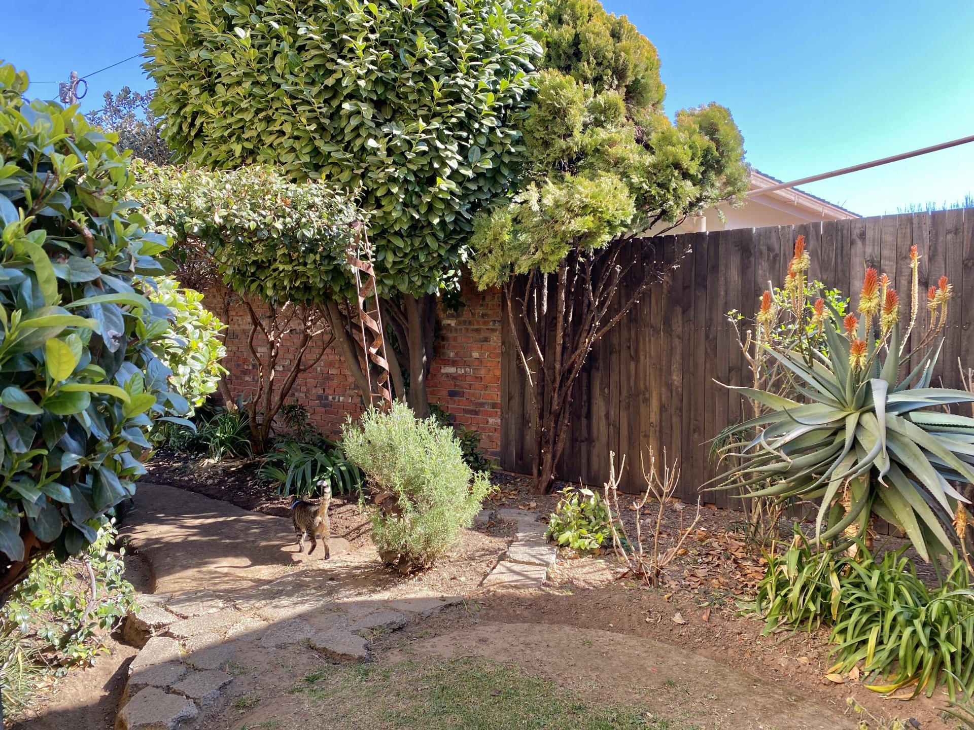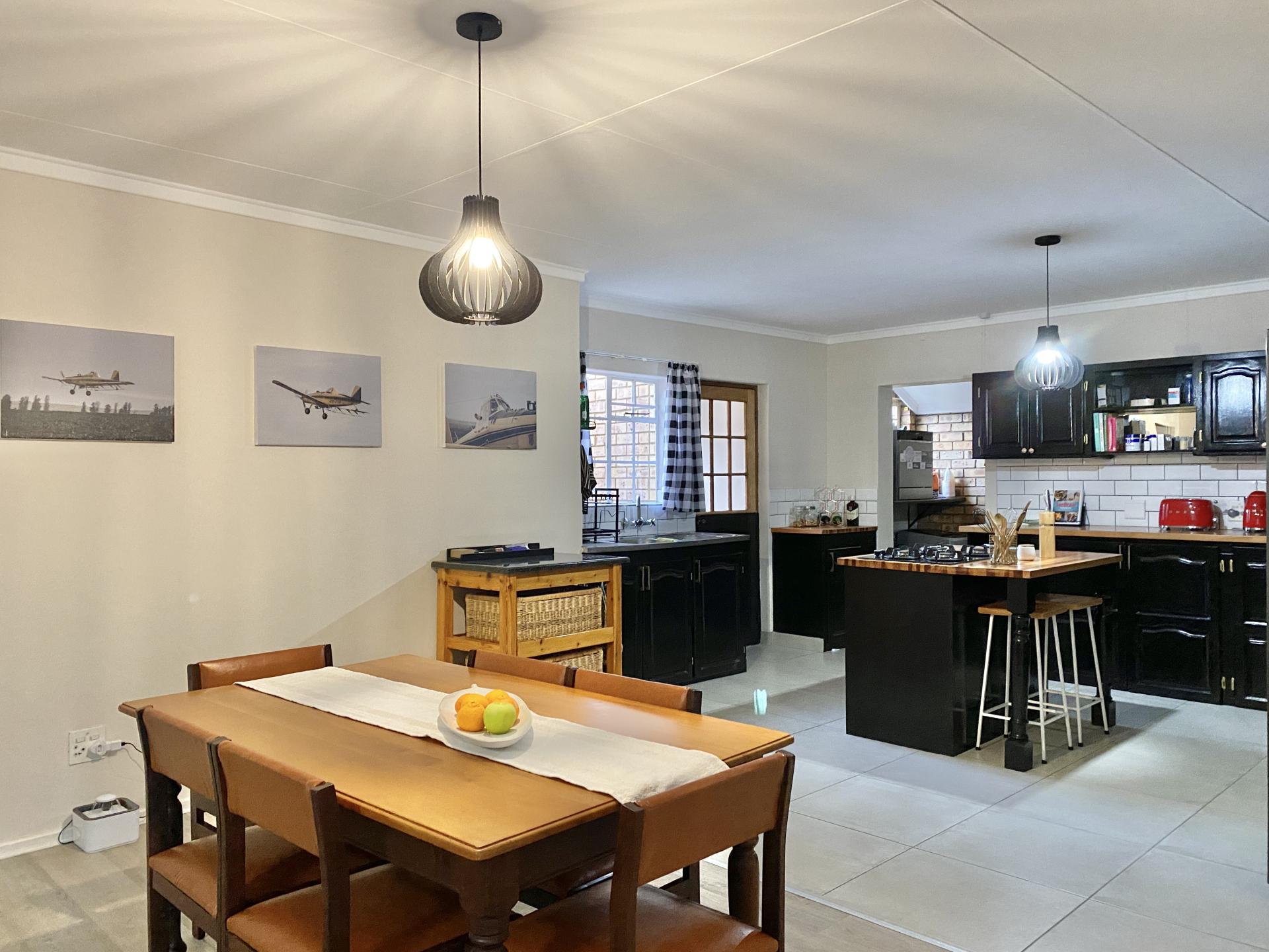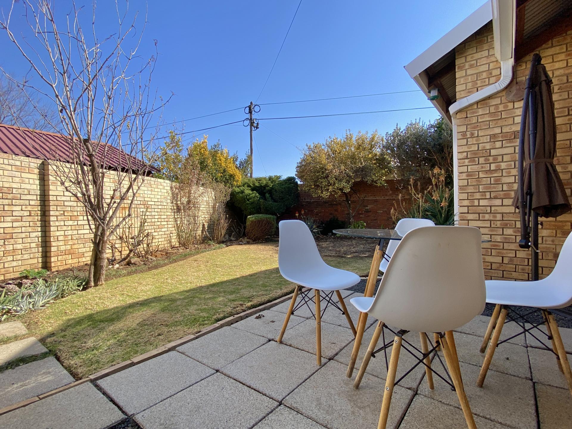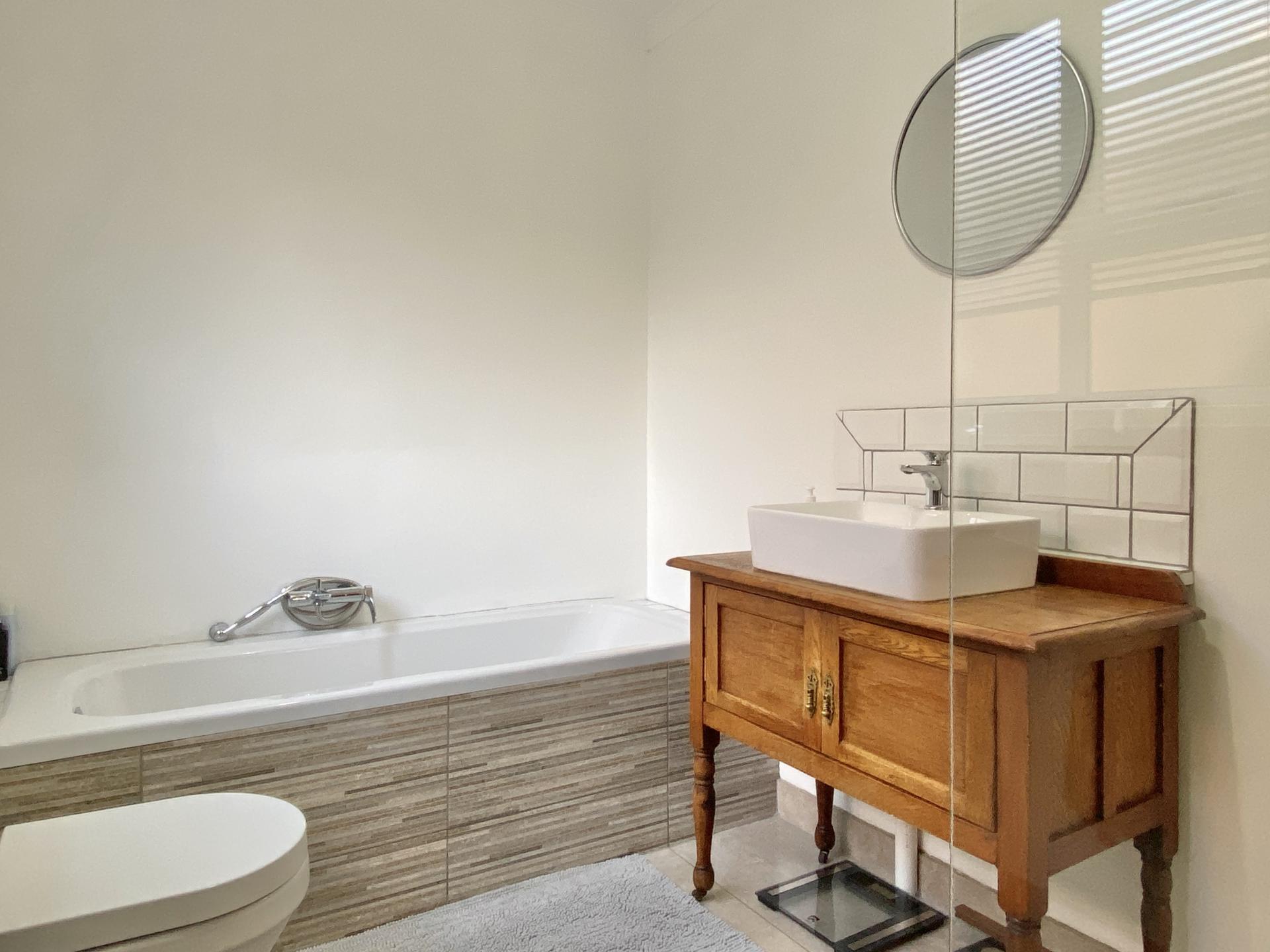 The kitchen, dining- and living room are semi-open plan, creating a lovely flow throughout the house. Adjacent to the kitchen is a neat laundry/scullery with all the necessary fittings. From the living room, an intimate sun lounge welcomes you to the manicured, water-wise garden.