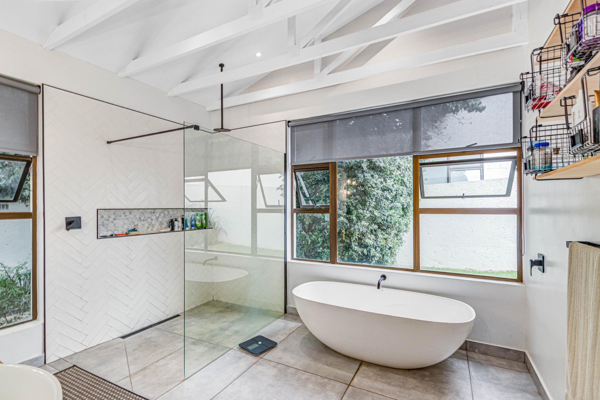 With 3 spacious bedrooms, the home offers plenty of room for everyone. The two family bedrooms share a stylish full bathroom, while the luxurious master suite boasts generous cupboard space, a beautifully designed ensuite bathroom, and direct access to the lush garden.