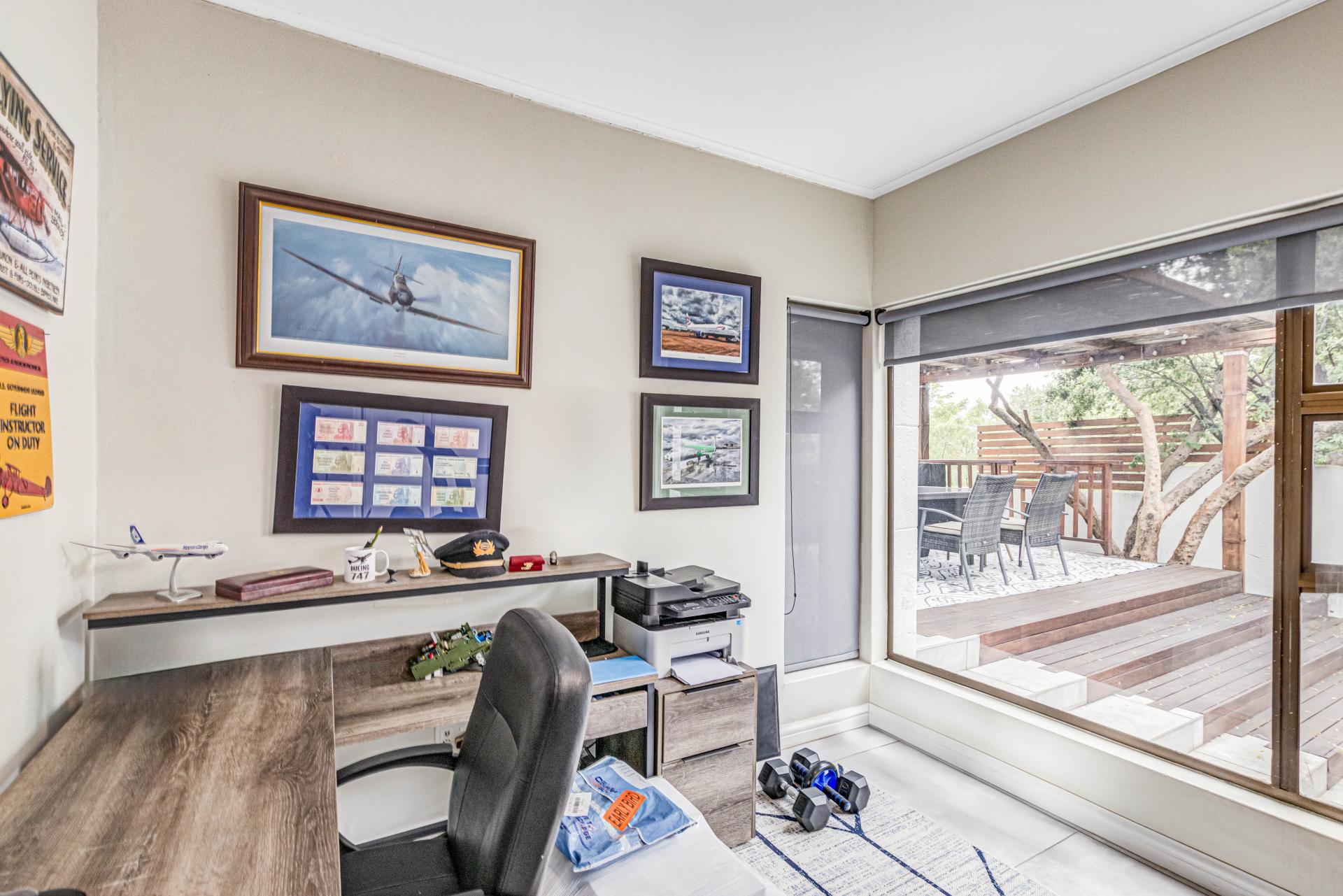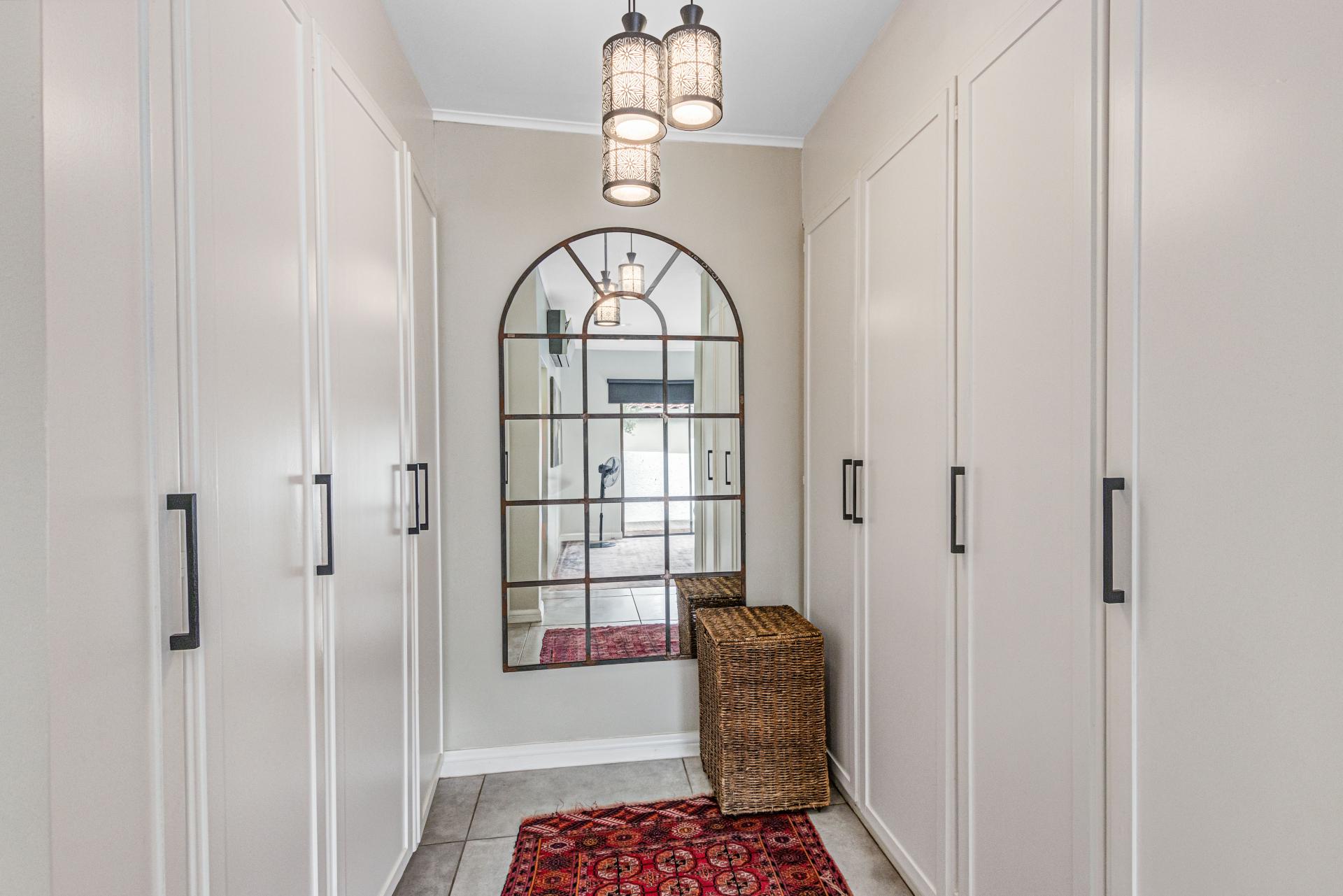 A versatile, renovated staff accommodation with a kitchenette and ensuite bathroom doubles as a perfect teenager's pad or guest suite. Additional features include a double garage, a borehole with a 4500L water tank and filters, and a robust solar system with backup power, and gas geyser ensuring convenience and sustainability.