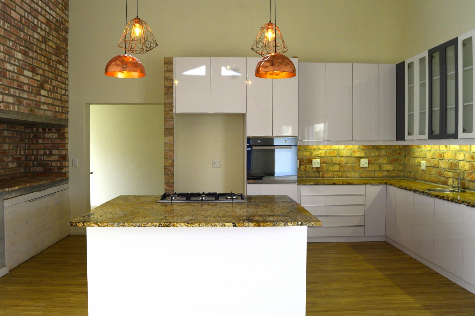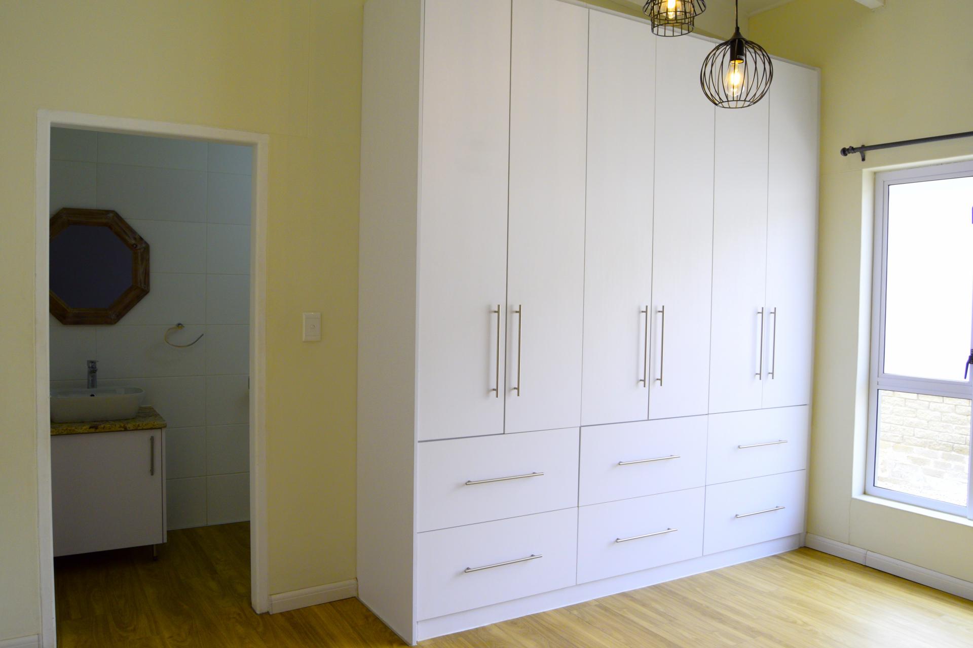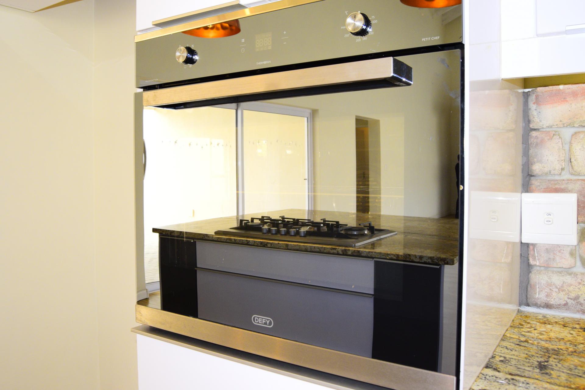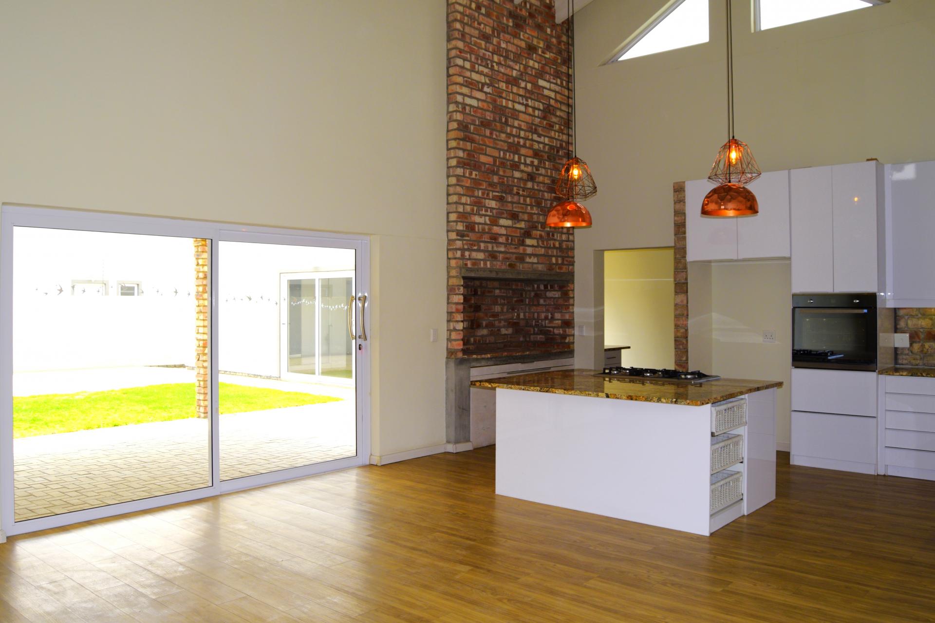 The heart of the home is the modern kitchen with granite countertops, gas hob, and eye-level oven, complemented by a spacious scullery with dishwasher and laundry outlets, keeping the main space stylish and clutter-free.