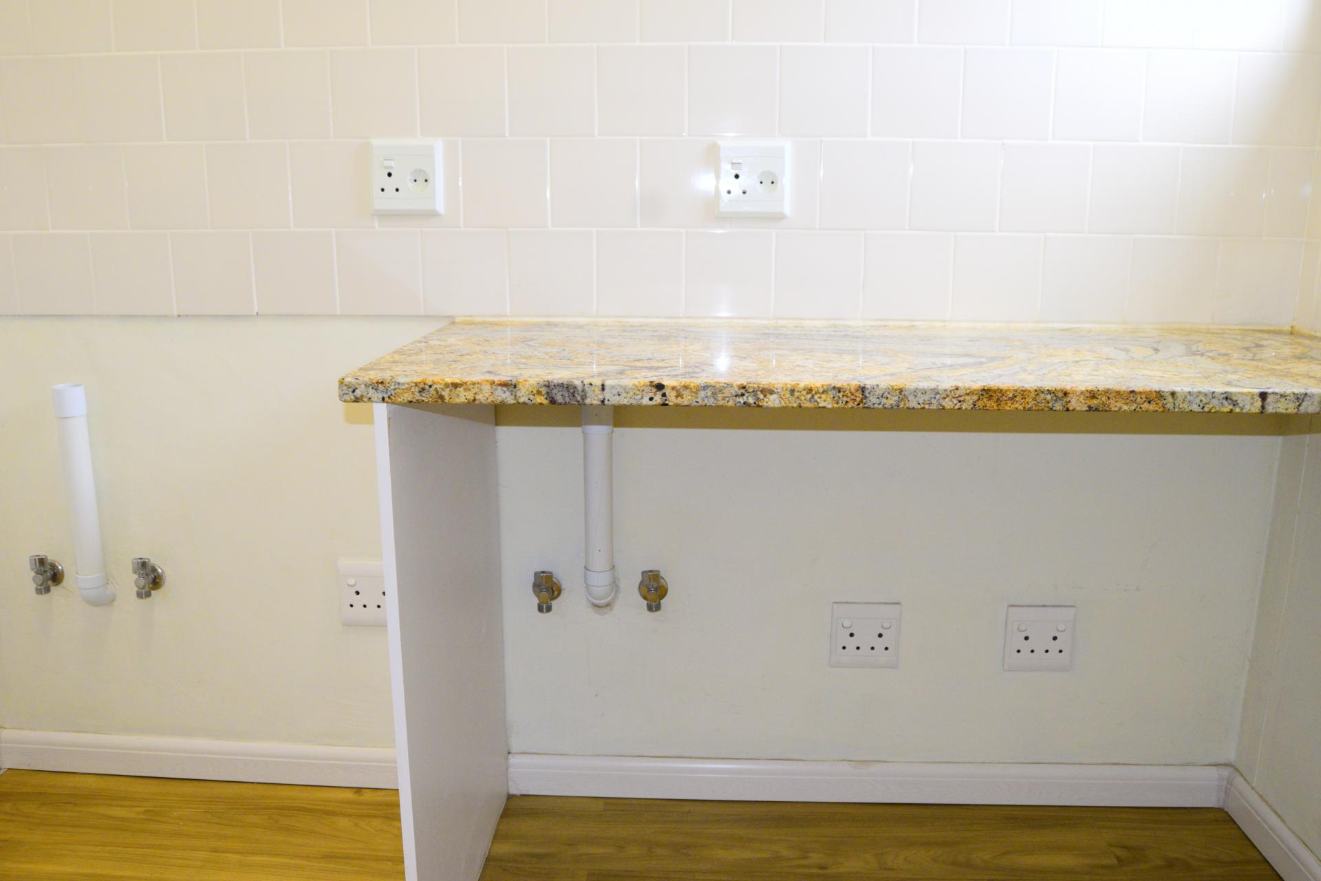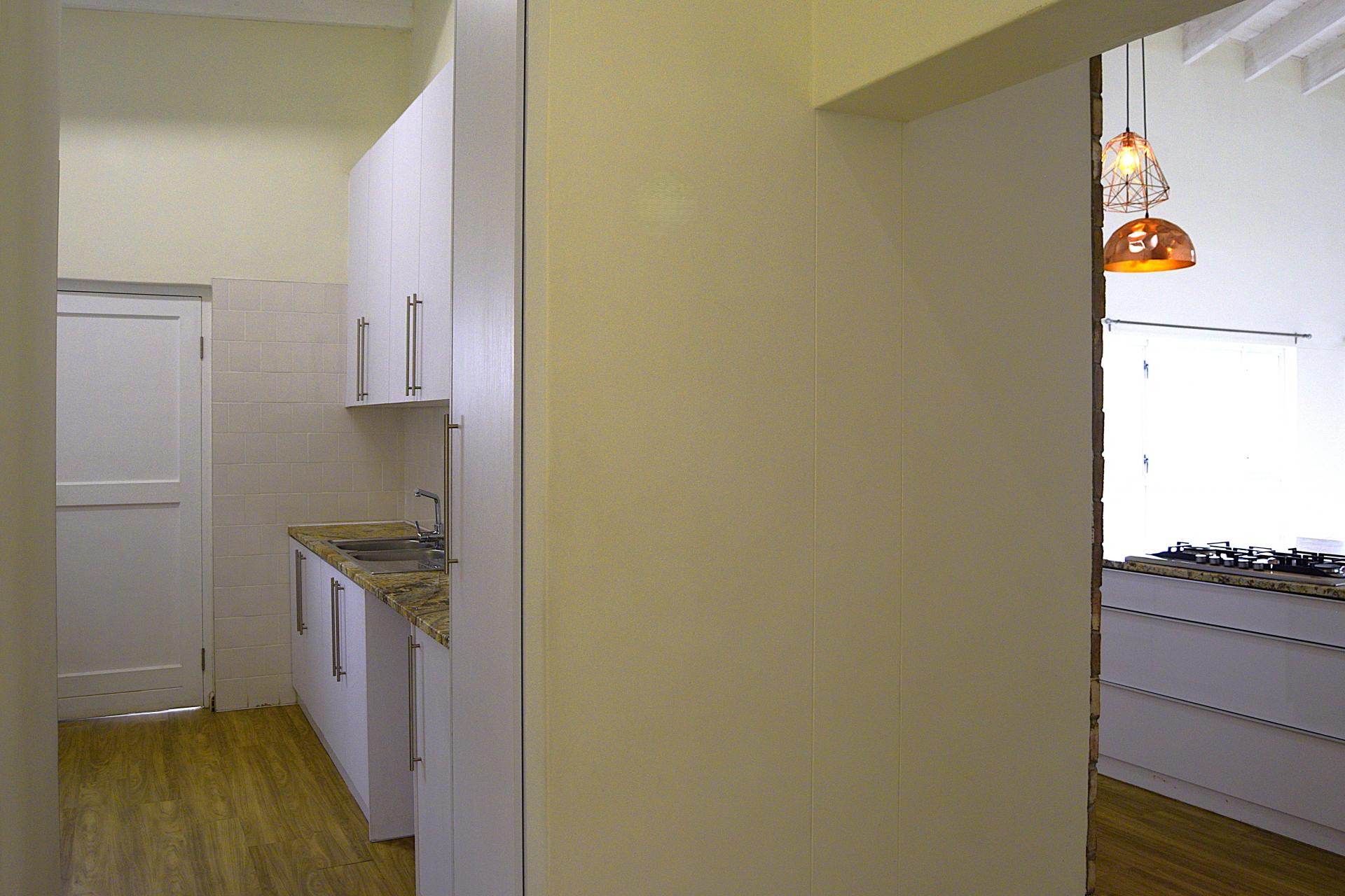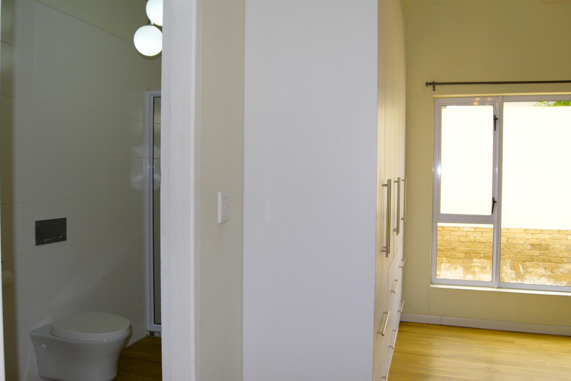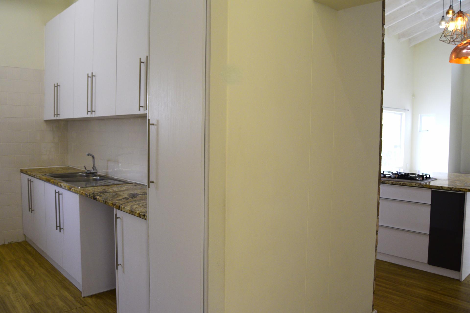 The heart of the home is the modern kitchen with granite countertops, gas hob, and eye-level oven, complemented by a spacious scullery with dishwasher and laundry outlets, keeping the main space stylish and clutter-free.