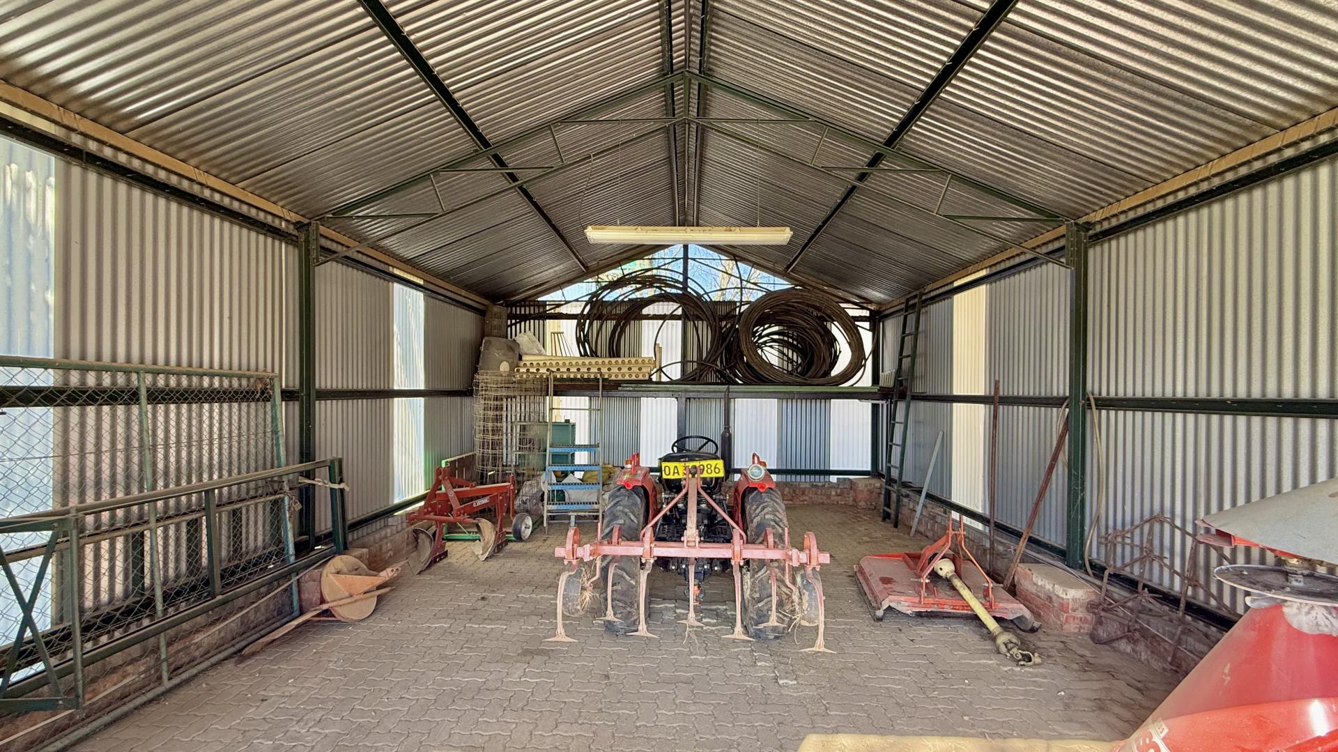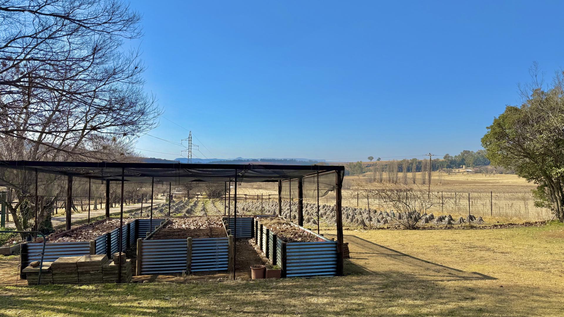 3ha grazing/arable land. 2 ha under newly established eragotis, 1 ha seasonal crops & artichokes. 2 x boreholes - 1 with windmill, 1 with 3-phase pump. 1 x large workshop (not storeroom). 5 x smaller storerooms & 1 x changeroom with bathroom.