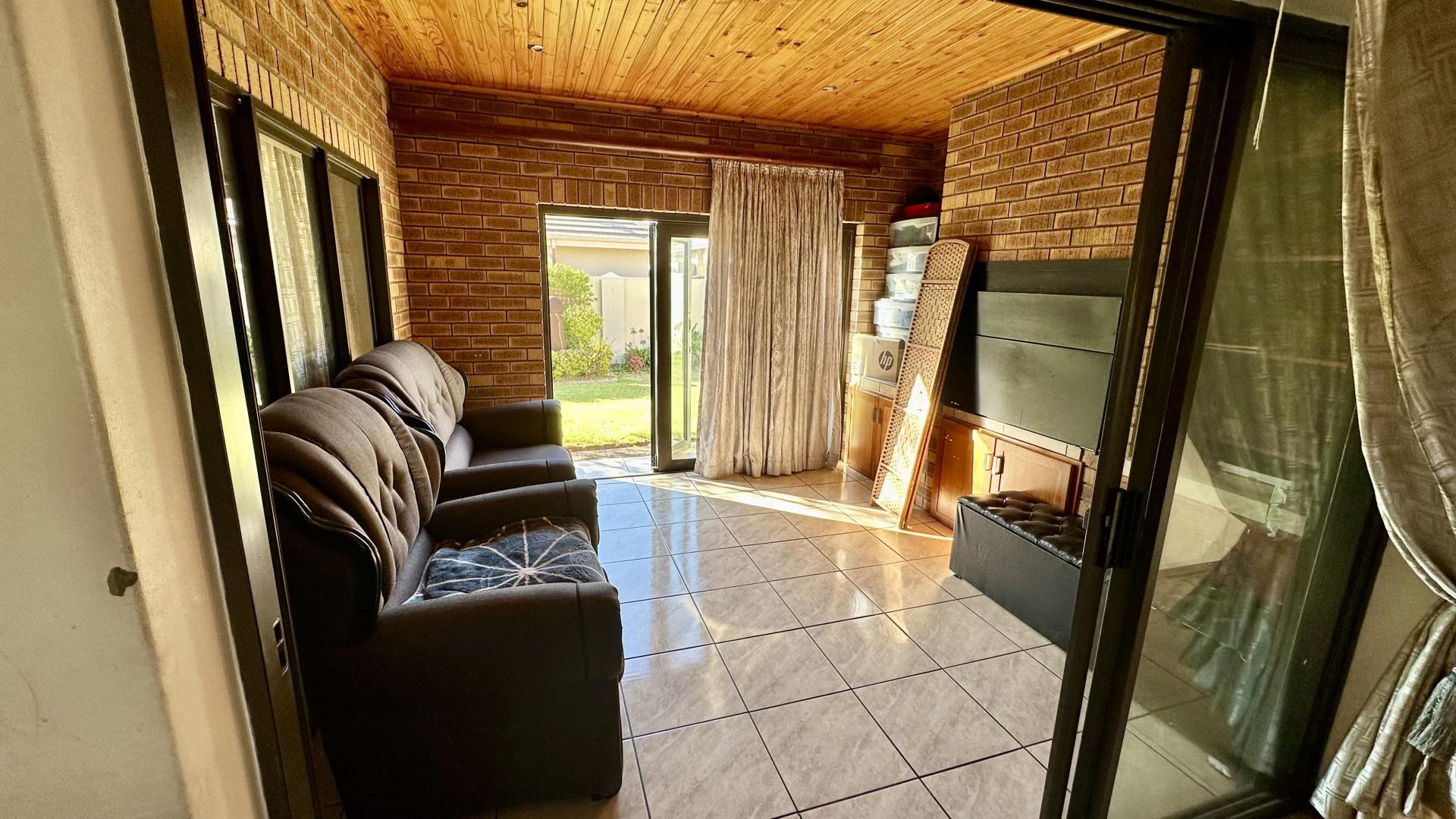 One of the highlights of this home is the braai room with foldable doors that lead to a private garden, perfect for enjoying al fresco dining or tranquil moments amidst privatised nature.