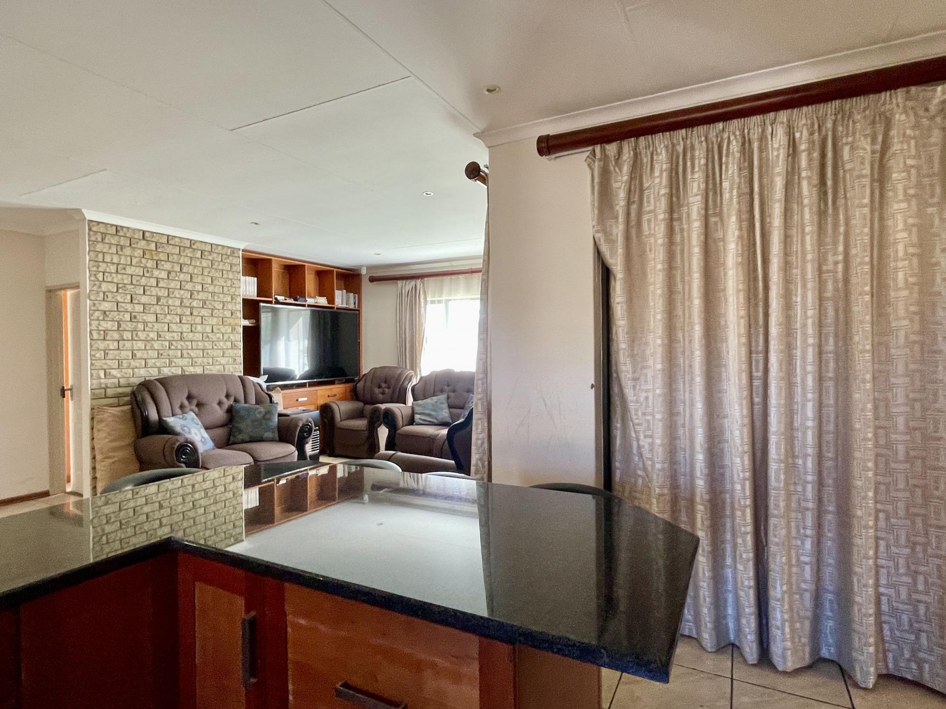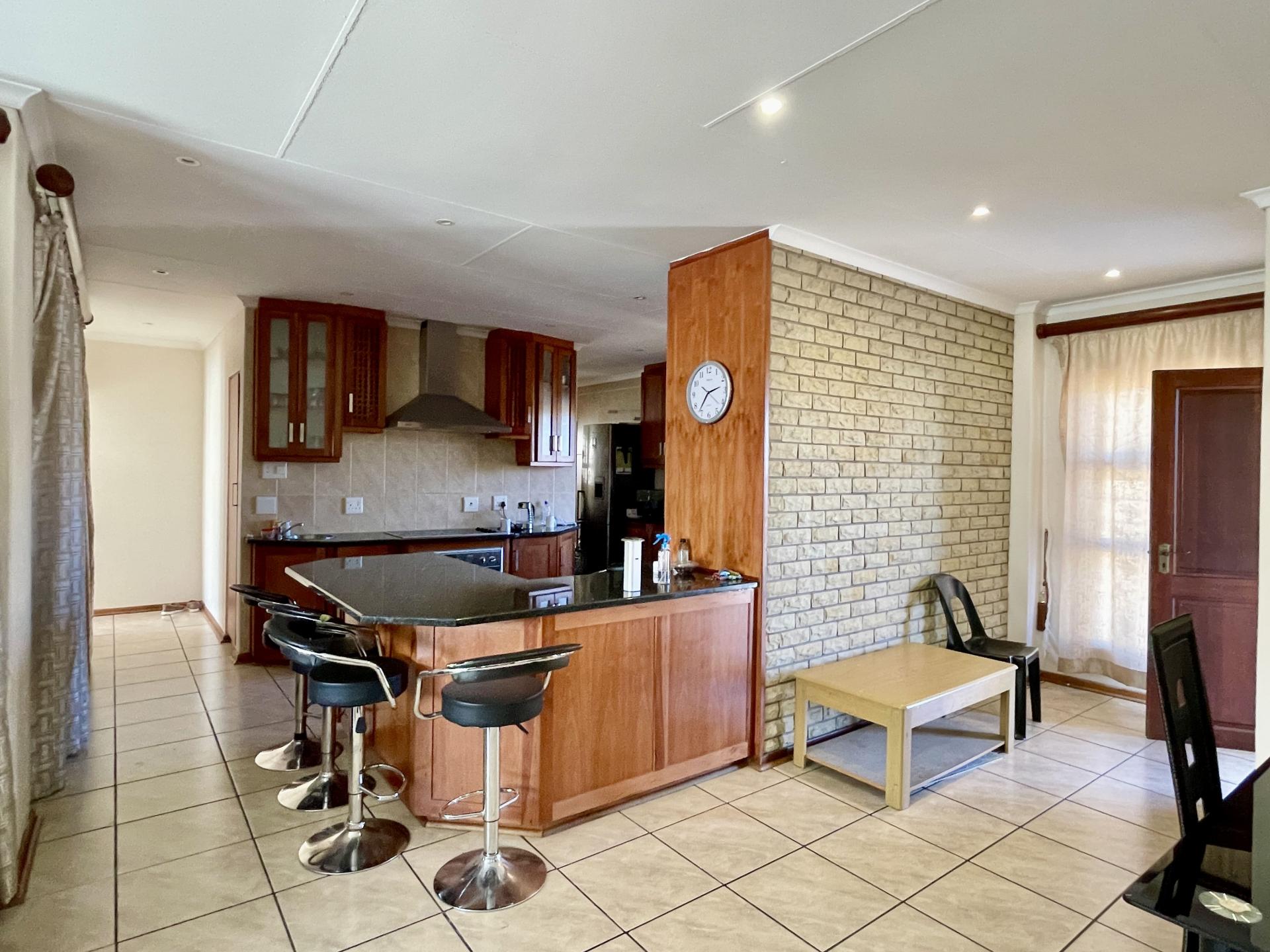 As you step inside, you are greeted by an inviting open-plan layout where the living area seamlessly flows into the braai room, creating a harmonious space for relaxation and entertainment. The kitchen, adjacent to the living area, features modern amenities, including a scullery/laundry area, ensuring functionality and practicality for daily living.