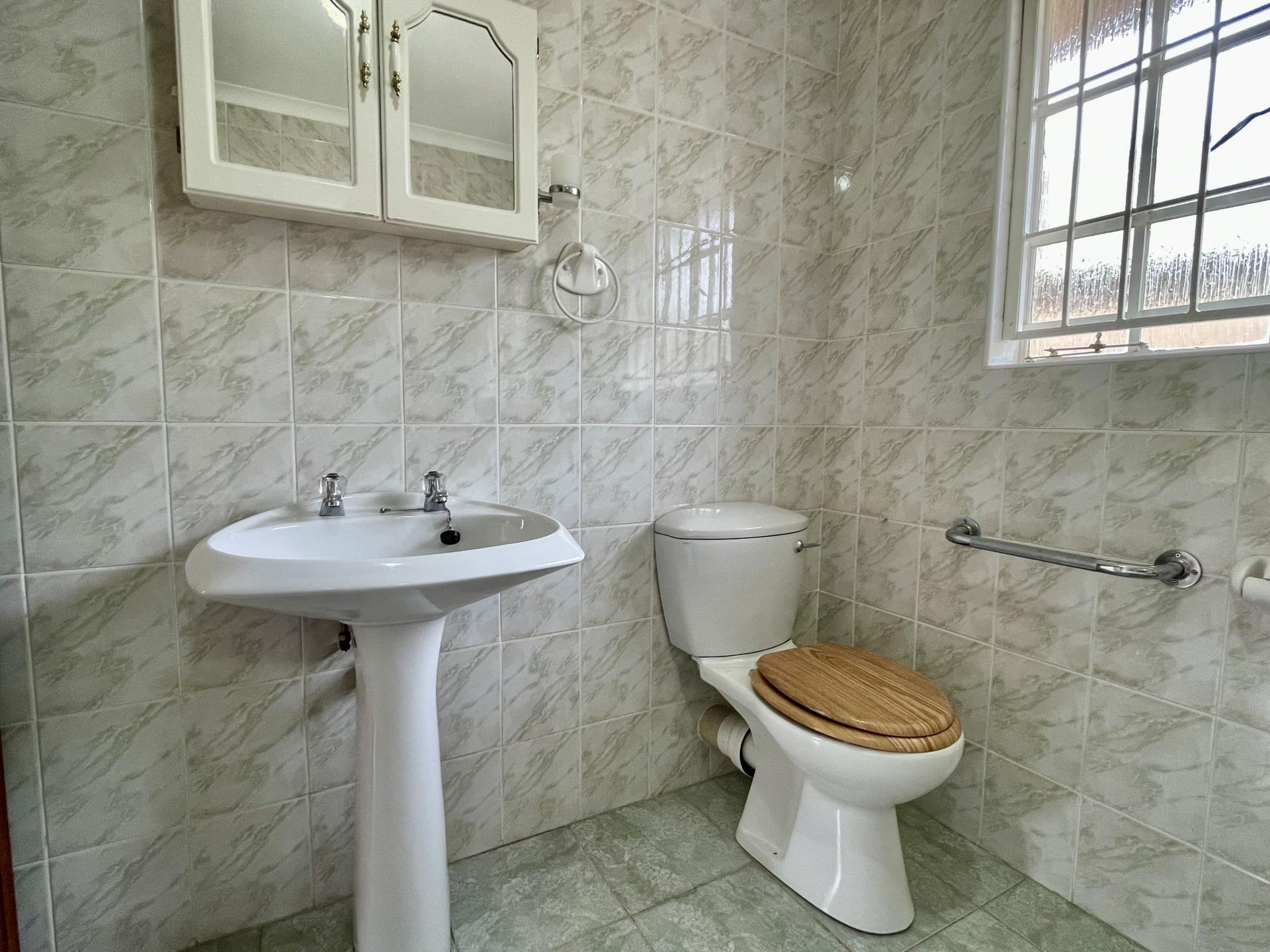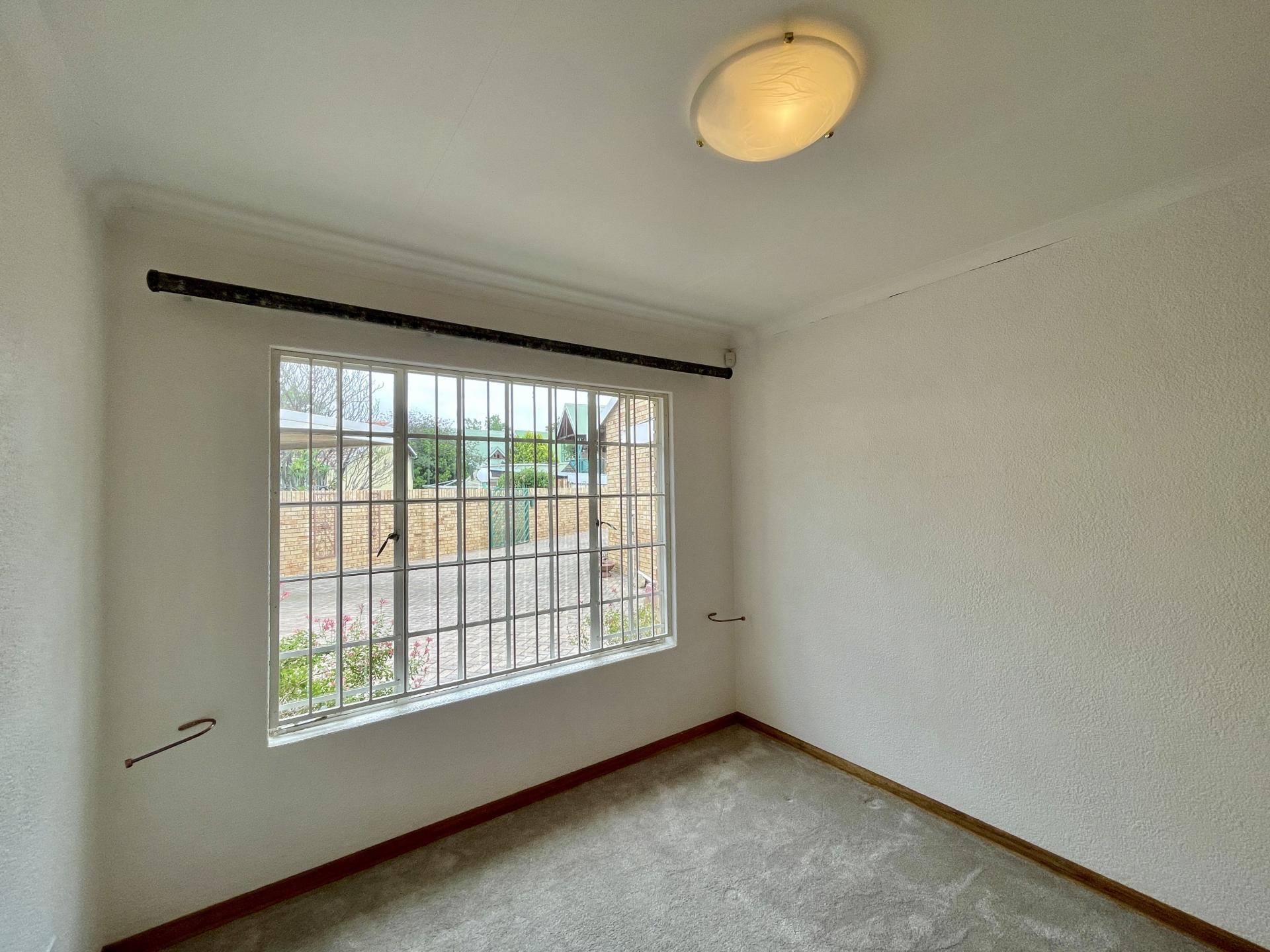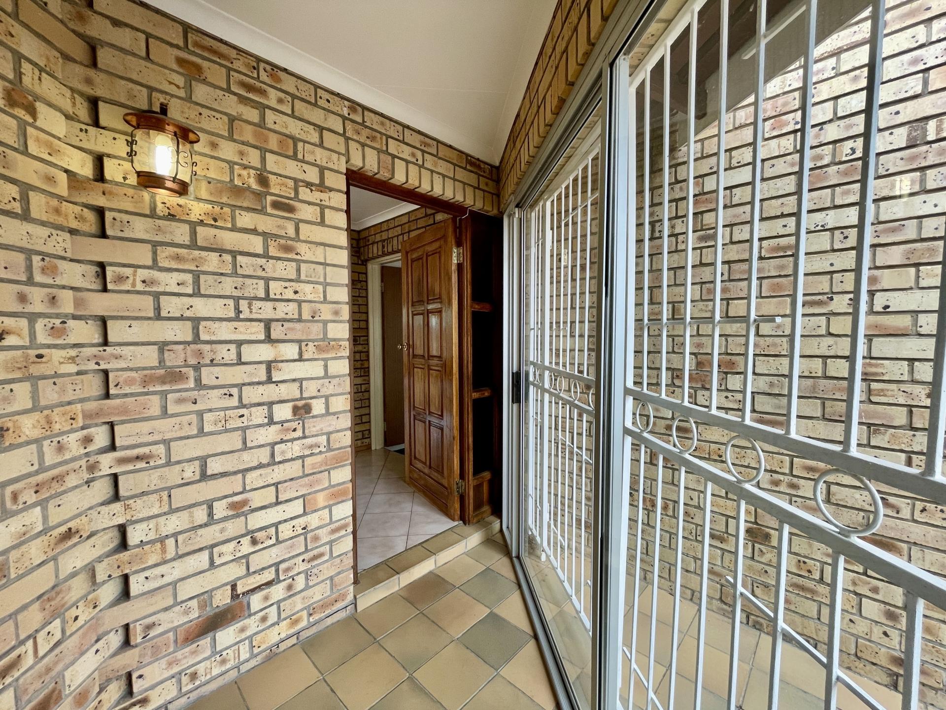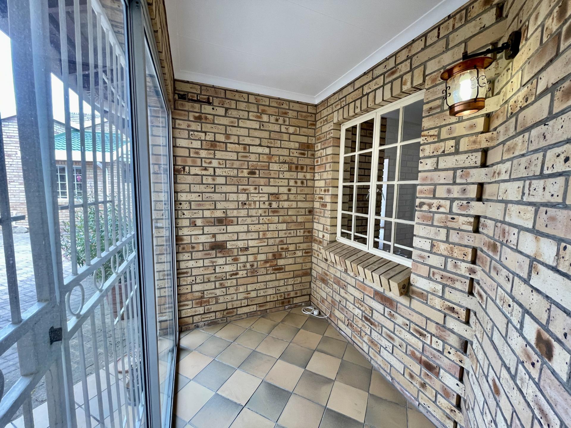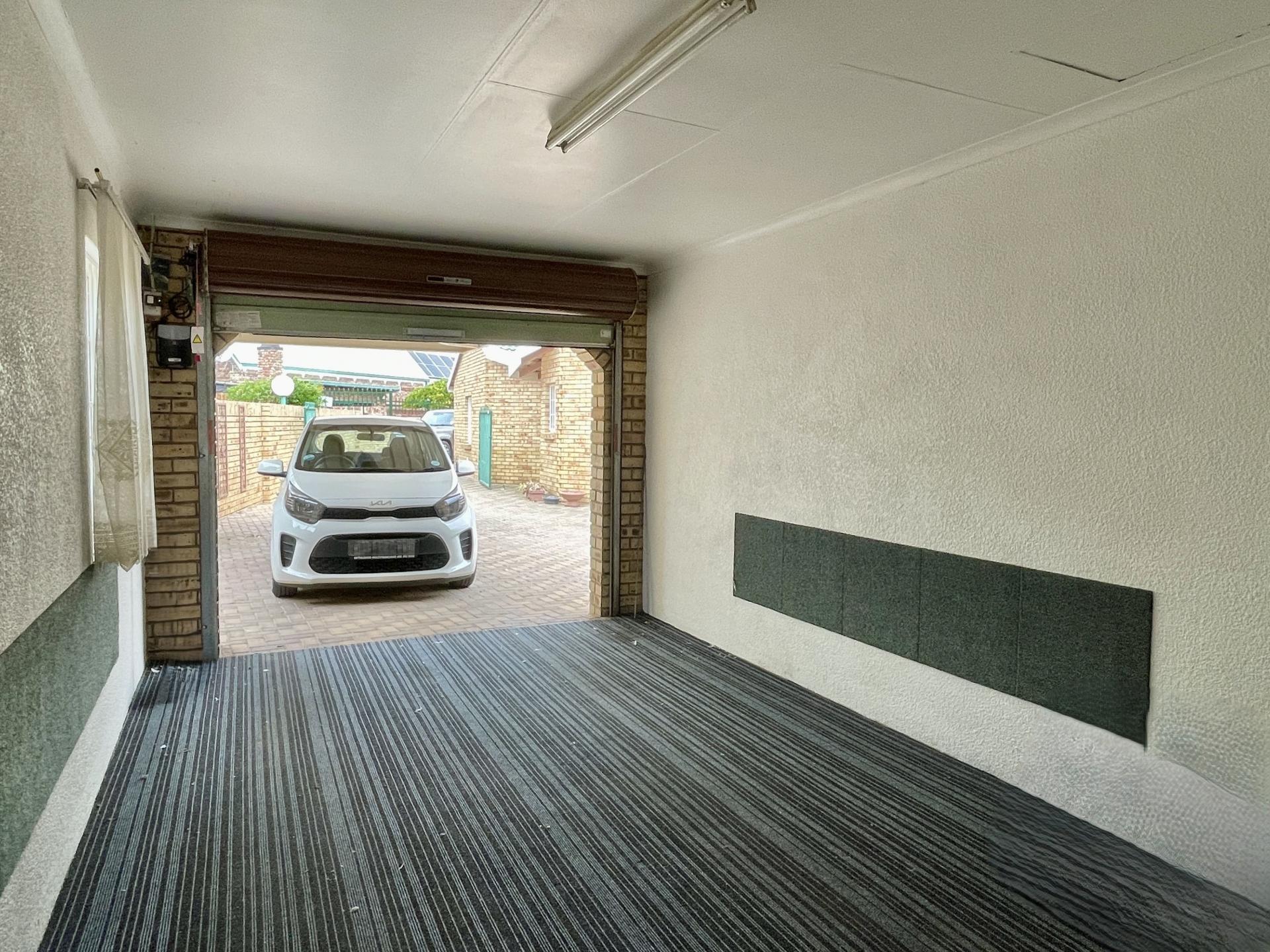 Upon entering, you are greeted by a generous open-plan living and kitchen area. The living room features a door that leads out to a small patio and private garden, creating a seamless connection between indoor and outdoor spaces. The kitchen is well-equipped with a built-in stove, oven, and plenty of cupboard space. To the right of the living area, you'll find the main bedroom, complete with a full ensuite bathroom and built-in cupboards, providing a peaceful retreat. On the opposite side of the home, two additional bedrooms, each with built-in cupboards, share a second well-appointed bathroom. This home also includes a separate laundry room and a domestic toilet for added convenience. For parking, you'll have a single garage and a carport. The property is equipped with prepaid electricity and features a single geyser. For peace of mind, the home is set in a private and secure location, with a Silent Night alarm system. This beautifully maintained property is an ideal choice for those seeking comfort, privacy, and convenience.