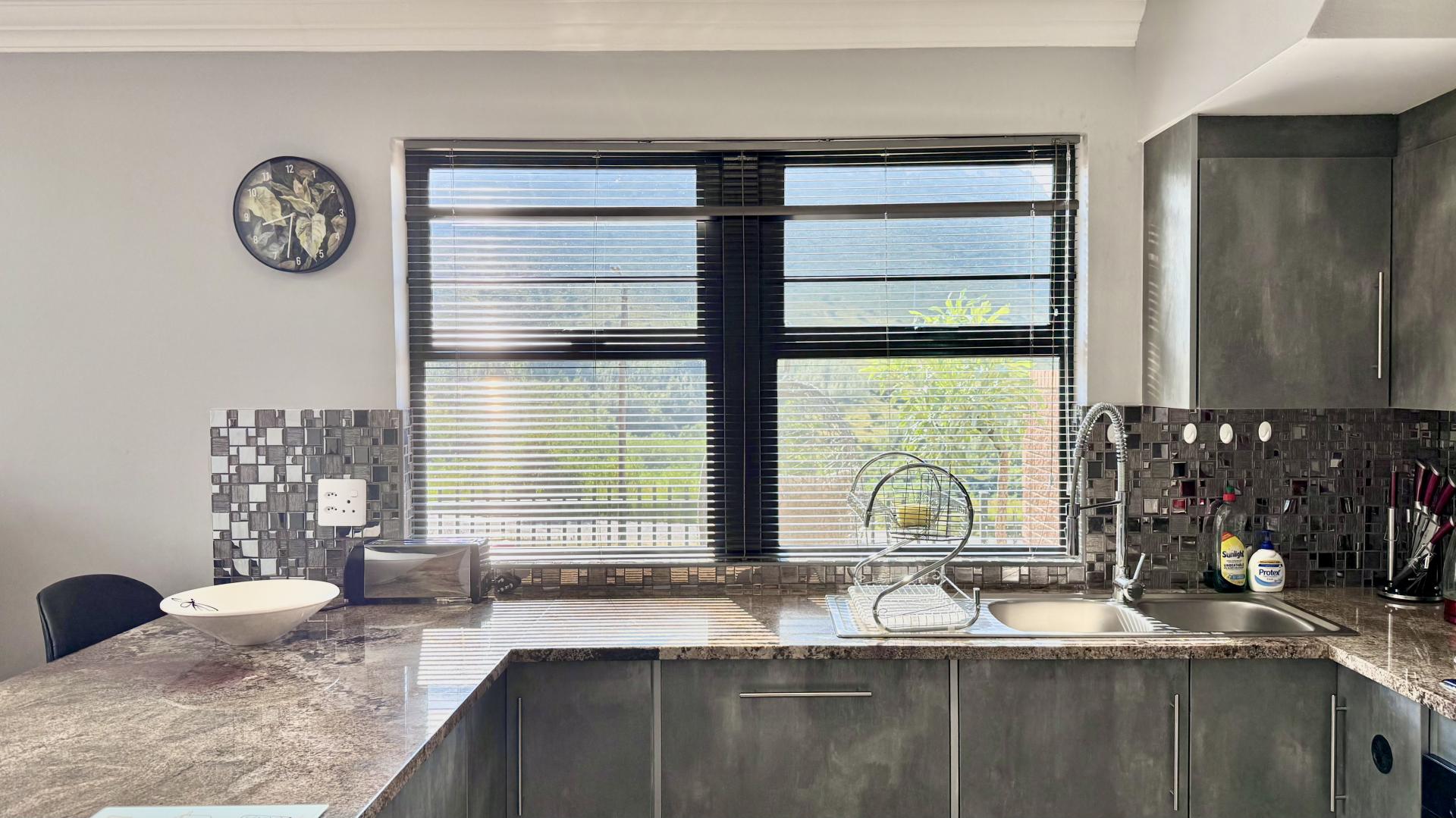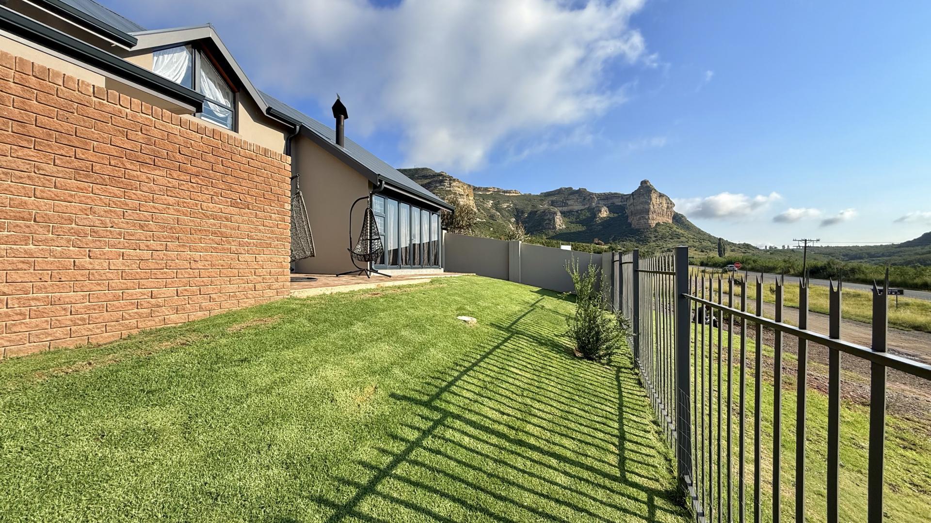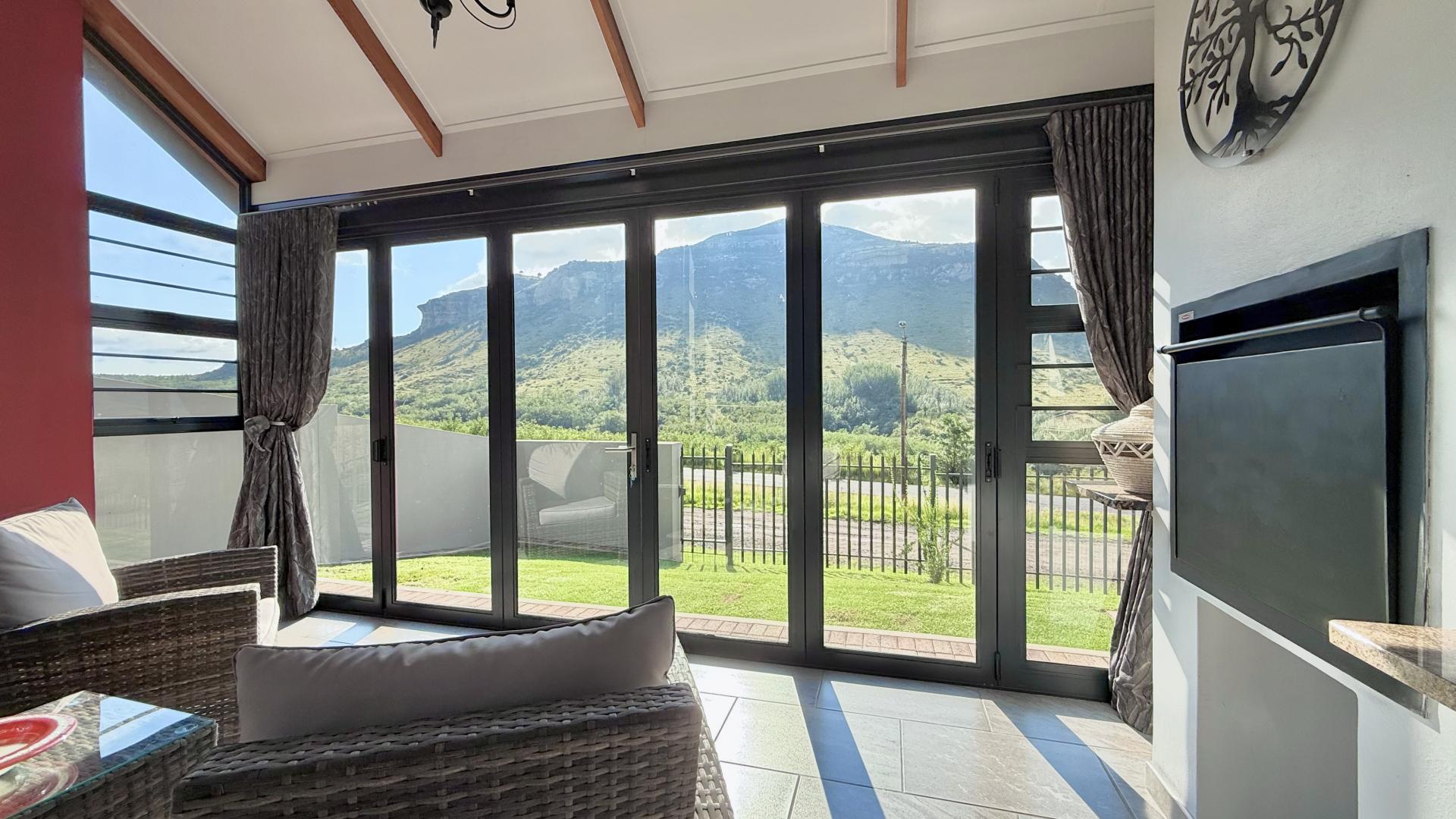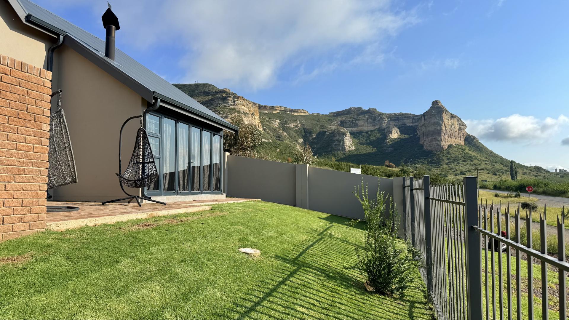 Featuring an extensive north-west facing window in the living area over the striking Titanic mountain, this property is literally positioned at the foot of the mountain and borders the entrance of the nature reserve, as well as walking- and mountain biking trials.