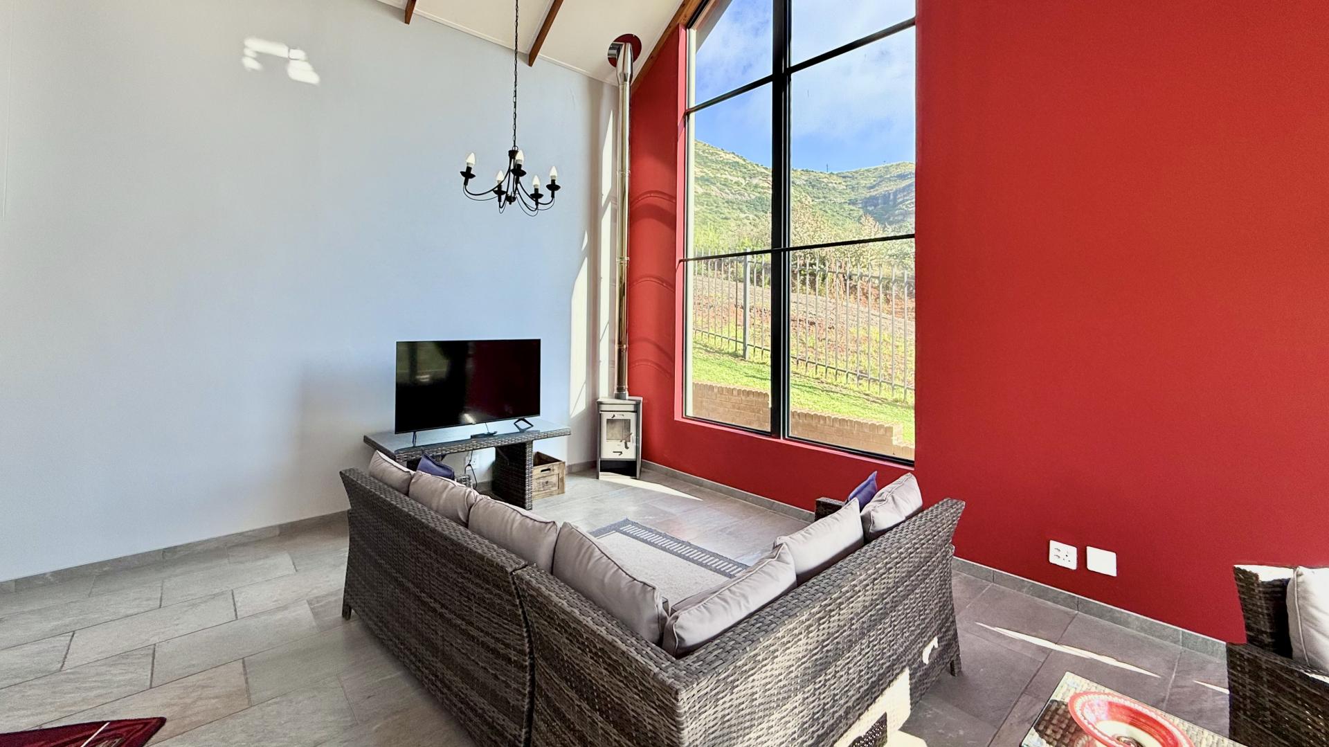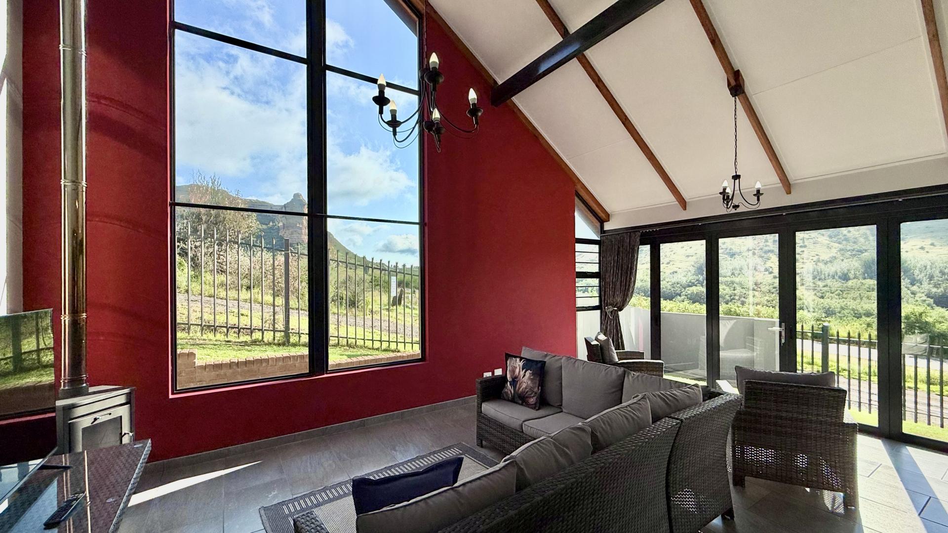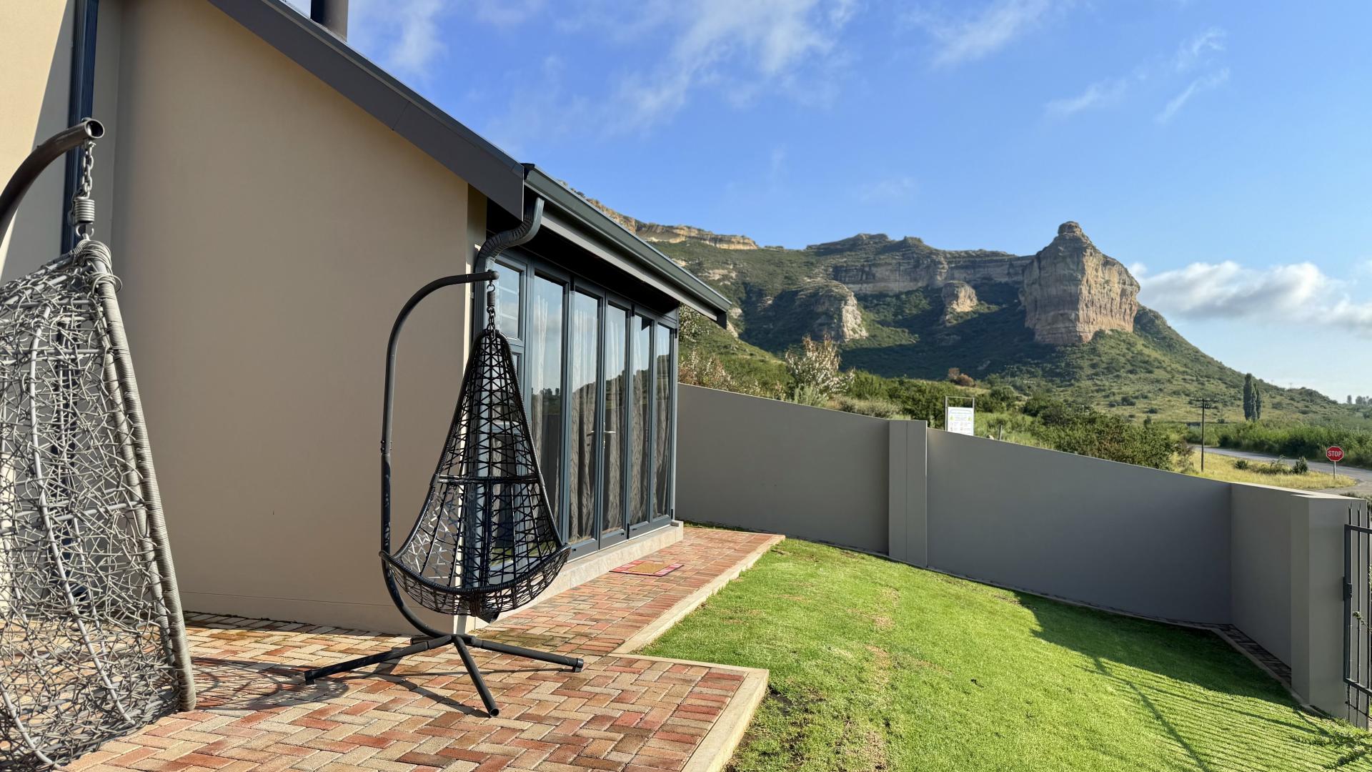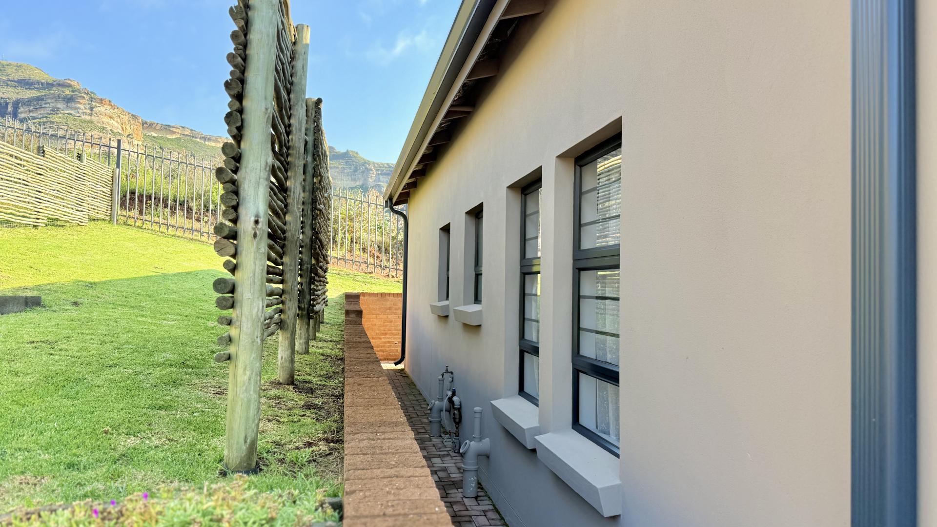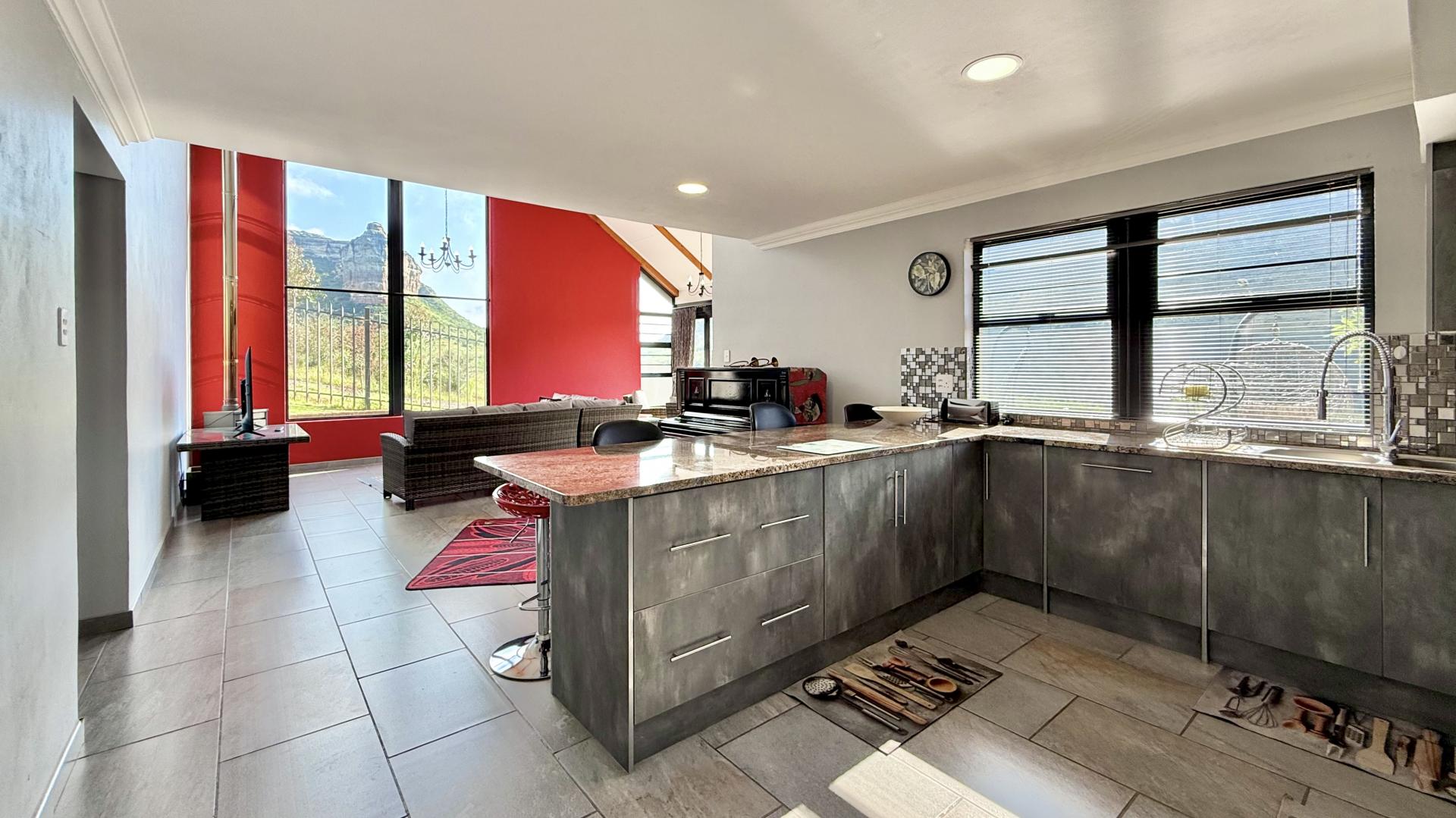 Featuring an extensive north-west facing window in the living area over the striking Titanic mountain, this property is literally positioned at the foot of the mountain and borders the entrance of the nature reserve, as well as walking- and mountain biking trials.