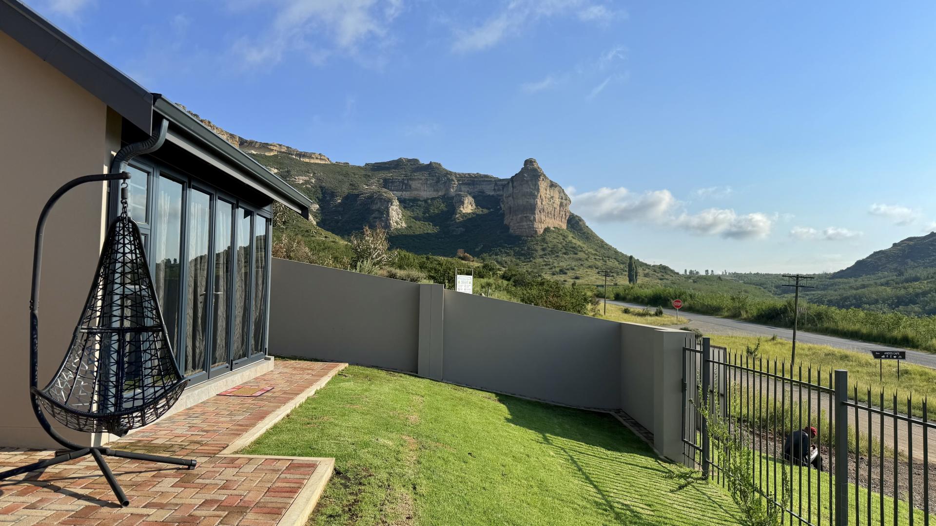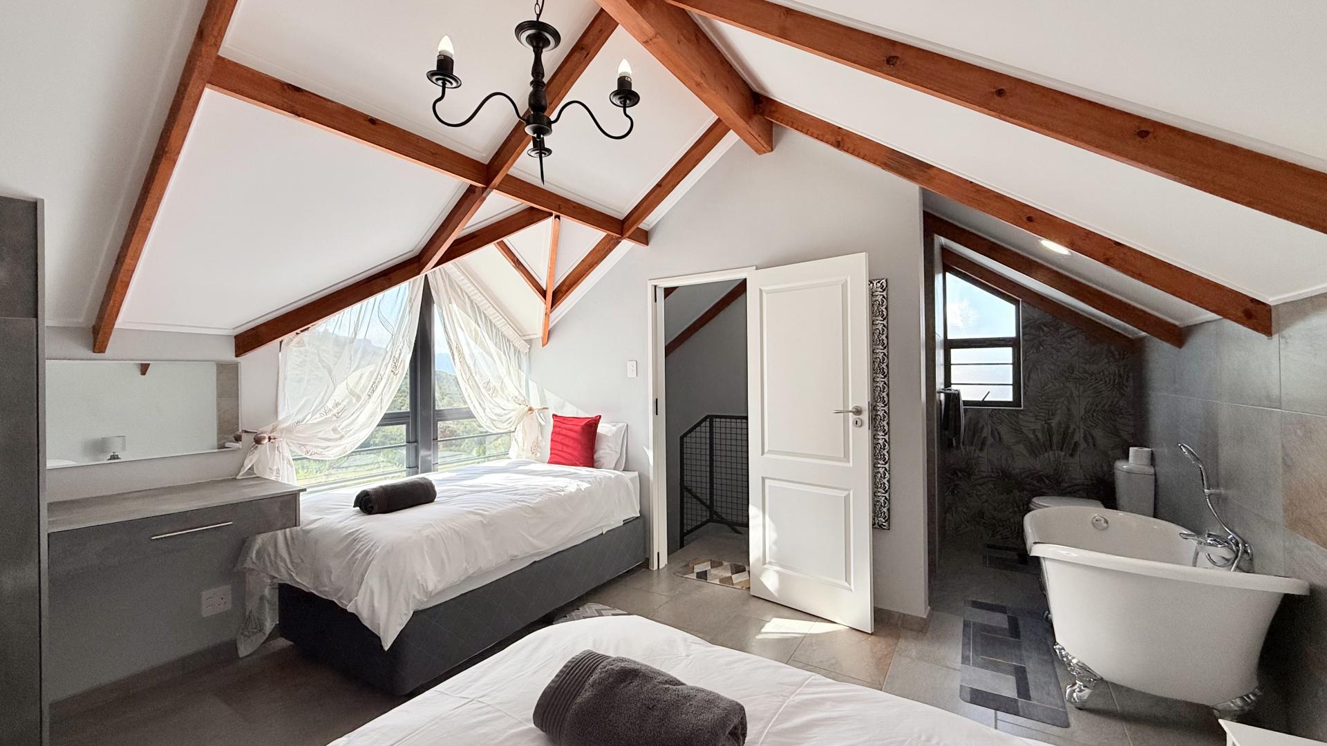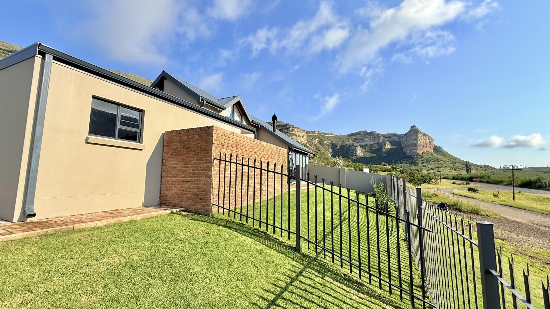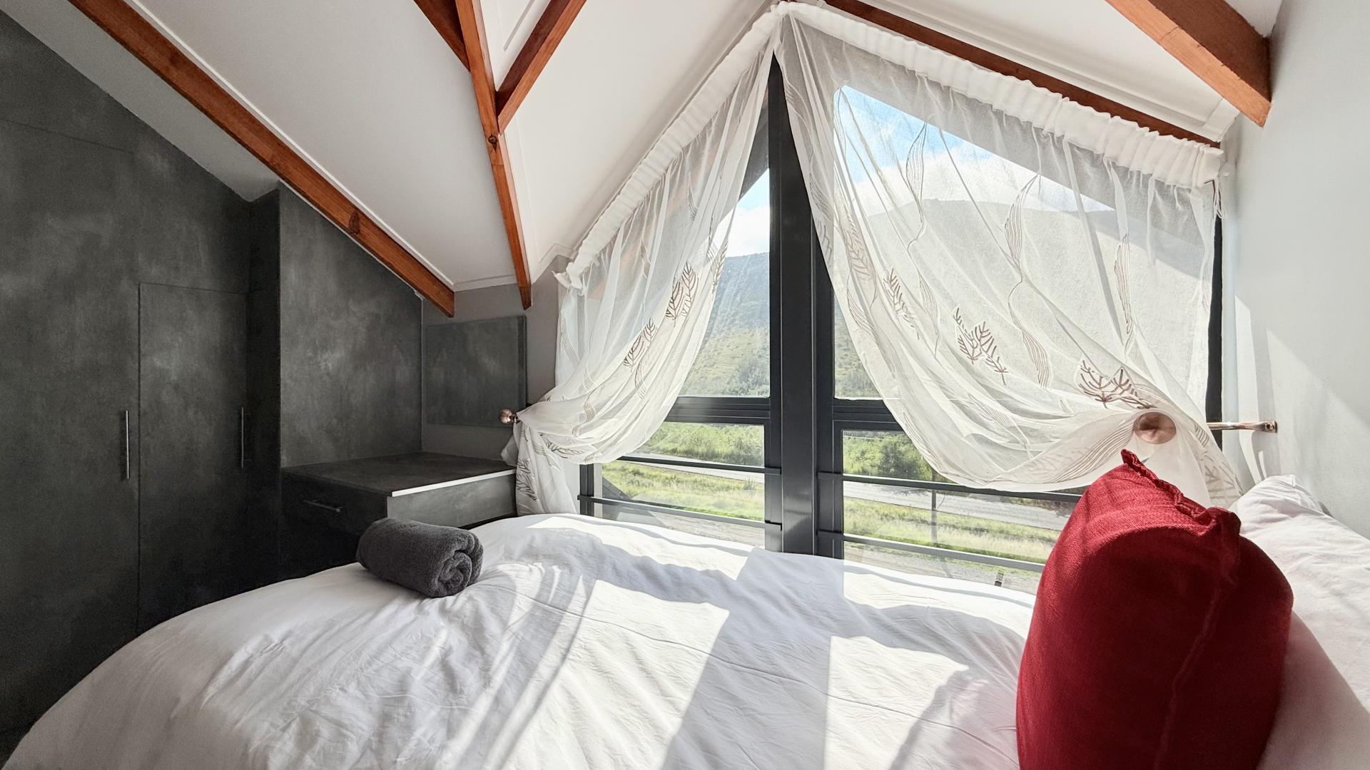 Featuring an extensive north-west facing window in the living area over the striking Titanic mountain, this property is literally positioned at the foot of the mountain and borders the entrance of the nature reserve, as well as walking- and mountain biking trials.