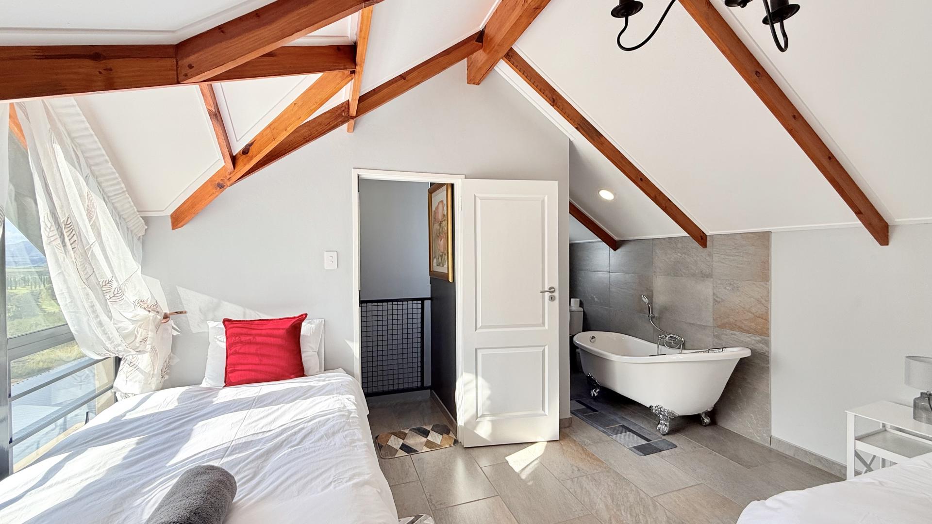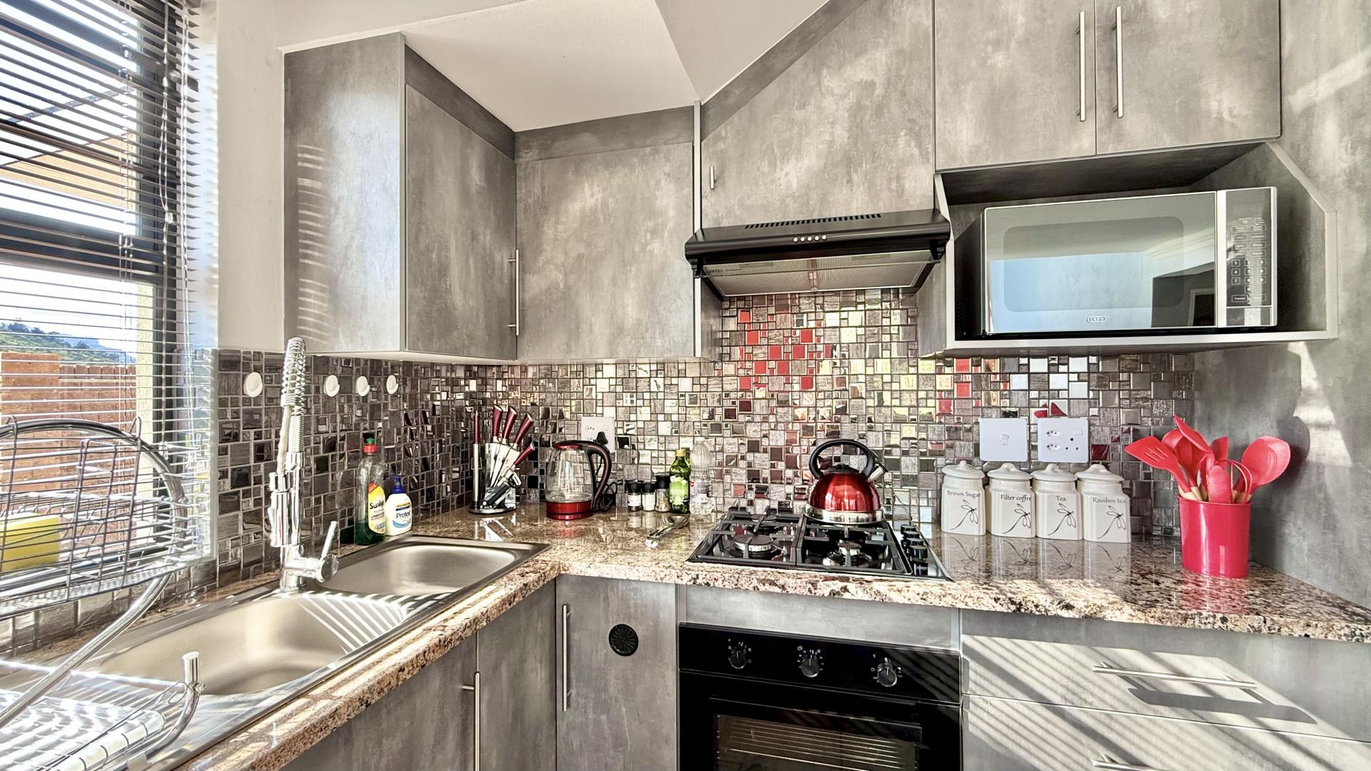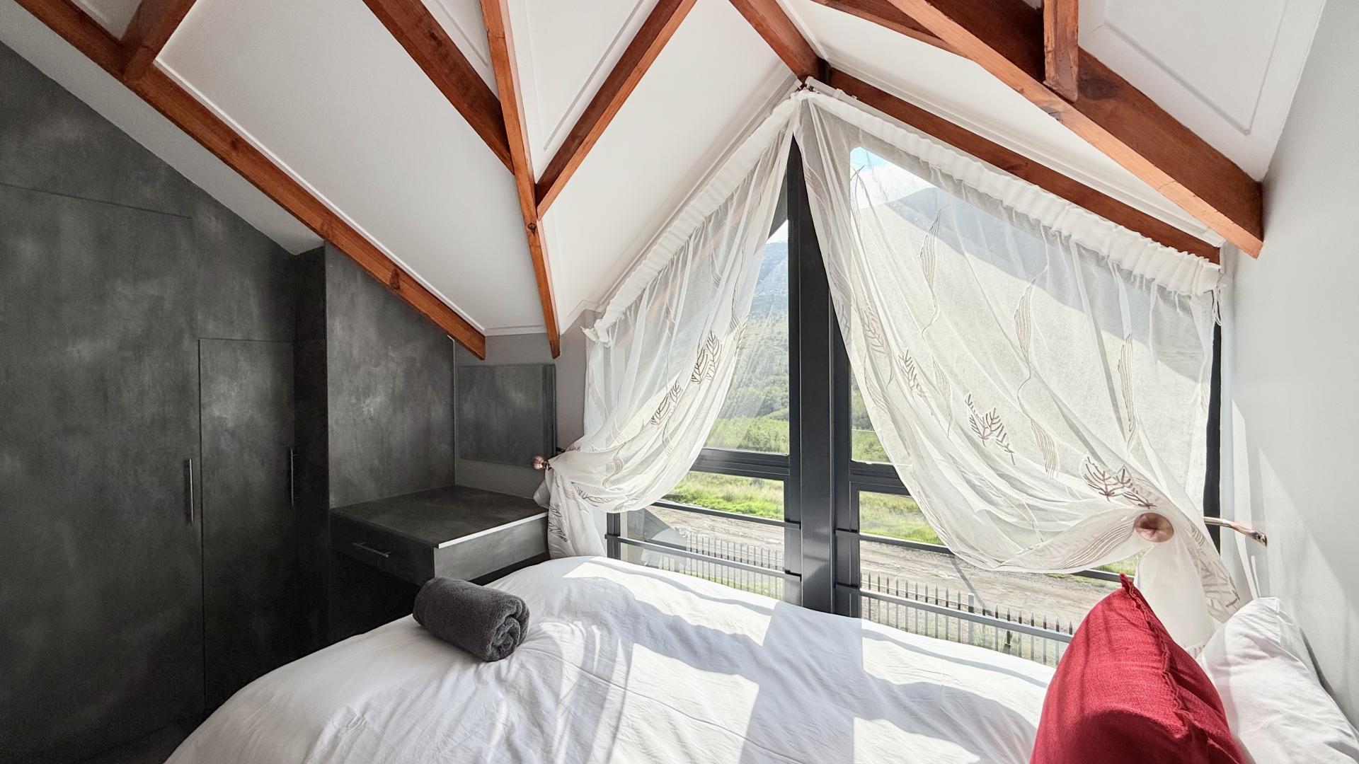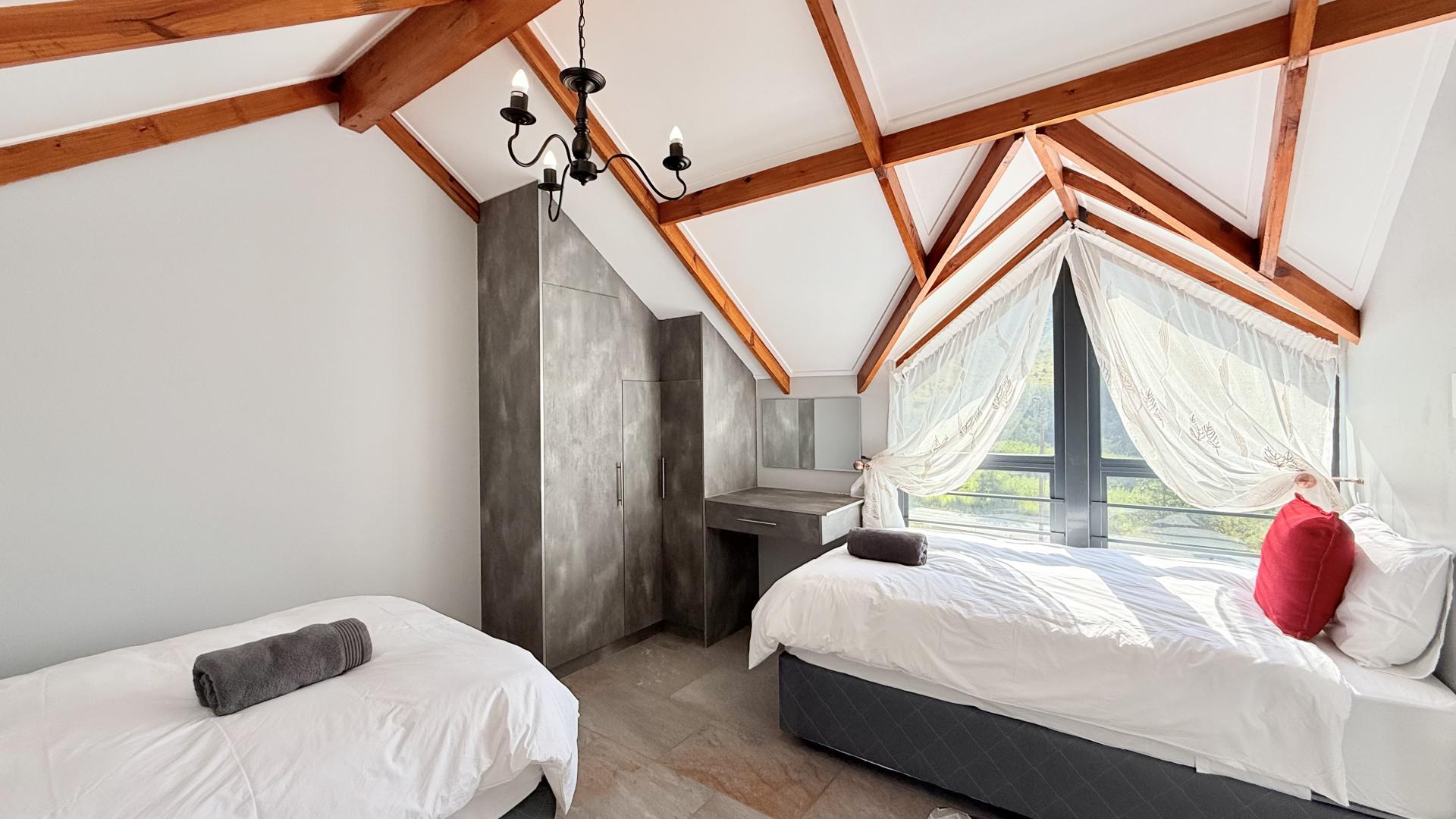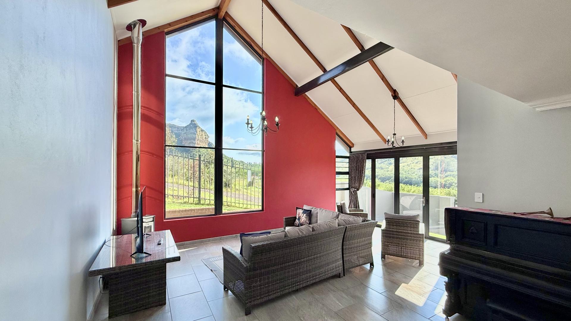 Featuring an extensive north-west facing window in the living area over the striking Titanic mountain, this property is literally positioned at the foot of the mountain and borders the entrance of the nature reserve, as well as walking- and mountain biking trials.