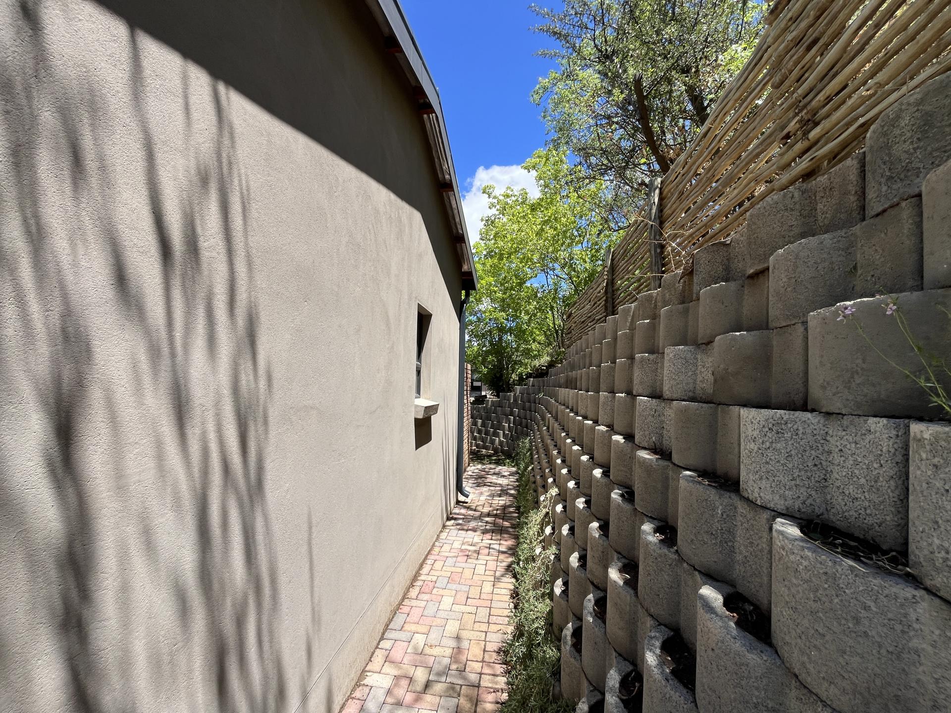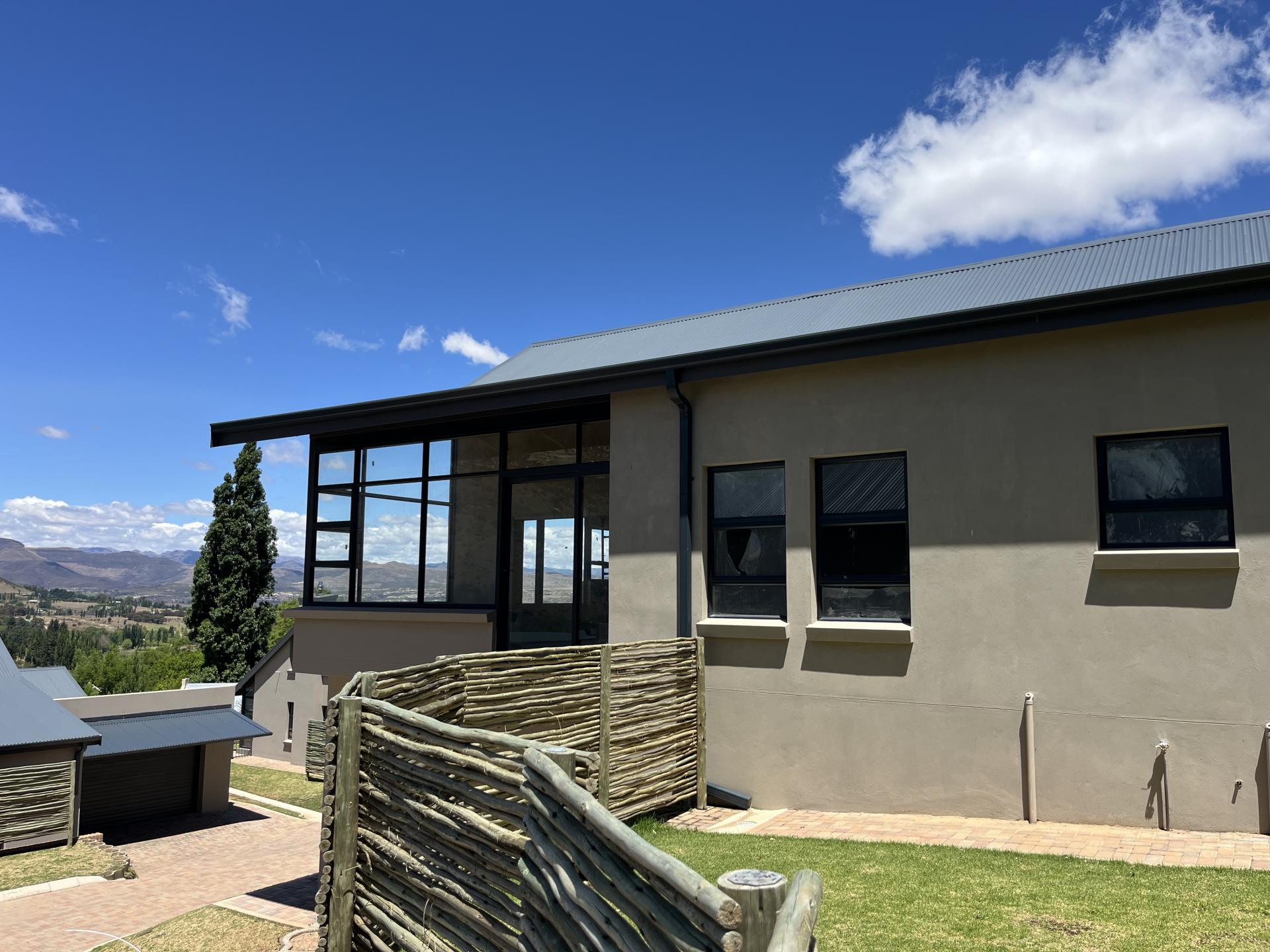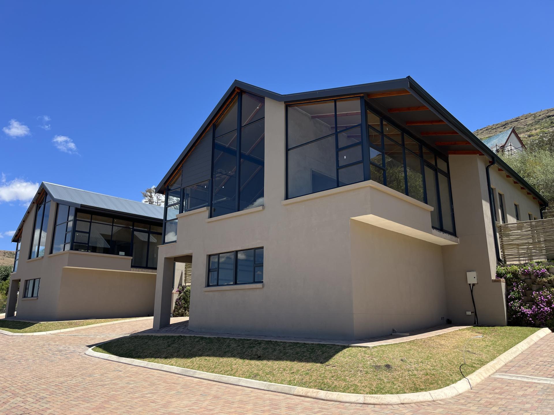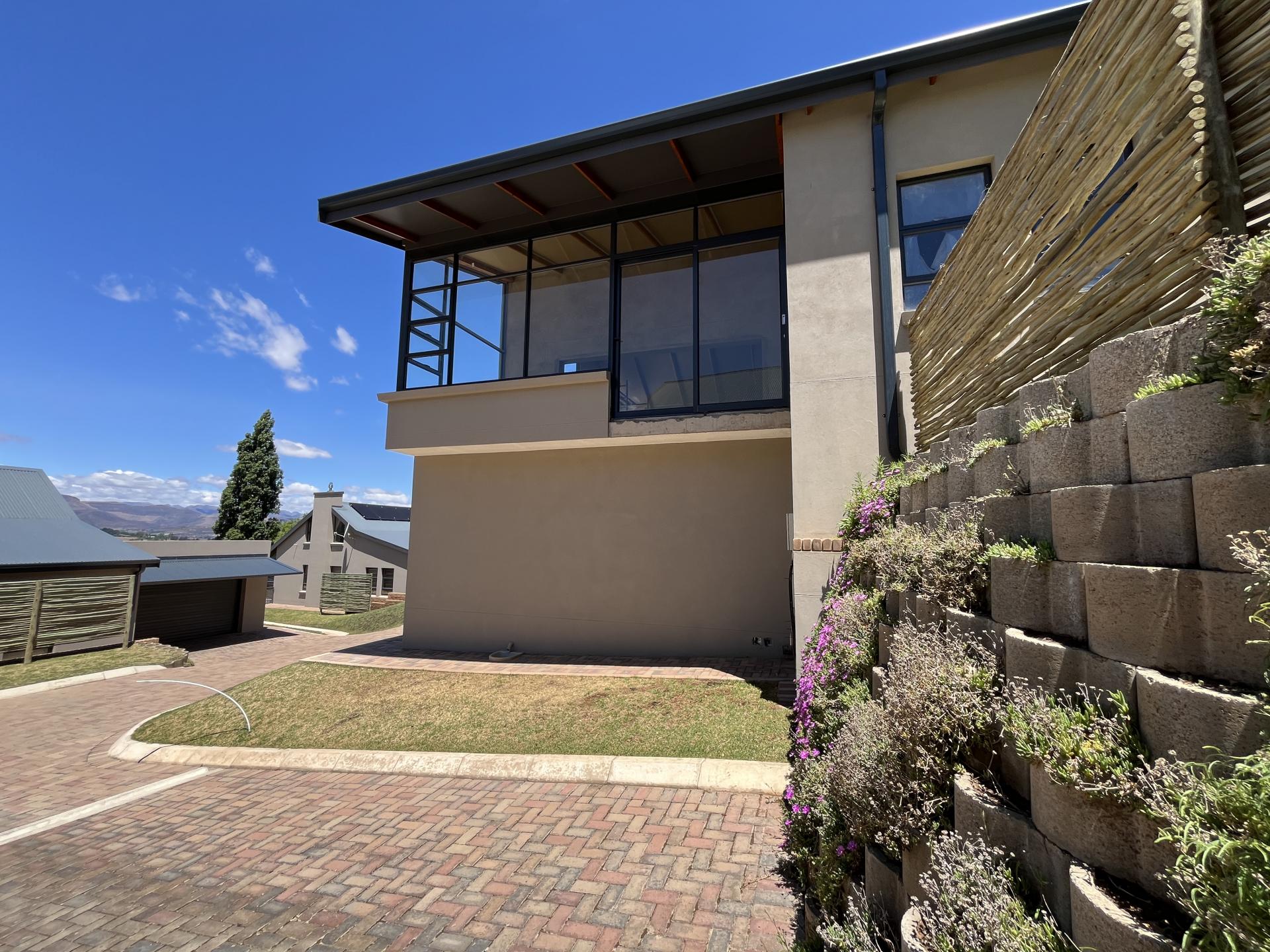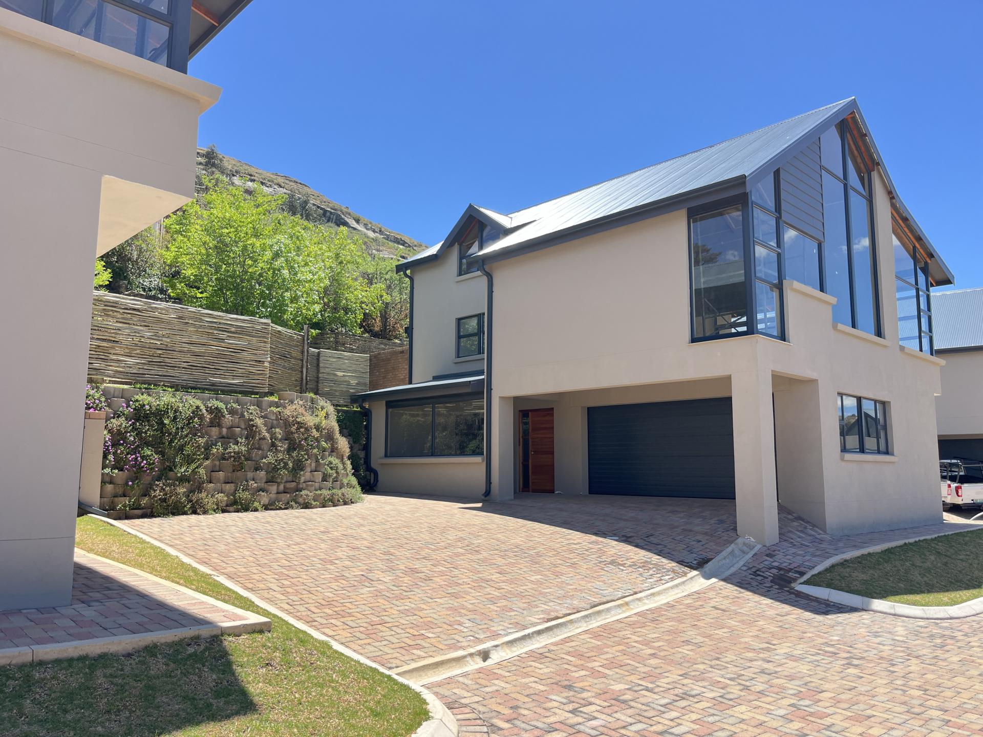 Featuring an expansive north-west-facing window in the living area overlooking the striking Titanic Mountain, the home is literally positioned at the foot of the mountain. It borders the entrance to the nature reserve, as well as walking and mountain biking trails.