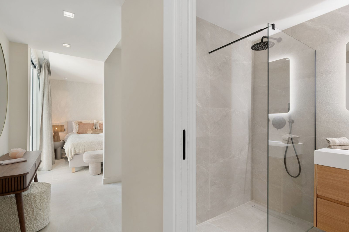 The second floor continues to impress with a luxurious master bedroom featuring an en-suite bathtub and a private balcony, complemented by a second en-suite bedroom with its own balcony. The crowning glory of the property is the third-floor roof terrace, a space designed for relaxation and entertainment. With a Jacuzzi, outdoor kitchen, BBQ area, and sweeping views of the surrounding landscape, this terrace is perfect for enjoying Marbella’s sunsets or hosting guests.
