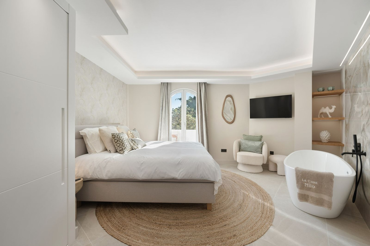 Nestled in the heart of Nueva Andalucía, this recently transformed south-facing townhouse combines the best of Marbella living with elegant design and modern comforts. Located just steps from Mistral beach and moments from Puerto Banús, it offers both convenience and tranquility, making it an exceptional residence or investment opportunity.