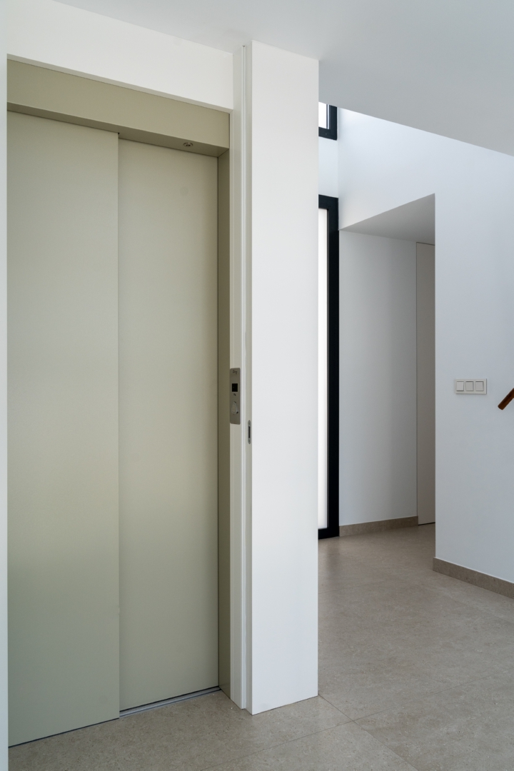 Entrance to the property is on the top level, where the first thing we see is the amazing sea view through the large glass expanse. This welcoming area joins all the floors, whether via the internal lift or staircase or from the parking area access, the middle level is where the sleeping area is consisting of three bedrooms, two of them are en-suite and have spacious wardrobes and access to a shared terrace, the third is the master bedroom equipped with a large walk-in-closet, and a private en-suite bathroom with a free standing bath, a boutique hotel bedroom to experience the ultimate relaxation with a private terrace and where the bed is placed so you wake up gazing at the sea.