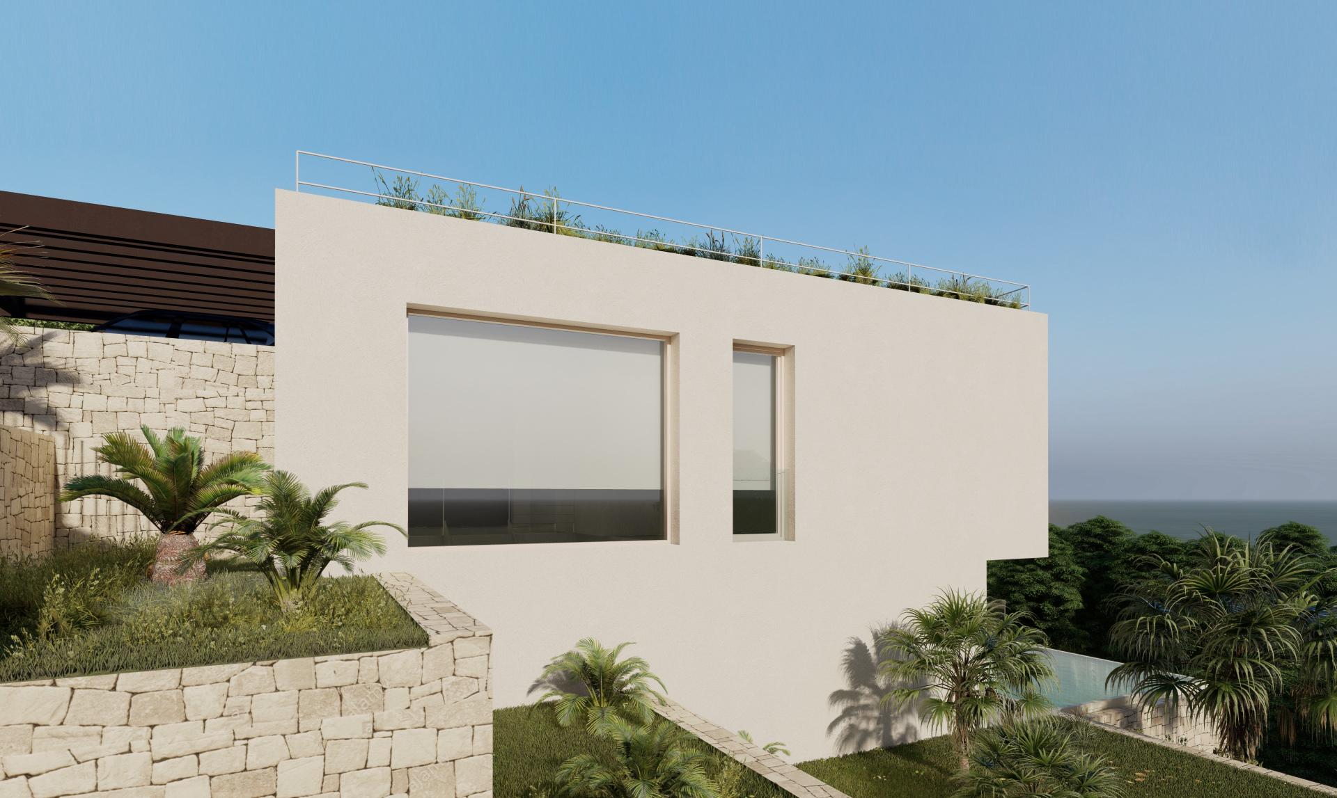 A special feature of the villas is the natural green roof with plantation of species indicated in the catalogue of the Natural Park of the Montgó allowing the property to blend in and respect the natural environment.