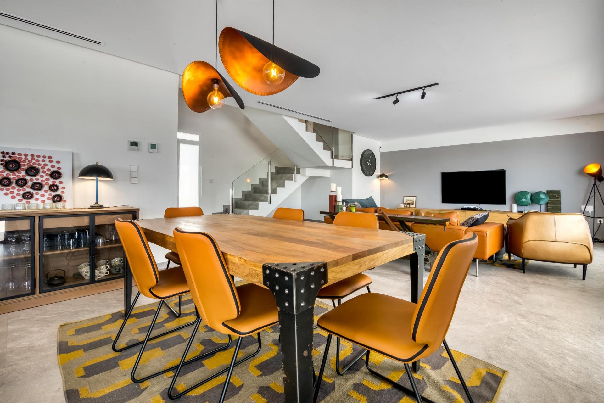 PROPERTY DETAILS Contemporary Architecture & Elegant Design This villa’s striking modern design is defined by its clean lines, open spaces, and seamless connection to the outdoors. The cantilevered ceiling extends over the shaded terrace, providing a stylish and functional outdoor entertaining space. Floor-to-ceiling glass doors flood the interiors with natural light, creating a bright and airy atmosphere that enhances the villa’s sophisticated aesthetic. Every detail, from the ambient lighting in the dining area to the integrated kitchen appliances, has been meticulously curated to offer a luxurious and comfortable living experience.