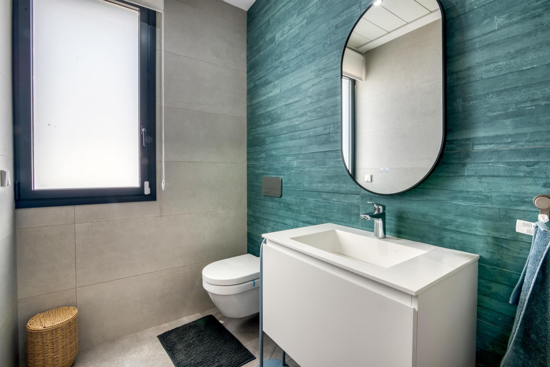 Luxurious Sleeping Quarters Upstairs, the villa’s sleeping quarters offer a serene retreat. The master suite boasts a spacious walk-in closet and a stylish ensuite with a walk-in shower. Two additional bedrooms, each featuring built-in wardrobes and large glass doors, share a beautifully designed bathroom. All bedrooms open onto a spectacular upper terrace, providing a private outdoor space to unwind, sunbathe, and take in the surrounding views including the Montgo mountain.