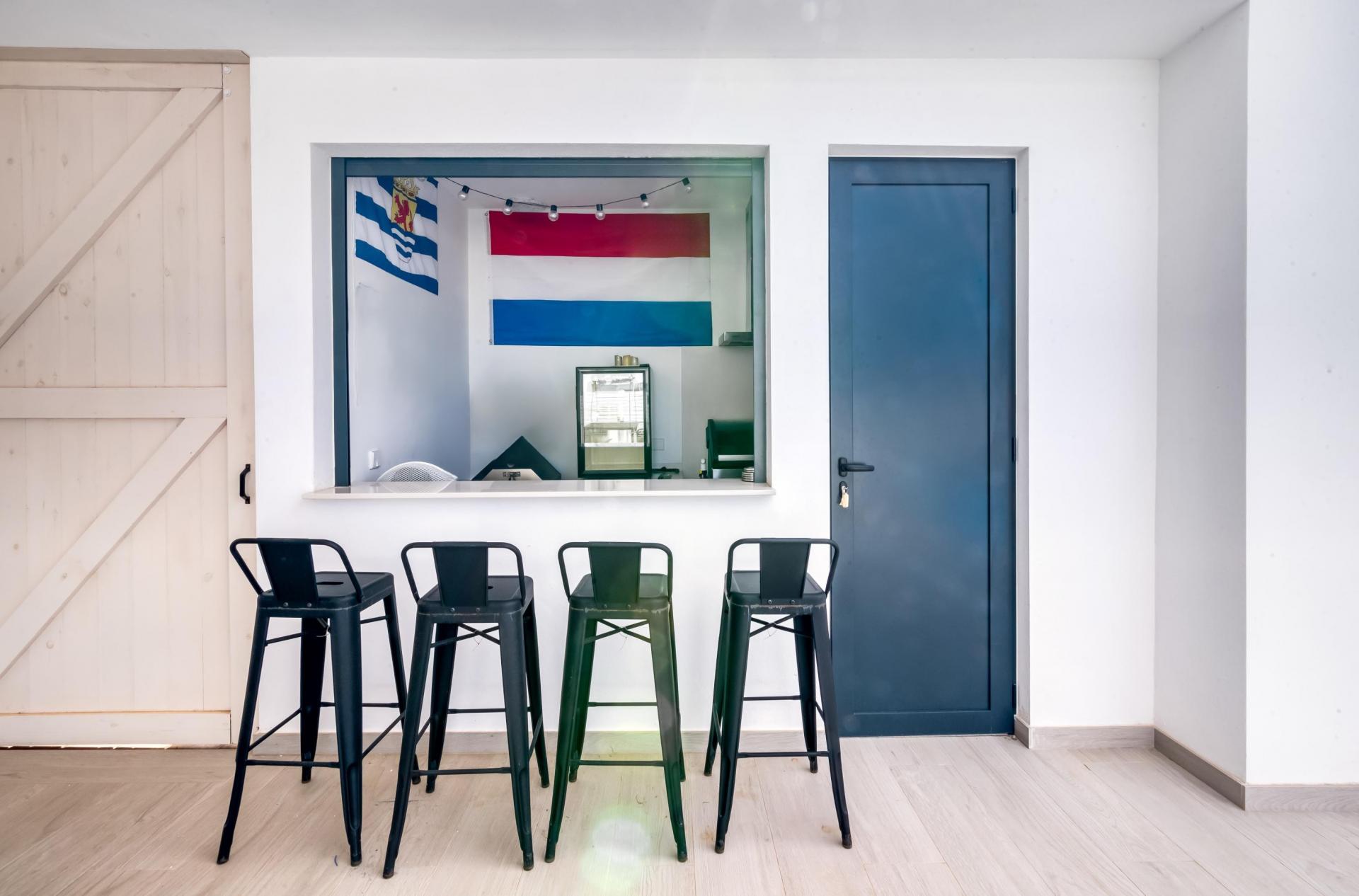 Seamless Indoor-Outdoor Living The main living space has been designed for effortless flow, with an open-plan lounge, dining area, and designer kitchen blending seamlessly. The kitchen, a true centrepiece of the home, features sleek cabinetry, an island counter with built-in hob, and a ceiling built-in extractor fan. Sliding glass doors lead directly to the shaded terrace, where an outdoor lounge and dining space overlook the stunning modern pool. The combination of retractable shading and open sunbathing areas allows for all-day enjoyment of the Mediterranean climate.