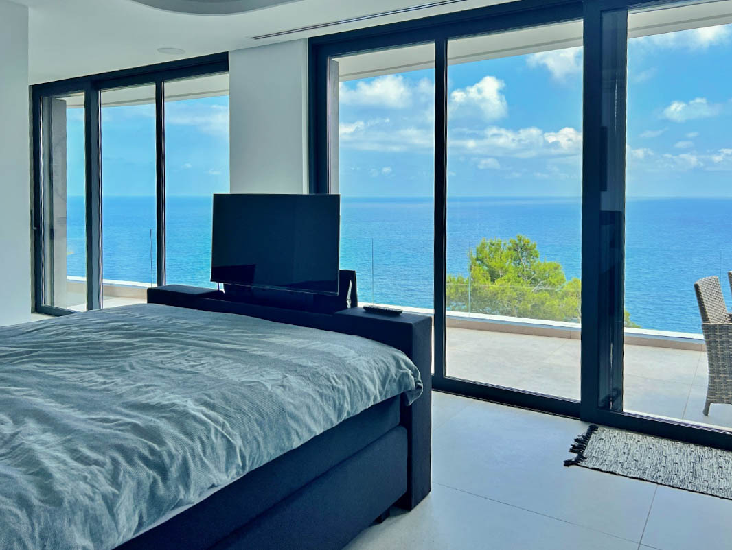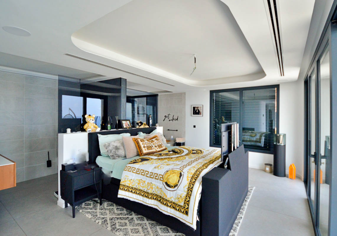 Ascend to the upper floor to discover the 80m² master bedroom, complete with an ensuite, a dressing room, and exclusive access to a private terrace boasting stunning frontal sea views.