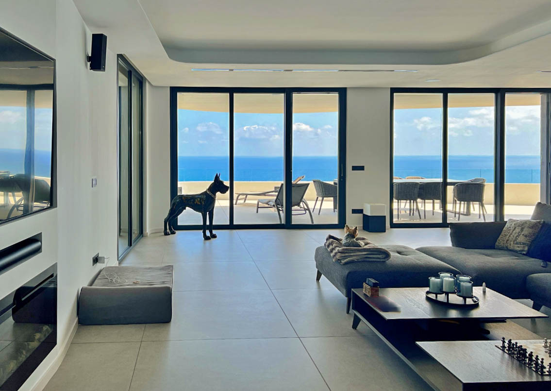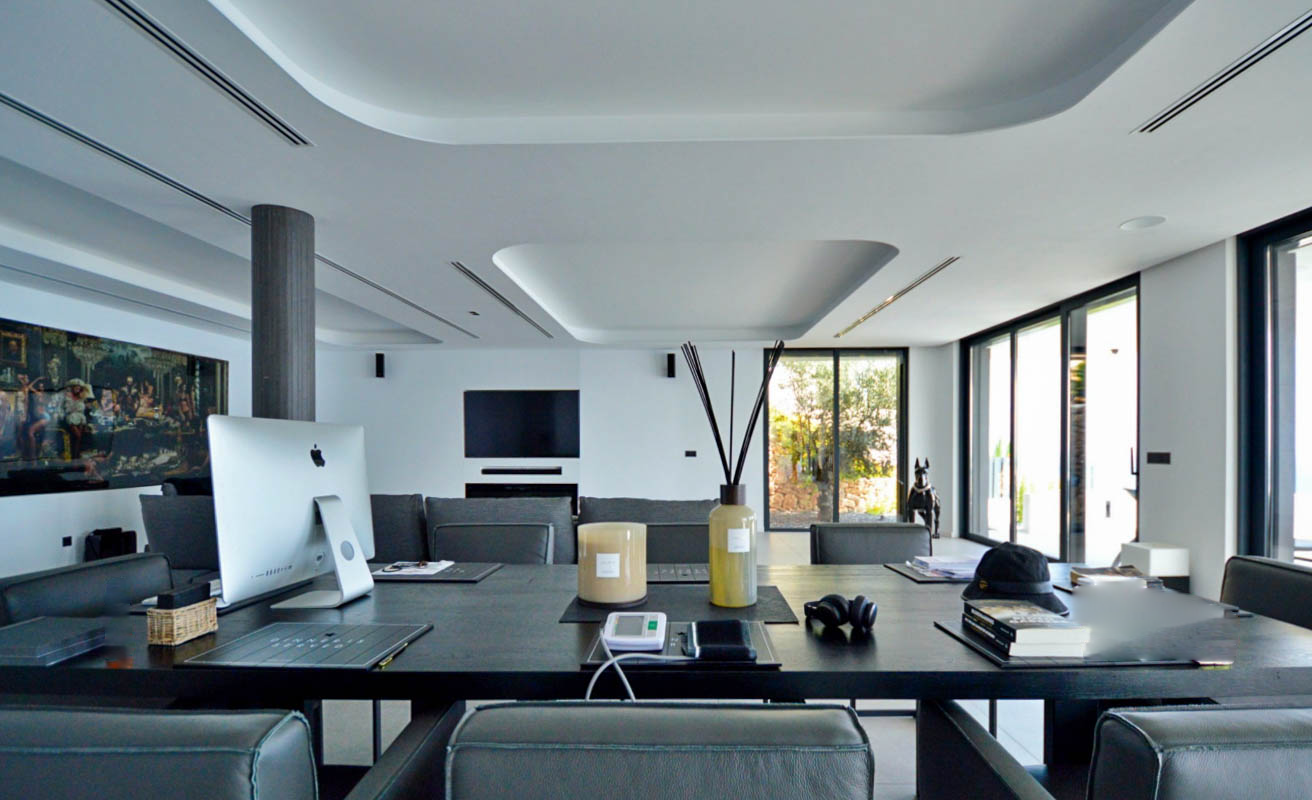 The heart of this villa lies in its sprawling 214m² living room, complemented by an open kitchen with an inviting island, leading to a terrace offering serenely relaxing sea panoramas. It's a space that encourages reflection on life's beauty while cherishing moments with family and friends.