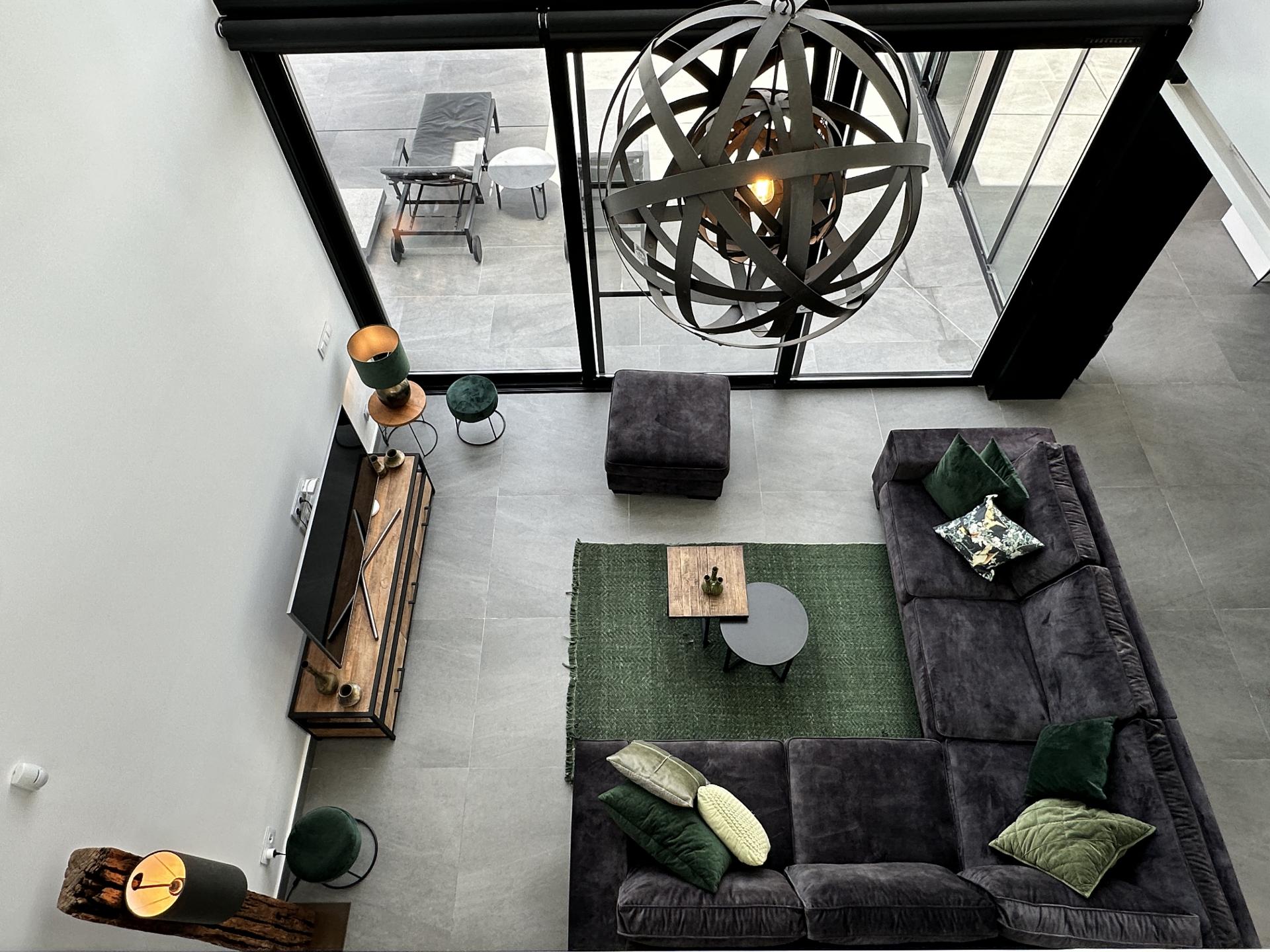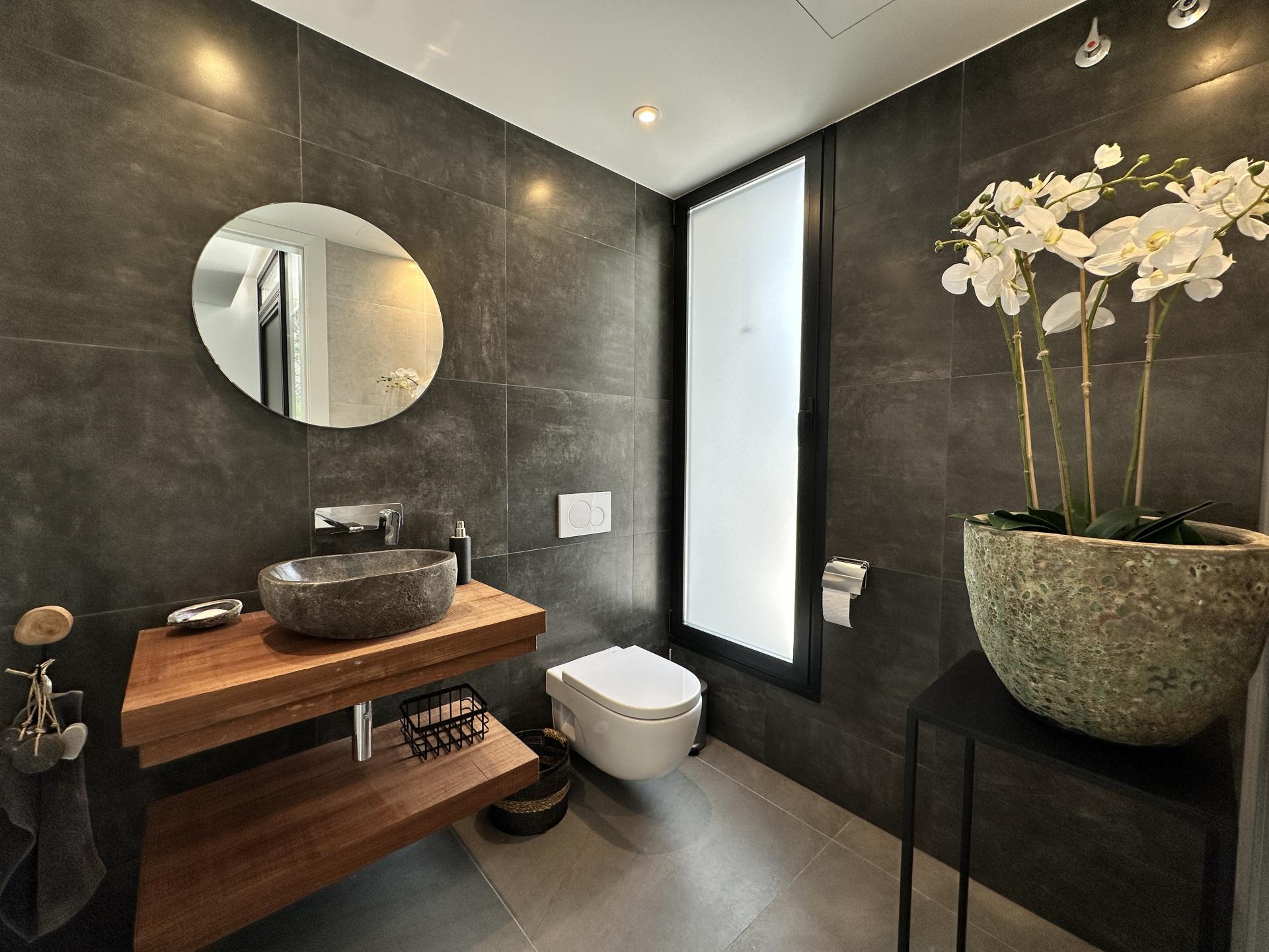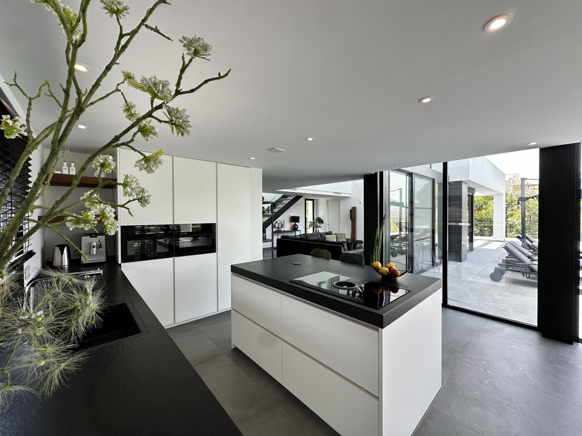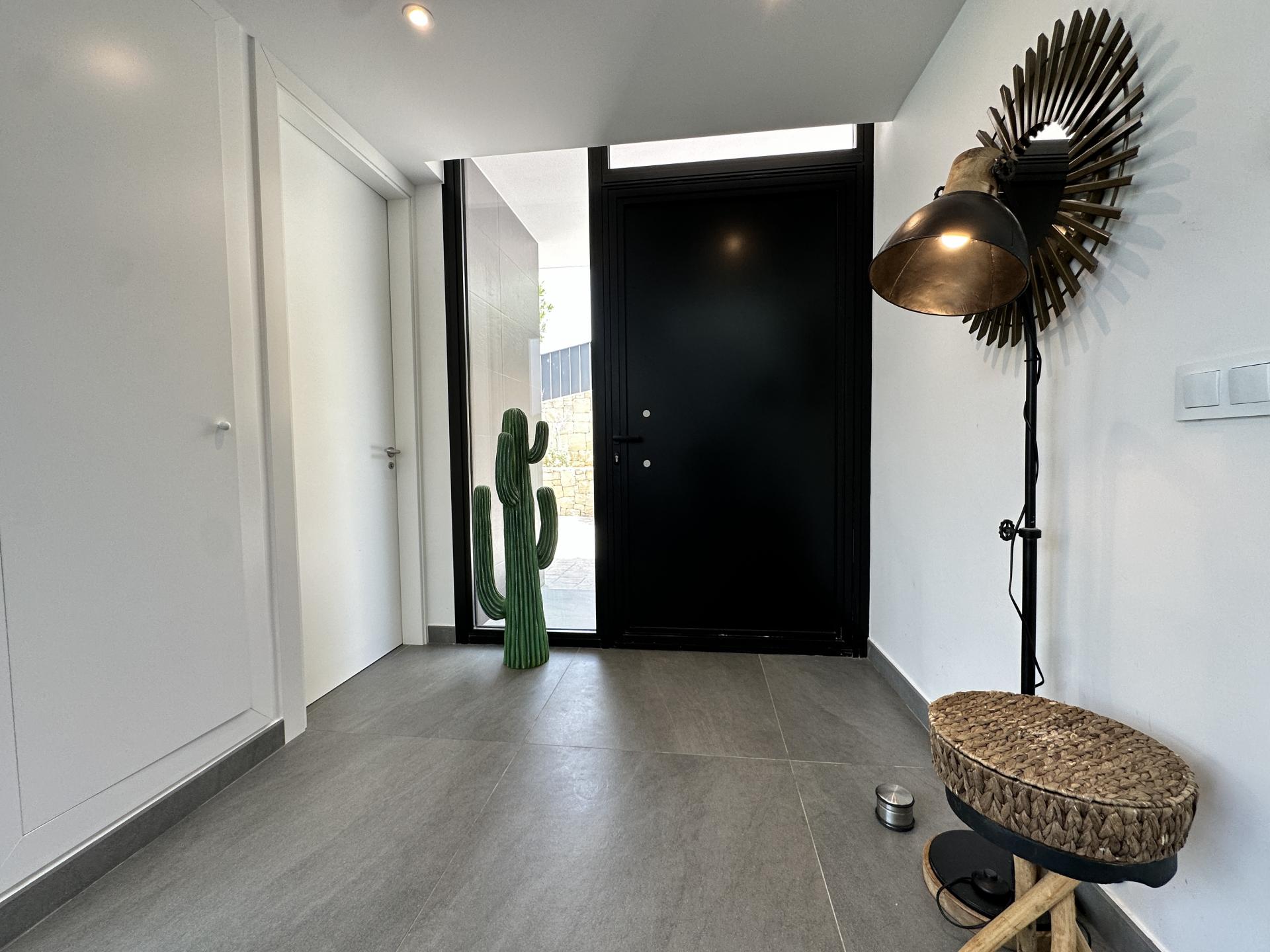 PROPERTY DETAILS This luxurious villa is built over two levels and offers spacious accommodation designed for modern living. The welcoming entrance leads into the double-height open plan living area, which includes a lounge, formal dining area, and a modern equipped kitchen with a counter island with hob and casual dining/breakfasting seating. This area opens to the outside pool, terracing, and summer kitchen, allowing for seamless indoor-outdoor living. There is also a separate utility/laundry room off the kitchen and a guest toilet.