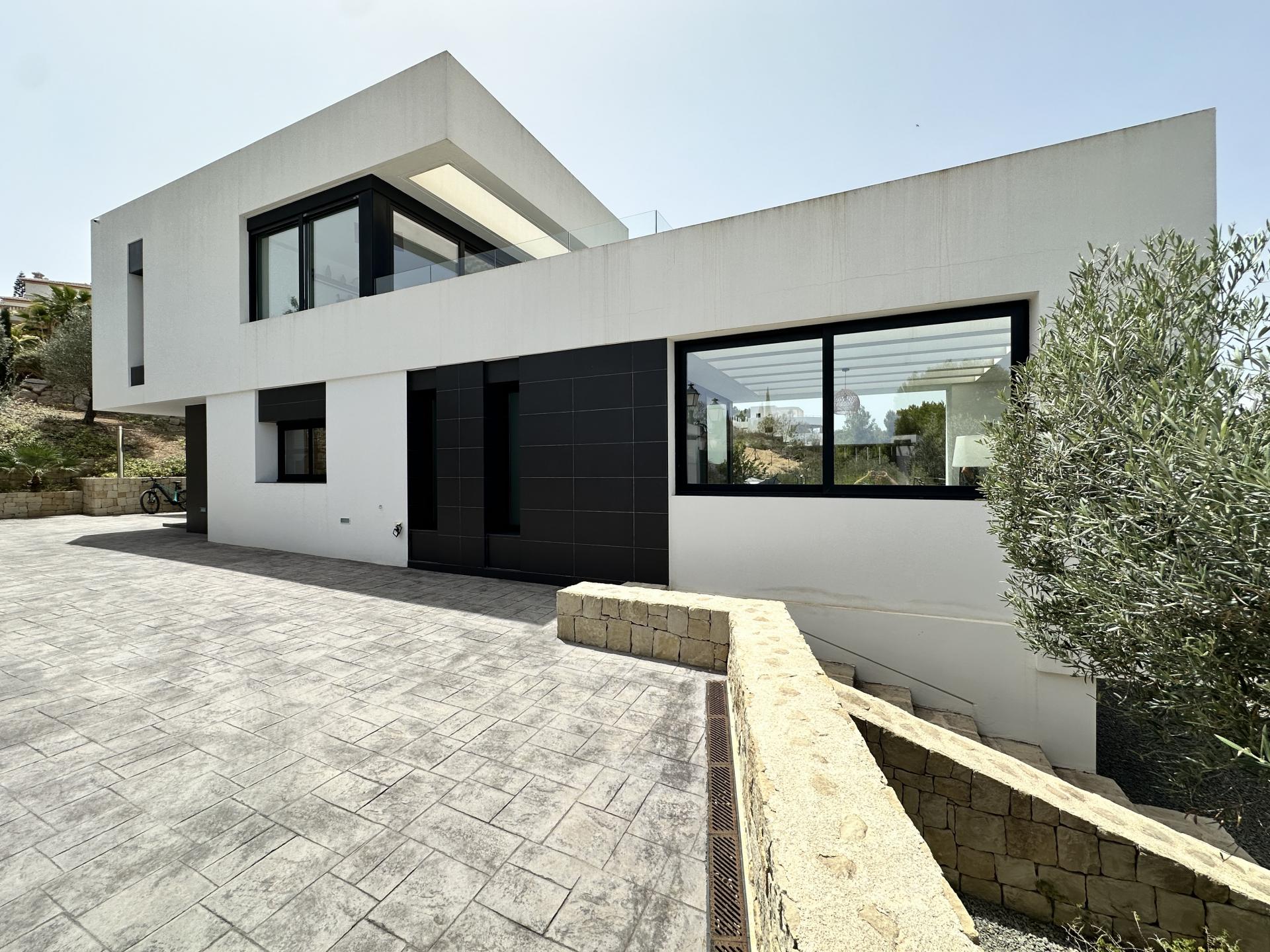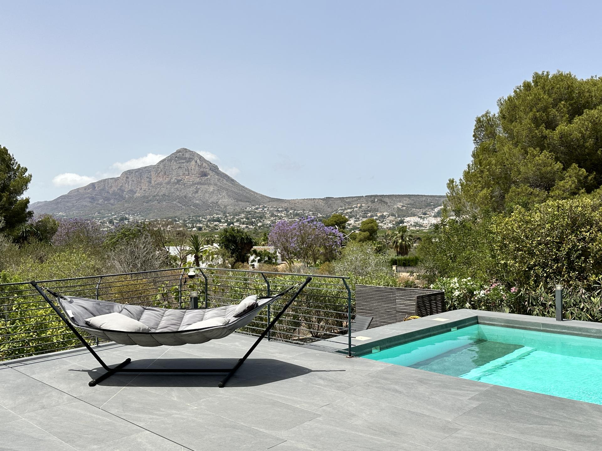 PROPERTY AT A GLANCE This key ready, designer villa is aesthetically pleasing with a modern design that highlights the stunning turquoise blue of the infinity pool against its white and grey façade. The property features impressive double-height ceilings and vast glass expanses that offer breathtaking views of the Montgo mountain, the Mediterranean Sea, and the surrounding valleys. Located in a sought-after residential area, this modern development of luxury villas benefits from sea views, making it a highly desirable location. Just a 5-7 minute drive from the fashionable beach resort of Javea, with its upmarket Arenal beach, promenade, and array of dining and entertainment options, the property is also close to Javea Golf course and international schools.