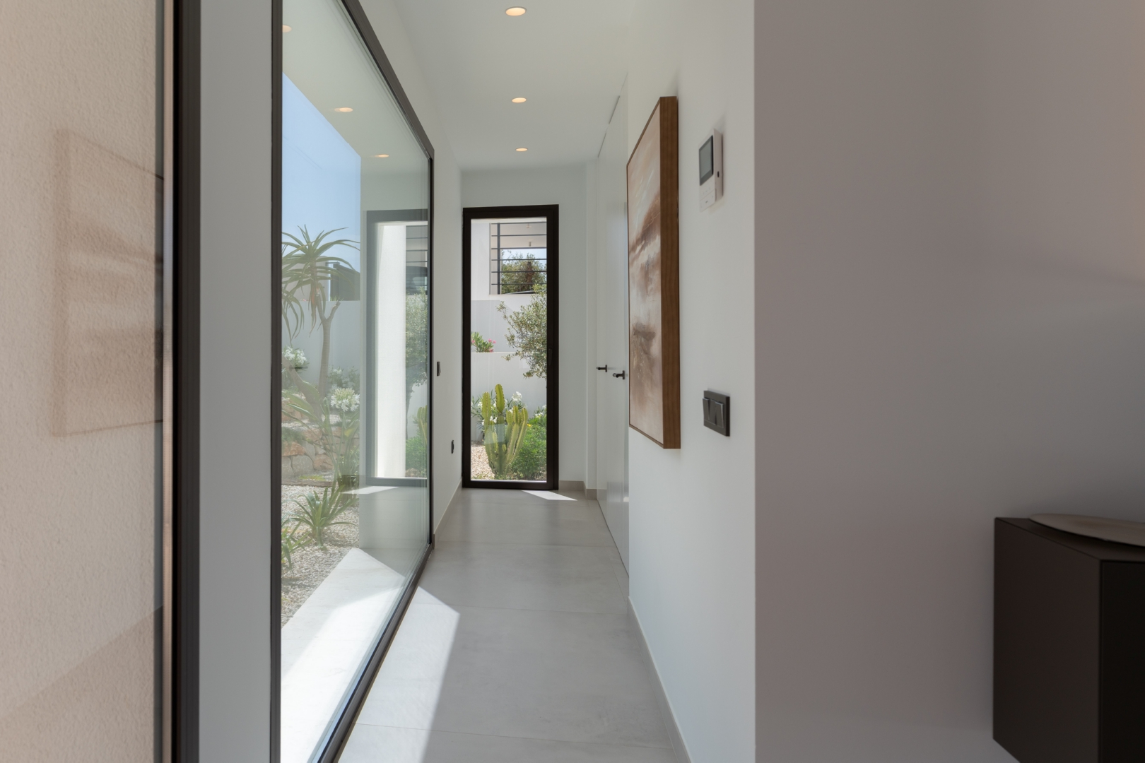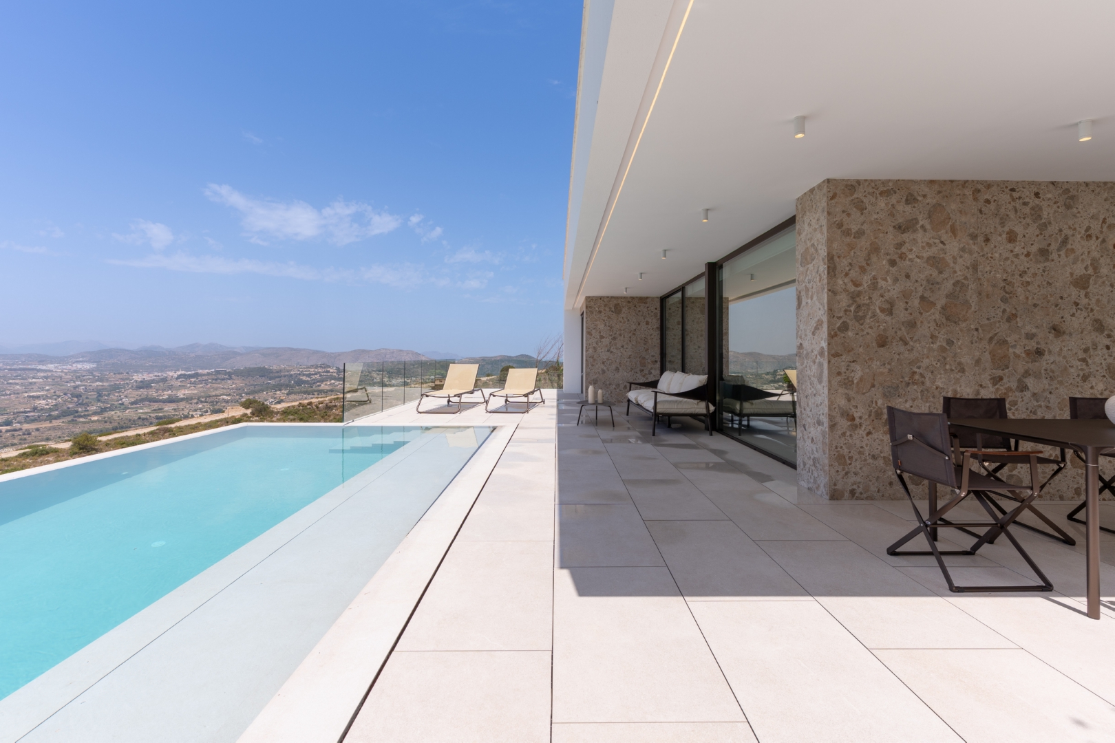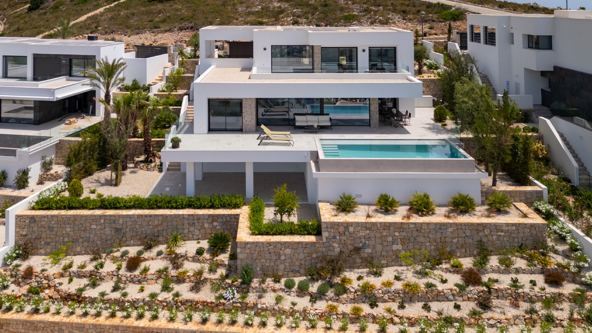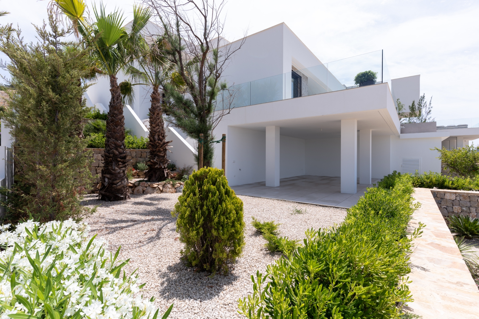 PROPERTY DETAILS Architecture & Design This villa is a statement of contemporary sophistication. Designed with clean lines and a minimalist aesthetic, its architecture fuses luxury with sustainability. The layout optimises the flow of light and air, enhancing the sea views from nearly every room. Crisp white facades are complemented by natural textures and expansive glazing, allowing the outdoors to merge seamlessly with the interior spaces. The three-level design includes floating terraces and a strategic orientation that maximises sun exposure while maintaining privacy.
