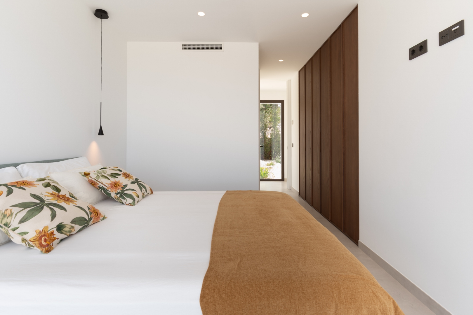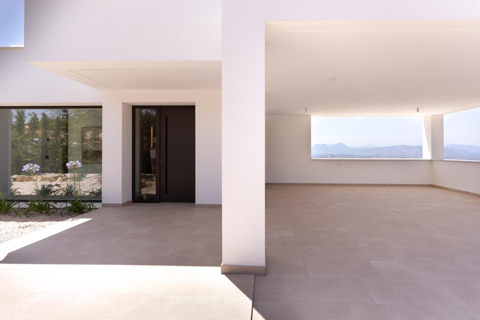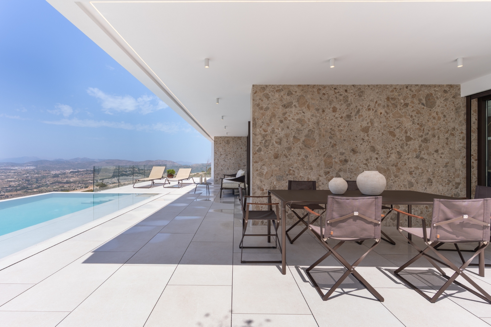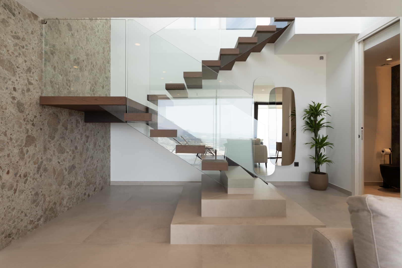 PROPERTY DETAILS Architecture & Design This villa is a statement of contemporary sophistication. Designed with clean lines and a minimalist aesthetic, its architecture fuses luxury with sustainability. The layout optimises the flow of light and air, enhancing the sea views from nearly every room. Crisp white facades are complemented by natural textures and expansive glazing, allowing the outdoors to merge seamlessly with the interior spaces. The three-level design includes floating terraces and a strategic orientation that maximises sun exposure while maintaining privacy.