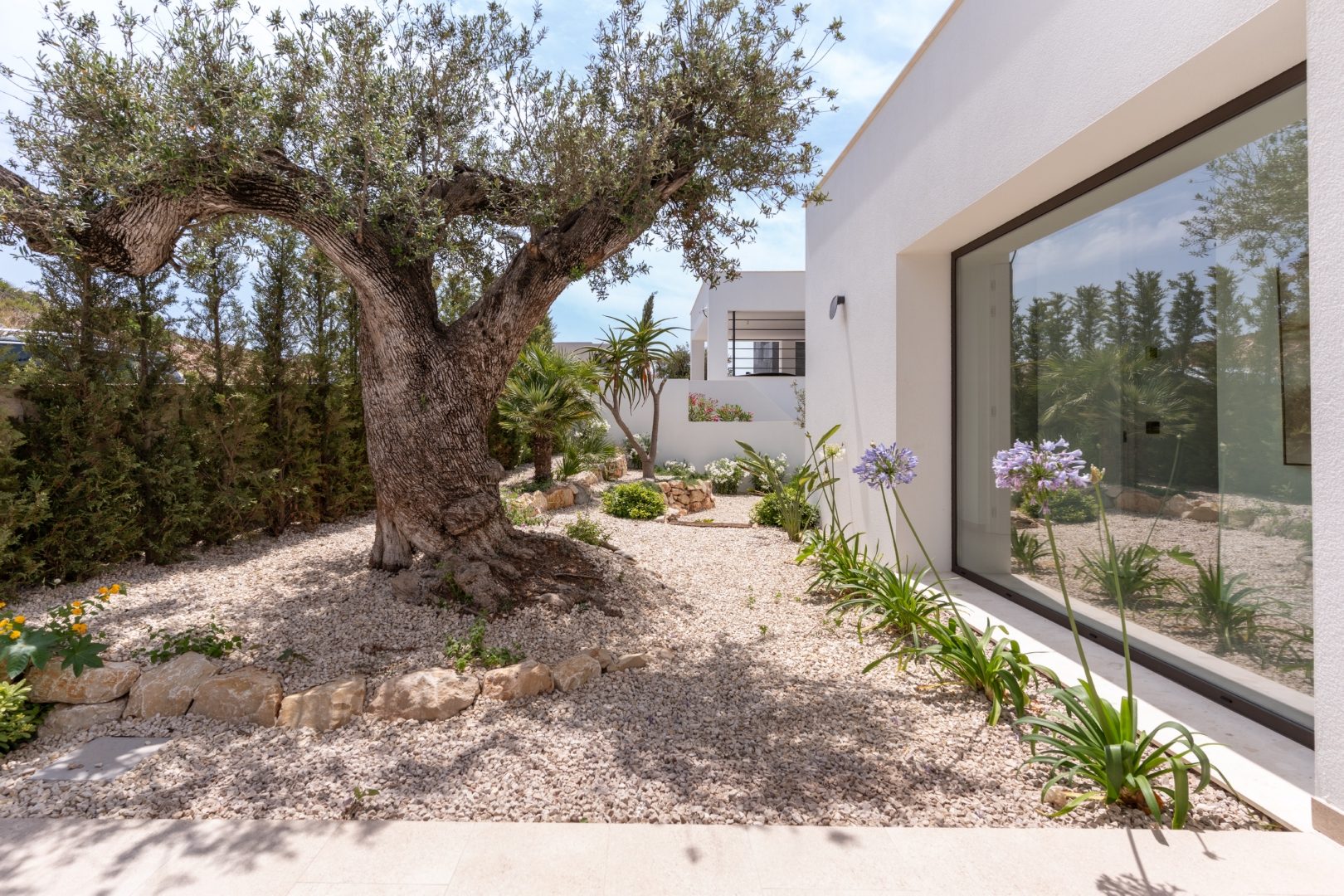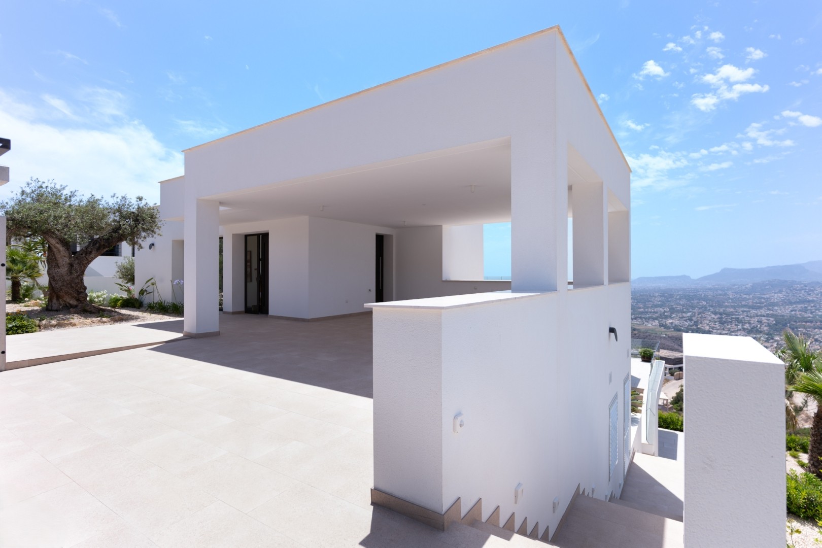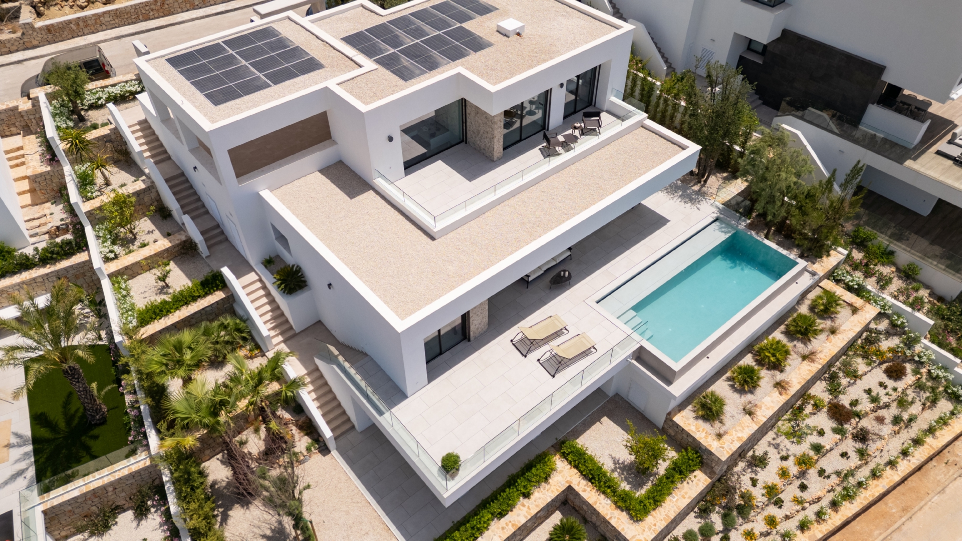 PROPERTY AT A GLANCE Set within an exclusive residential enclave just five minutes from the golden sands of Moraig Beach, this key-ready contemporary villa is a masterpiece of modern Mediterranean architecture. Spanning 548m² across three levels and occupying a generous 823m² plot, it boasts breath-taking panoramic views of the Mediterranean Sea and the iconic Peñón de Ifach. With three luxurious en-suite bedrooms, expansive indoor and outdoor living spaces, and state-of-the-art sustainable technology, this home has been designed for year-round living in style and comfort. From the stunning infinity pool to the light-filled interiors, every element exudes timeless elegance and refined luxury.