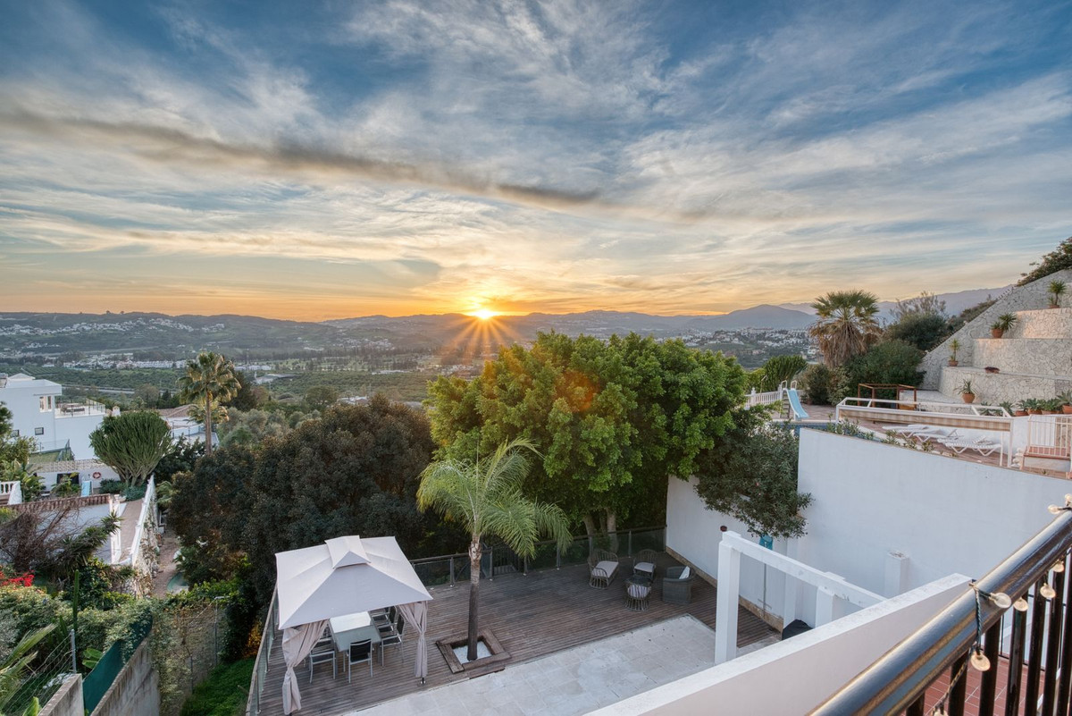 Stunning south-facing villa in Urb La Sierrezuela on the Costa del Sol has been recently renovated and offers five bedrooms across three levels, with panoramic views from two terraces and a private pool with deck.