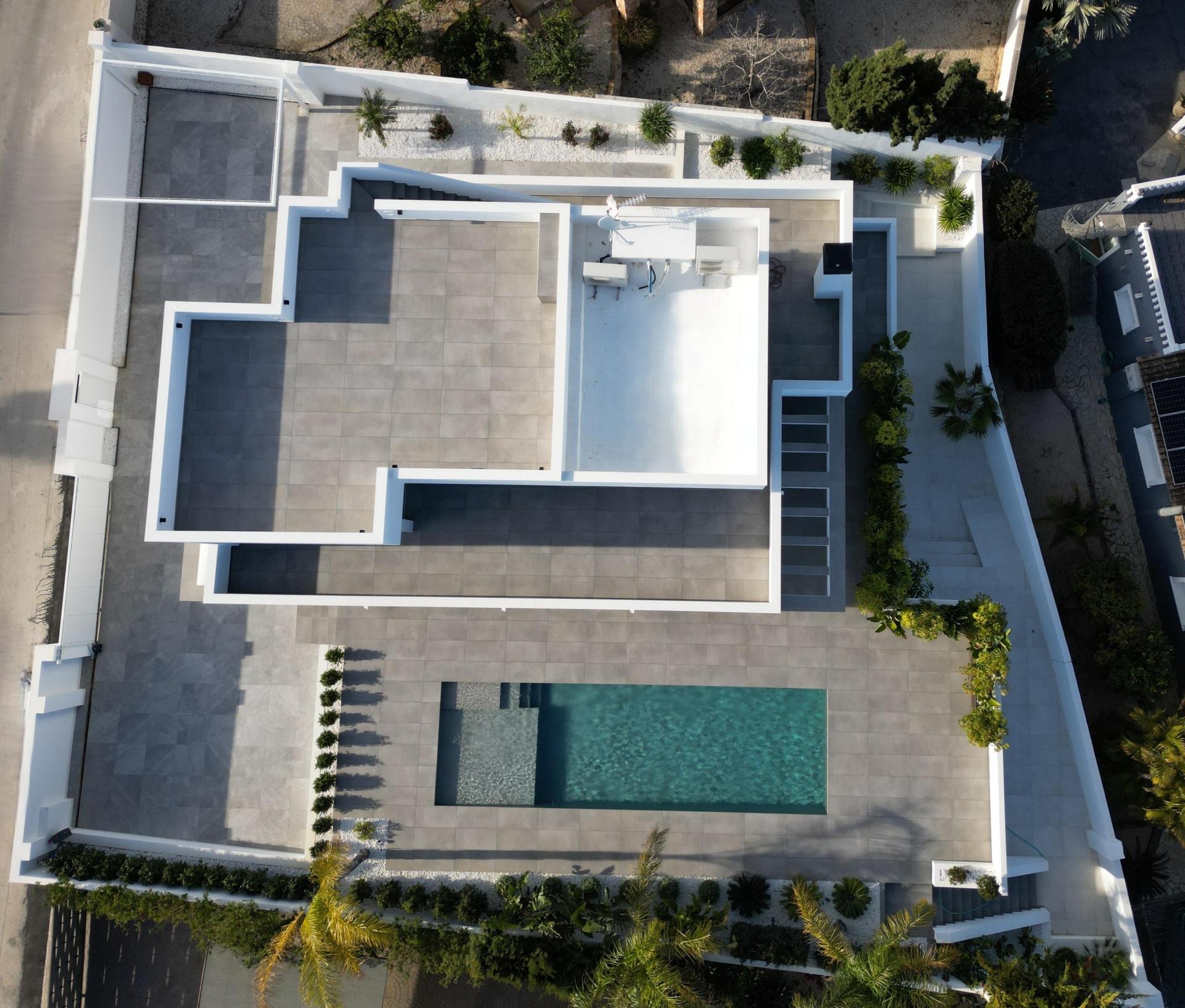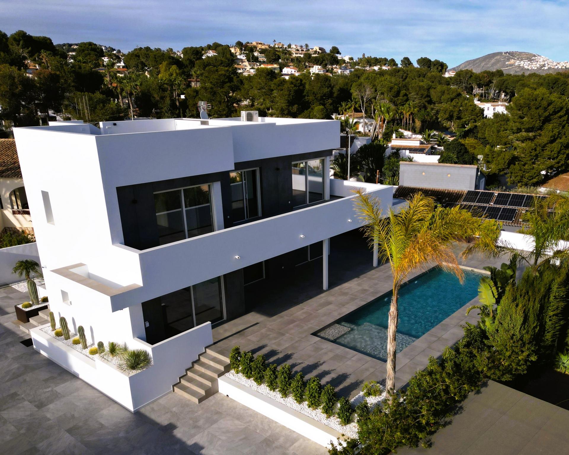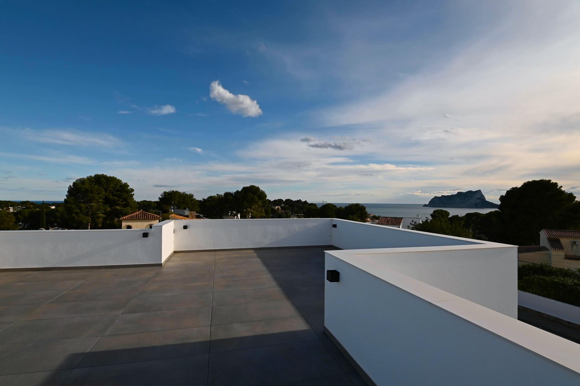 PROPERTY AT A GLANCE This newly built, south-facing modern villa in Moraira offers an exceptional blend of contemporary design, premium finishes, and seamless indoor-outdoor living. A true blank canvas, the residence allows its new owners to add their own signature in terms of interior design and furnishing. Spanning three levels, the villa enjoys an elegant architectural presence, with clean geometric lines, an expansive terrace, and a stunning pool framed by lush green Mediterranean landscaping. Located just a short distance from the centre of Moraira, this property boasts breath-taking sea views from the upper terrace that stretch from Moraira to the iconic Peñón de Ifach. Offering open-plan living spaces, state-of-the-art features, and a host of luxury amenities, this villa is perfect for those seeking a stylish coastal retreat or a low-maintenance permanent residence.