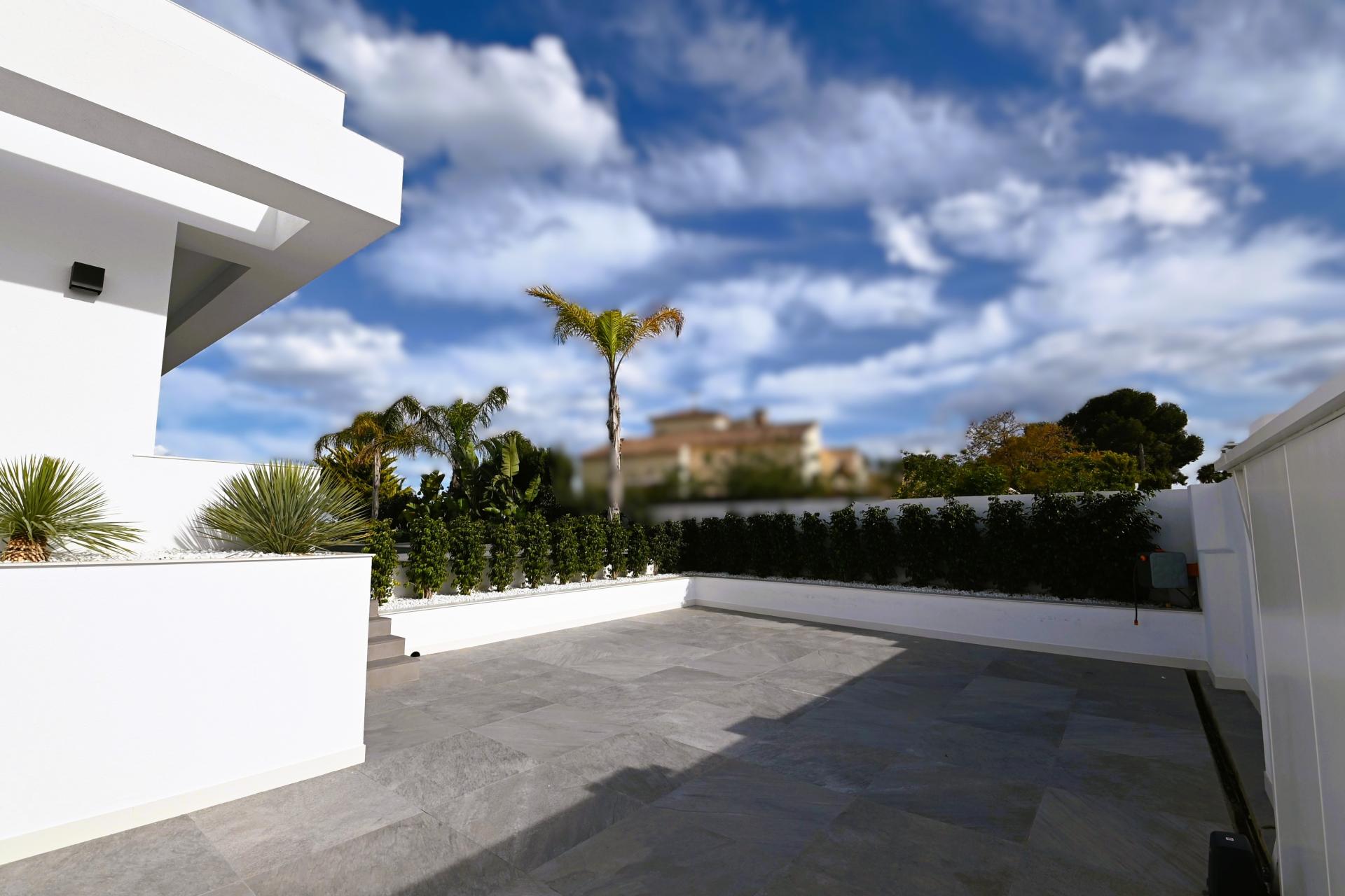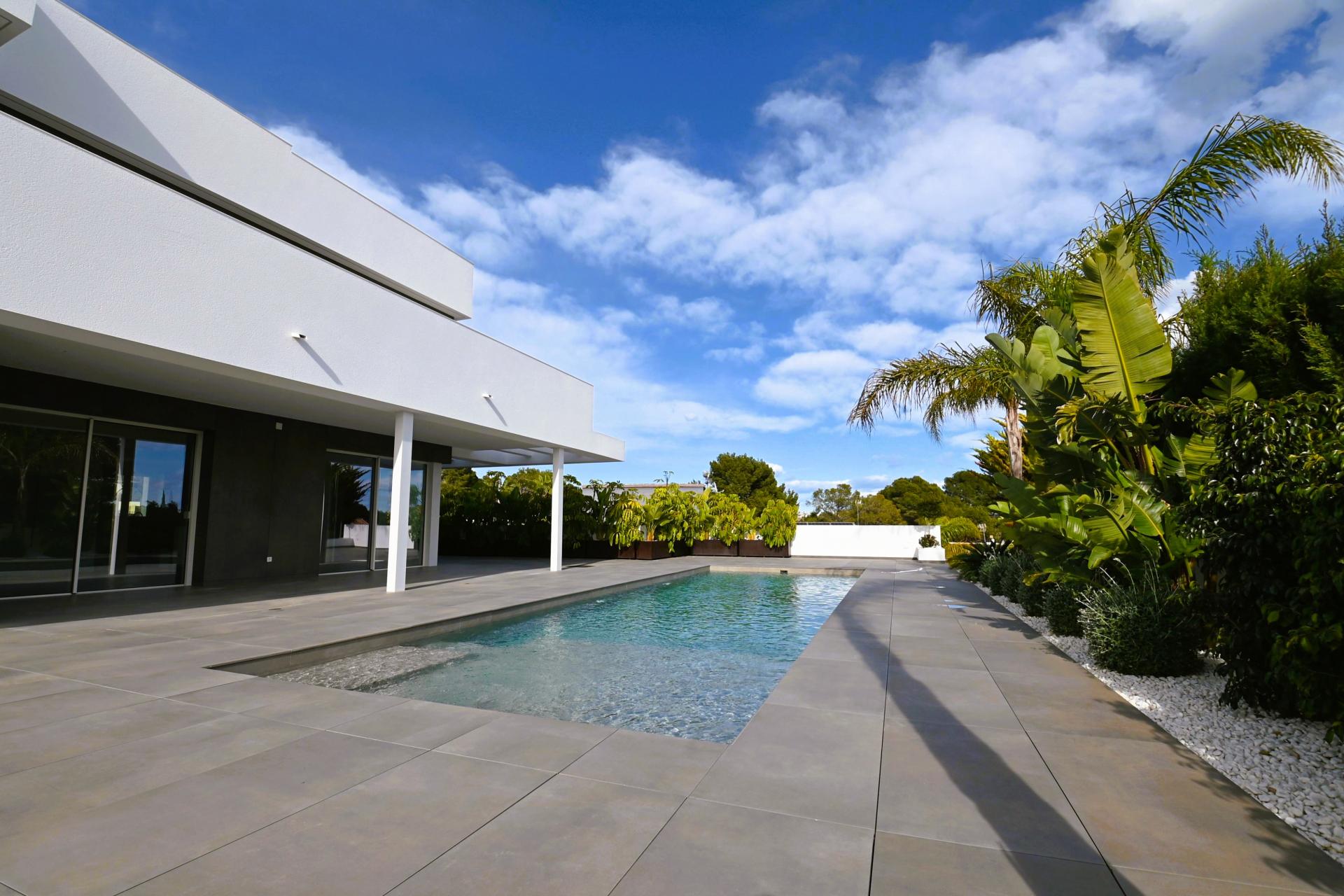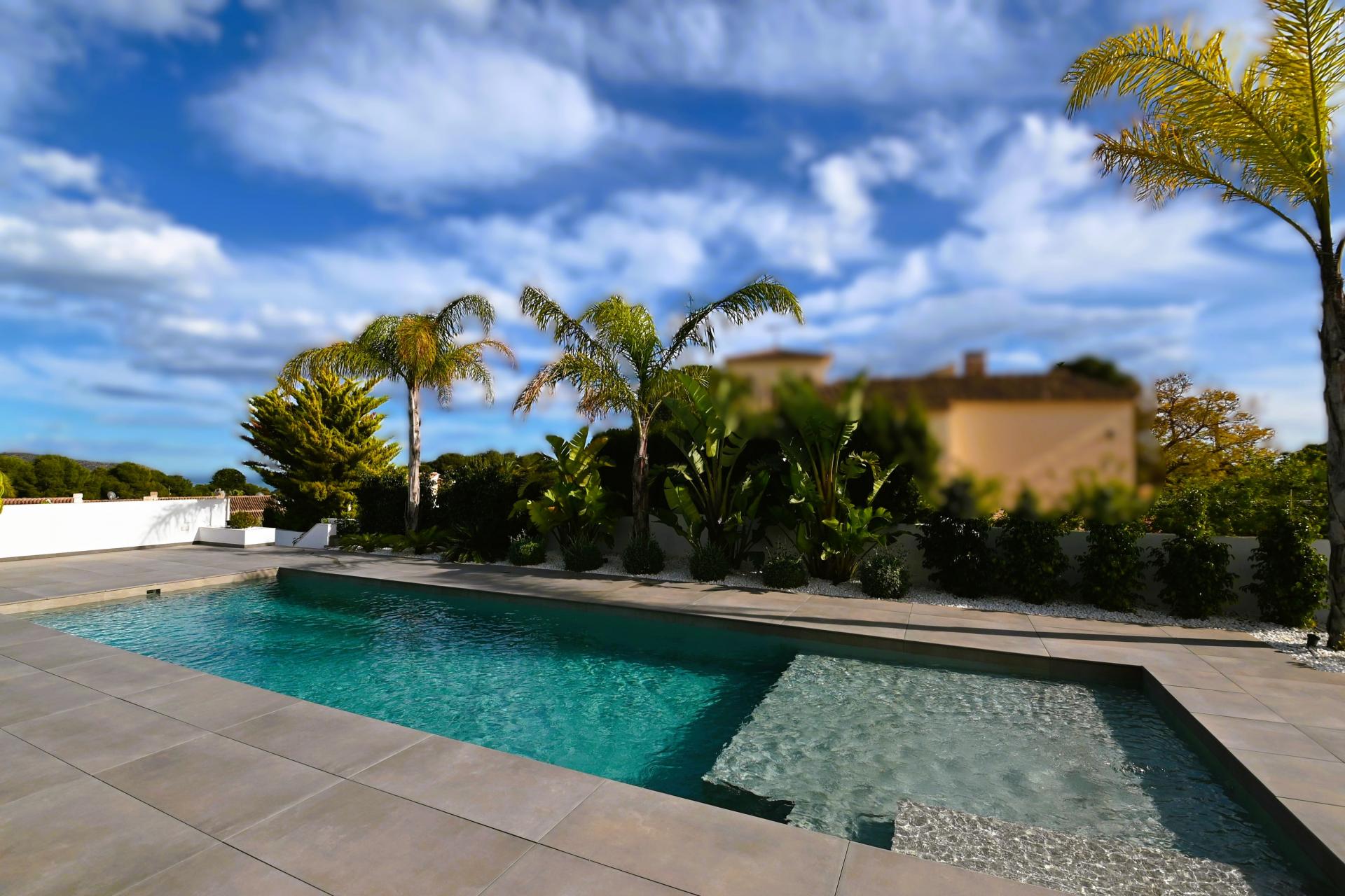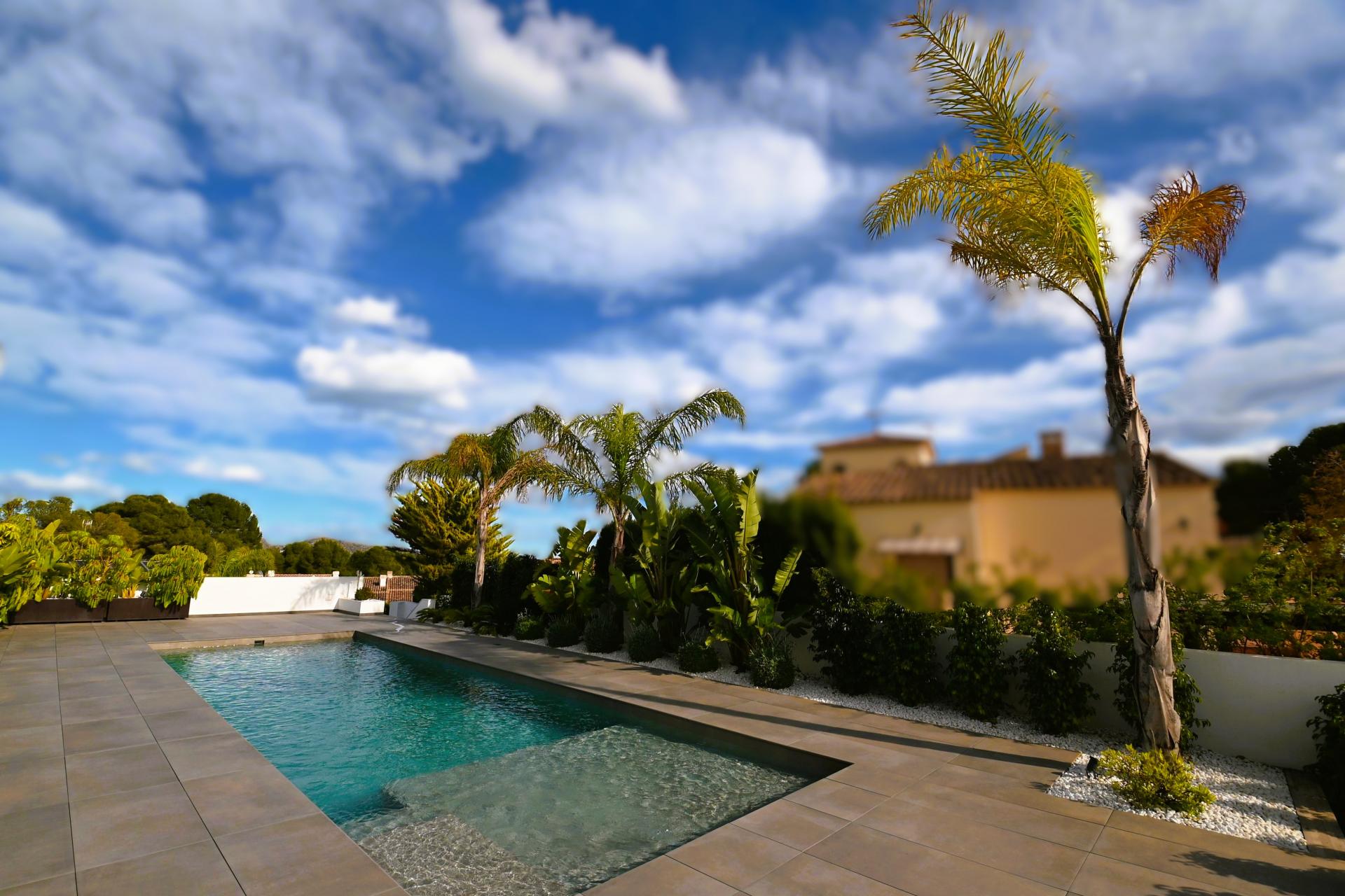 PROPERTY AT A GLANCE This newly built, south-facing modern villa in Moraira offers an exceptional blend of contemporary design, premium finishes, and seamless indoor-outdoor living. A true blank canvas, the residence allows its new owners to add their own signature in terms of interior design and furnishing. Spanning three levels, the villa enjoys an elegant architectural presence, with clean geometric lines, an expansive terrace, and a stunning pool framed by lush green Mediterranean landscaping. Located just a short distance from the centre of Moraira, this property boasts breath-taking sea views from the upper terrace that stretch from Moraira to the iconic Peñón de Ifach. Offering open-plan living spaces, state-of-the-art features, and a host of luxury amenities, this villa is perfect for those seeking a stylish coastal retreat or a low-maintenance permanent residence.