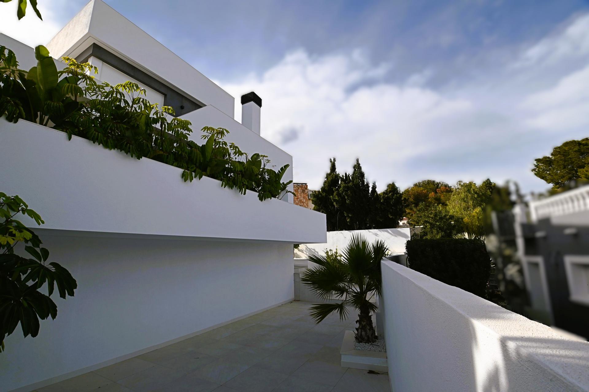PROPERTY DETAILS Contemporary Architecture & Design The villa’s striking architectural design is defined by its crisp white façade, bold geometric structure, and minimalist aesthetic. The combination of smooth render, contrasting dark elements, and vast floor-to-ceiling windows creates a sleek, modern statement. The seamless integration of indoor and outdoor living spaces maximises natural light, offering a sense of openness and connection to the Mediterranean surroundings. Clean lines and high-quality materials throughout ensure that this residence stands as a timeless, elegant retreat.