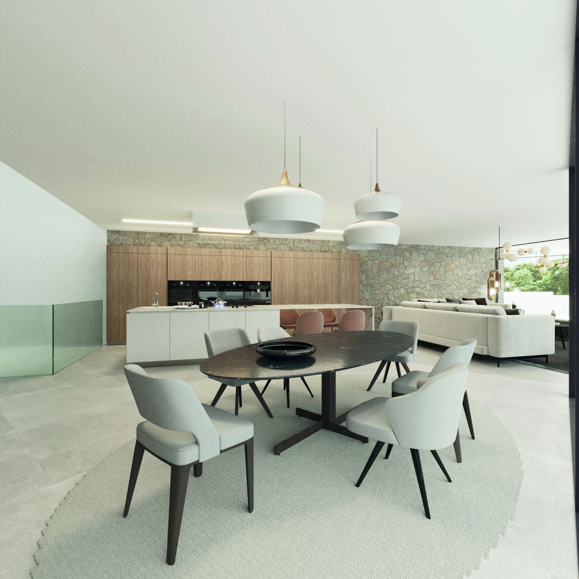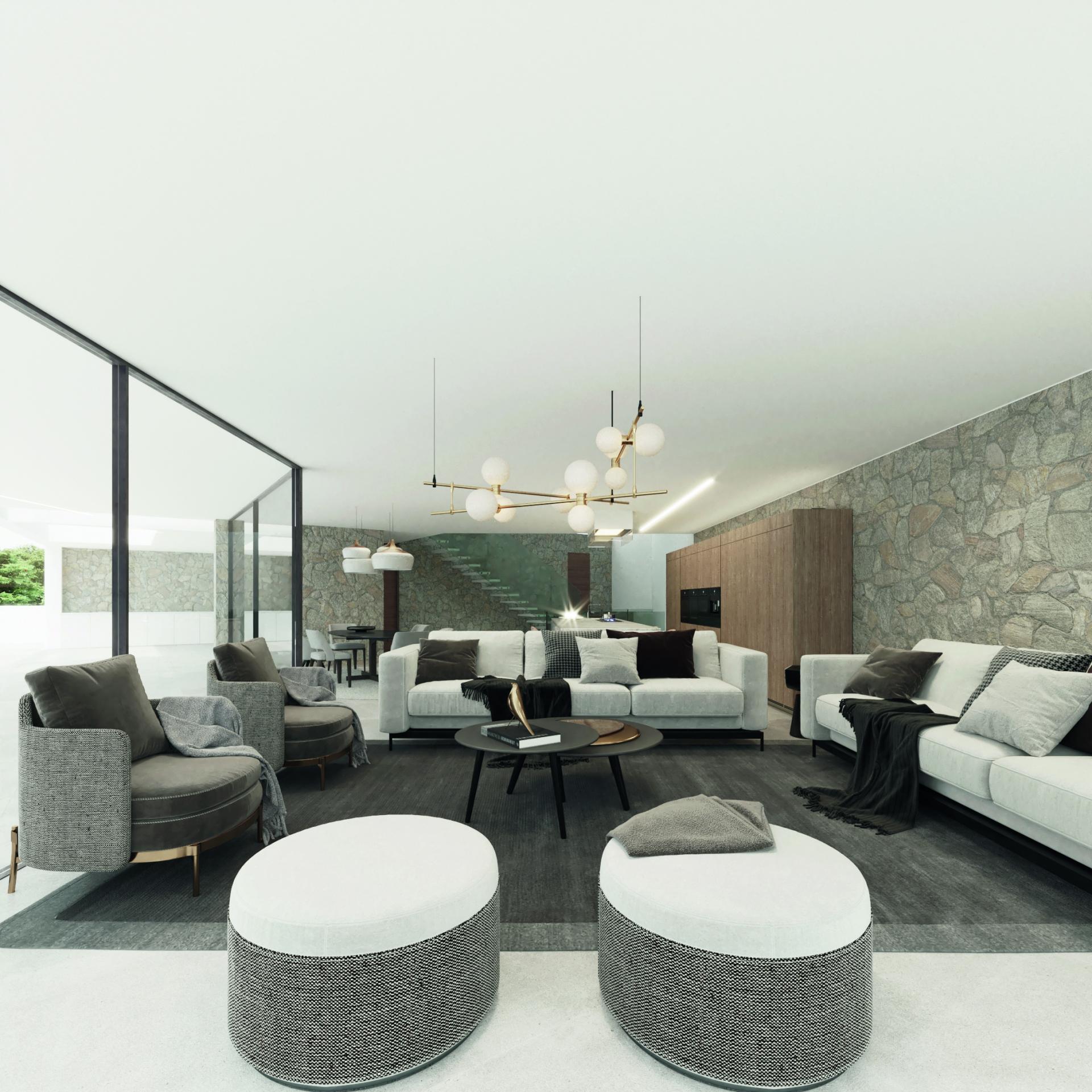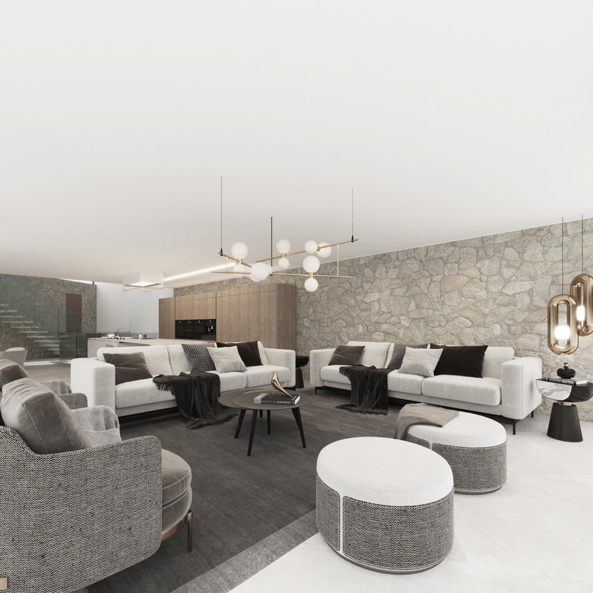 PROPERTY DETAILS Architecture & Design This villa is a striking fusion of Mediterranean warmth and cutting-edge design. Its façade, clad in premium natural stone and high-end finishes, exudes elegance while expansive windows invite natural light deep into the home. A central English patio brings serenity and connection to nature, balancing sophistication with tranquillity.