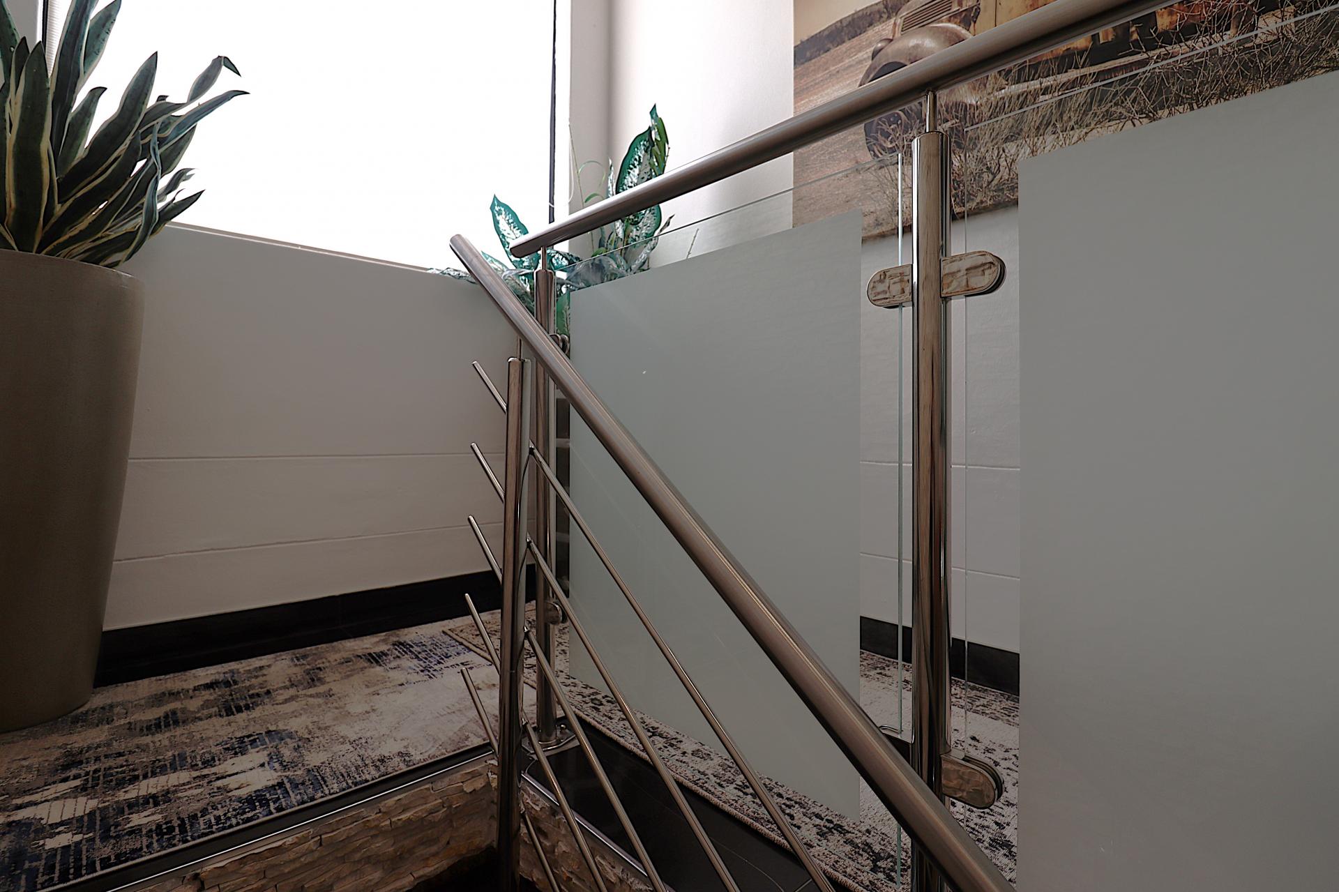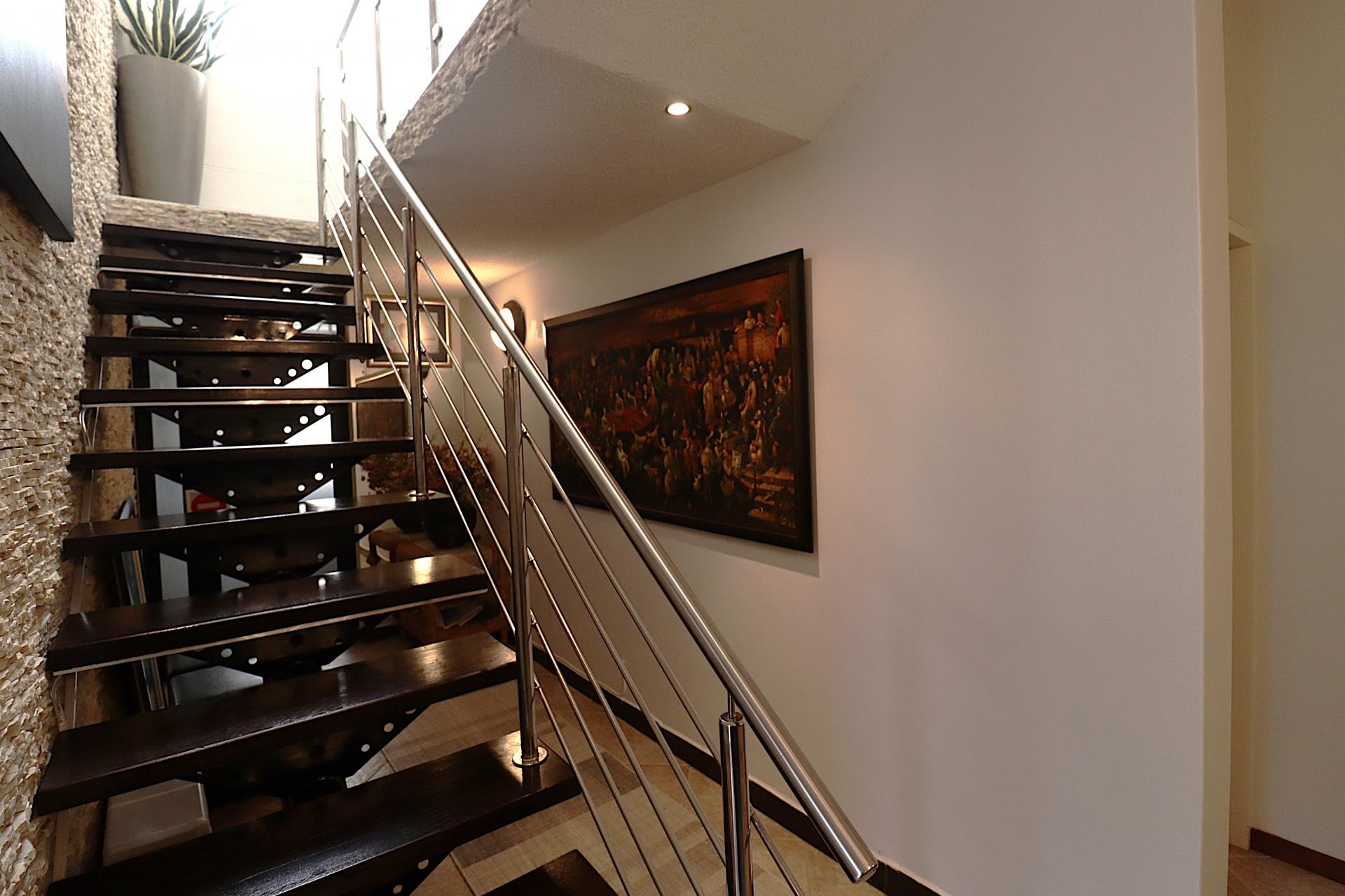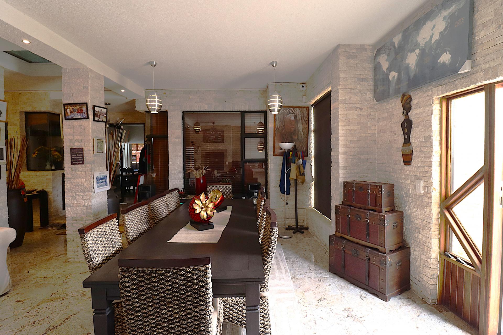 The main entrance walks into a spacious guest lounge and dining area on the ground level with an indoor BBQ. The second lounge and dining space offers more privacy and forms part of the small cozy kitchen area.