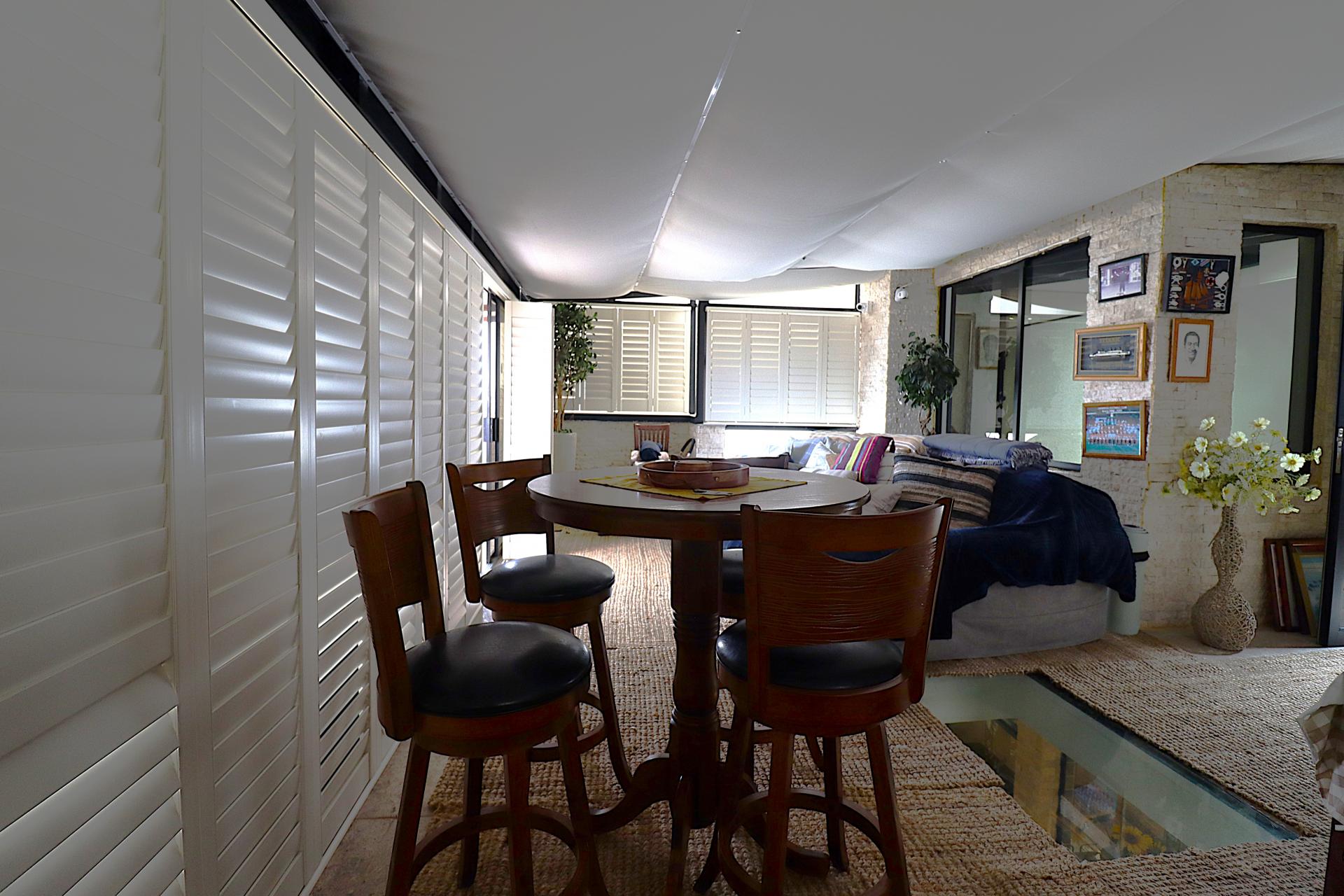 This apartment is a few steps from the beach with beautiful views to the ocean and beach from the private lounge and balcony upstairs.