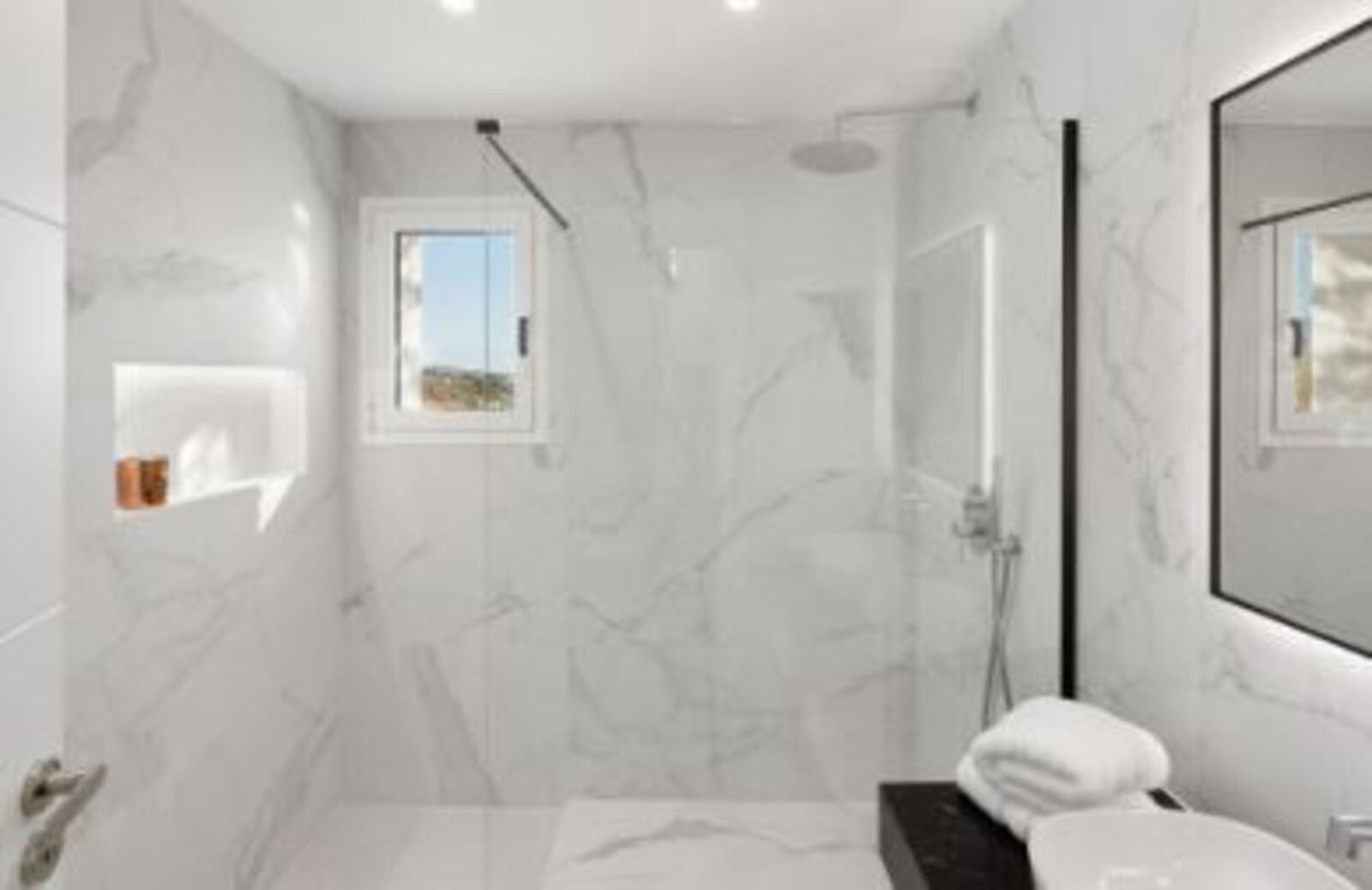 Occupying the upper floor, the expansive master suite boasts a large bay window framing views of Marbella and the Mediterranean Sea. The suite includes generous wardrobe space and a luxurious en suite bathroom, offering the perfect retreat.