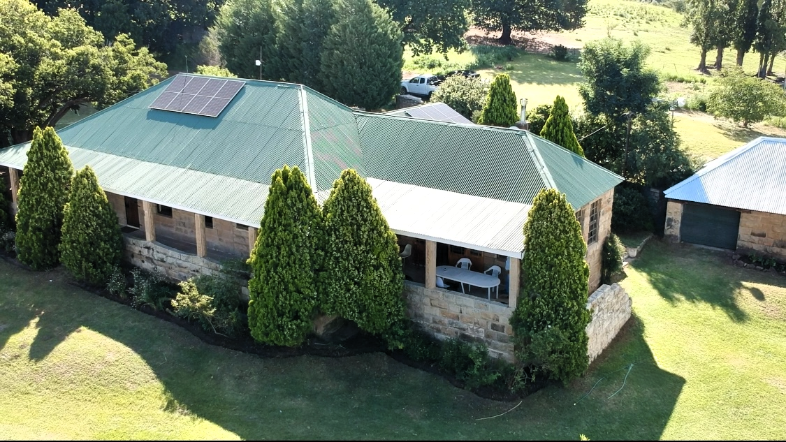 Eskom connection available (currently switched off), supplemented by a generator and 10 solar panels (8 kW inverter) to support off-grid living.