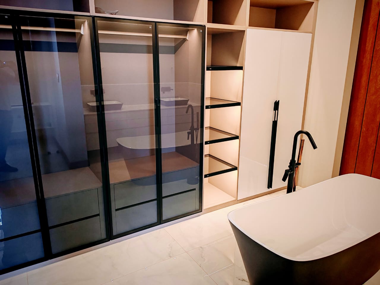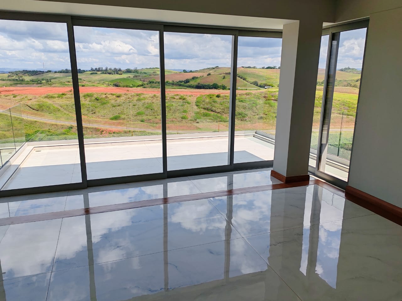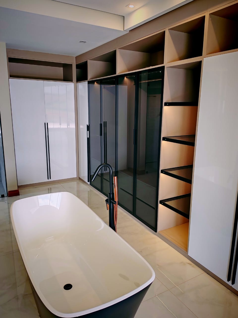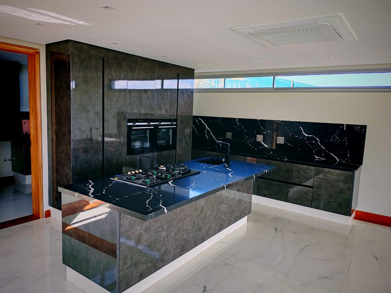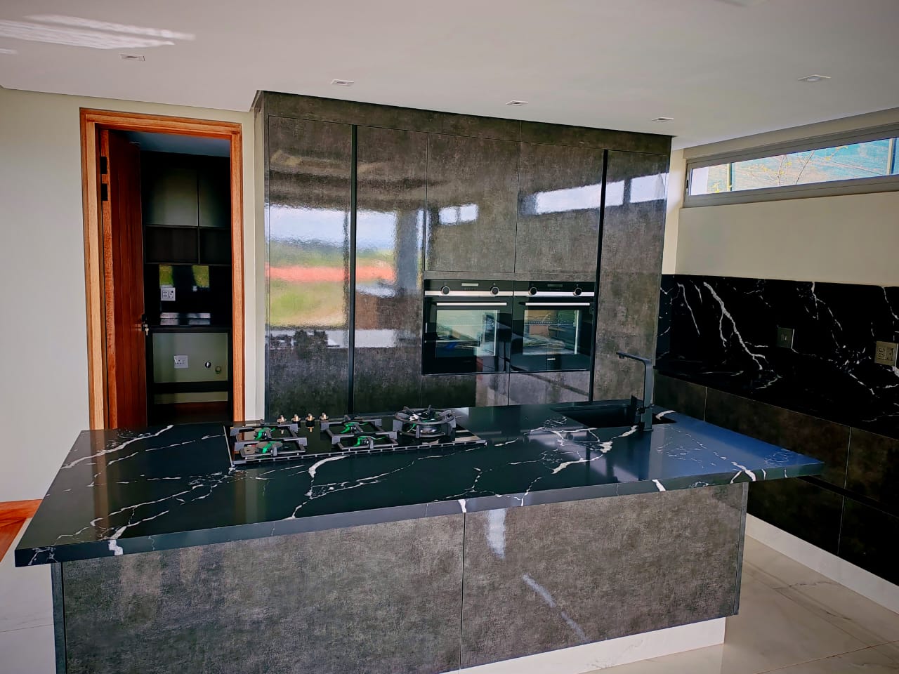 This new, modern, 4-bedroom, 4-bathroom house is an absolute delight. On entering, you are greeted by panoramic views over the Ernie Els Golf Course and greenbelt , seamlessly connecting outdoor and indoor living. The double volume design and floor to ceiling windows lead to a light and airy feel throughout.