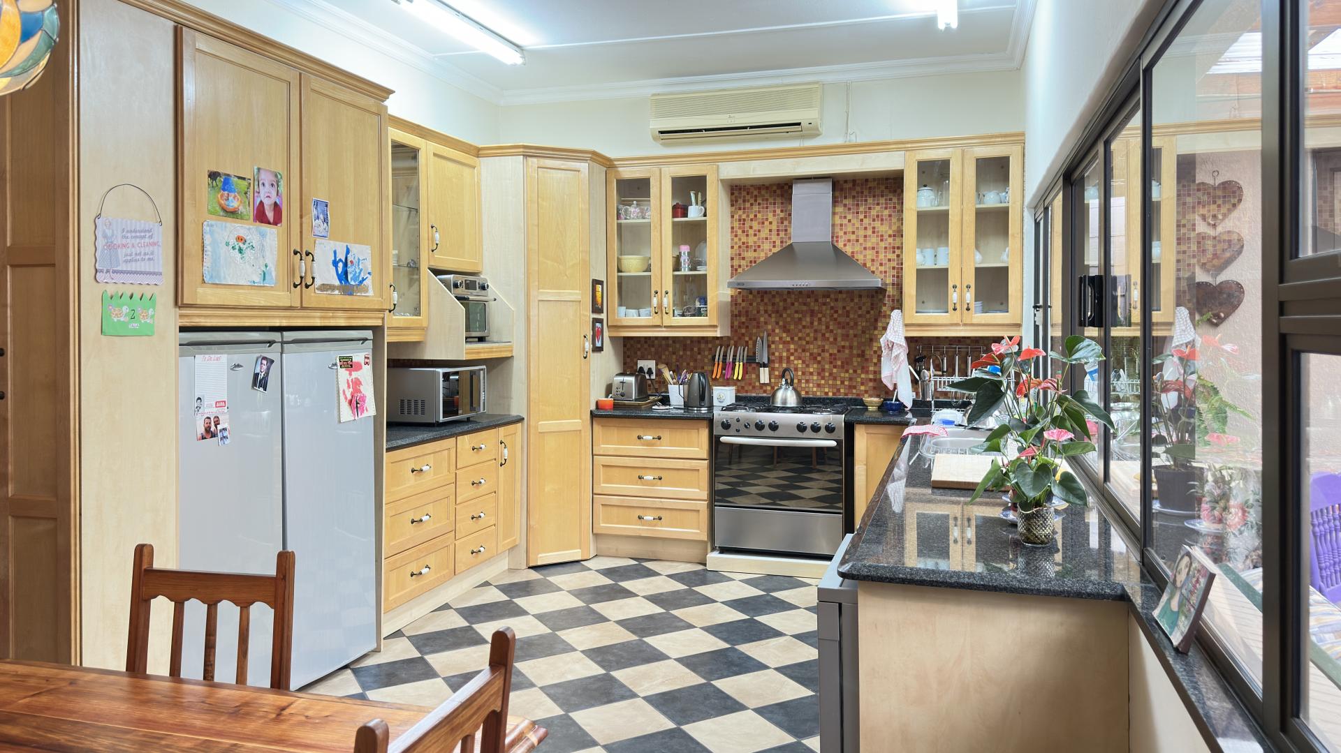 Four spacious bedrooms with built-in wardrobes, including a main suite complete with air conditioning, ceiling fan, and a full en-suite bathroom.