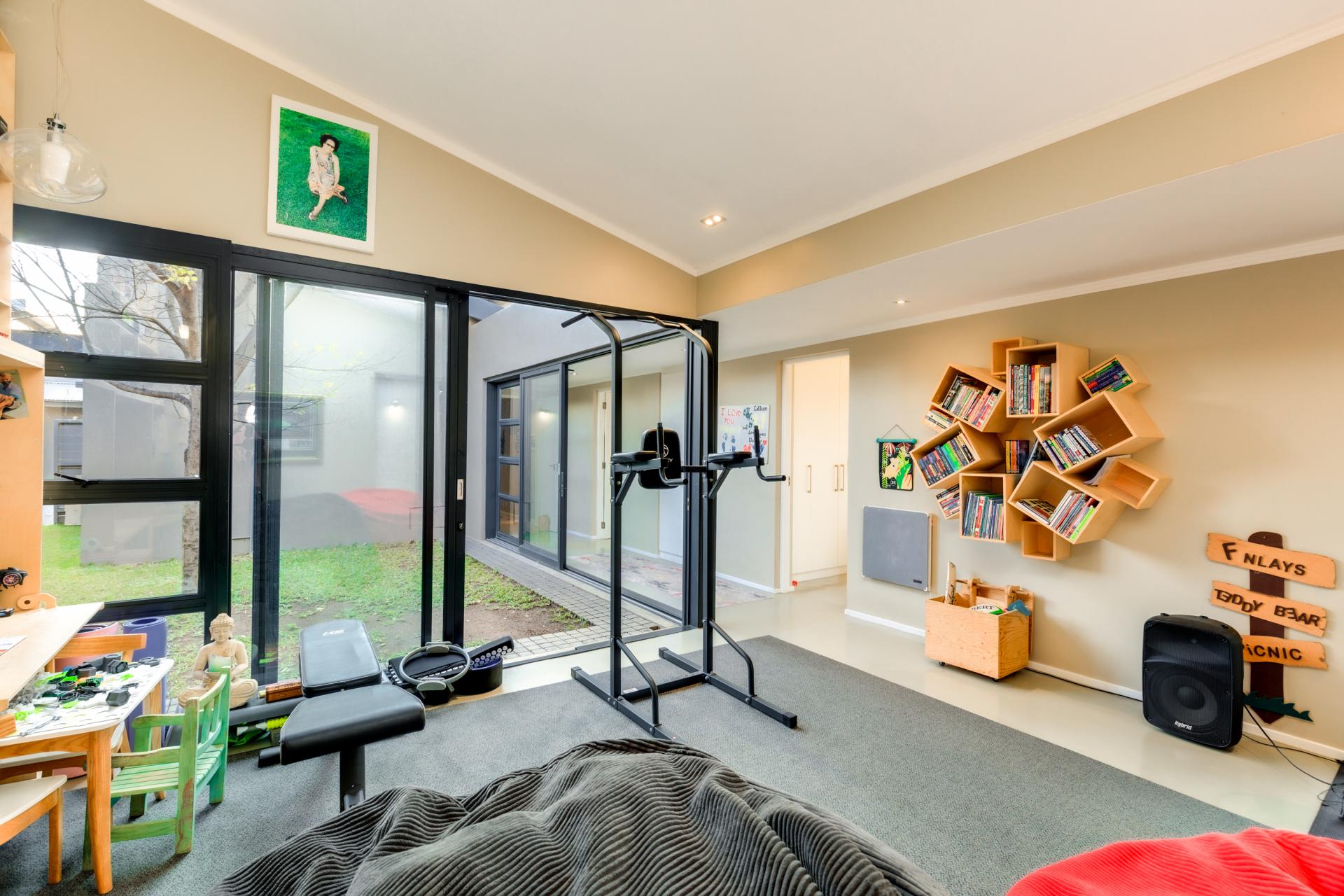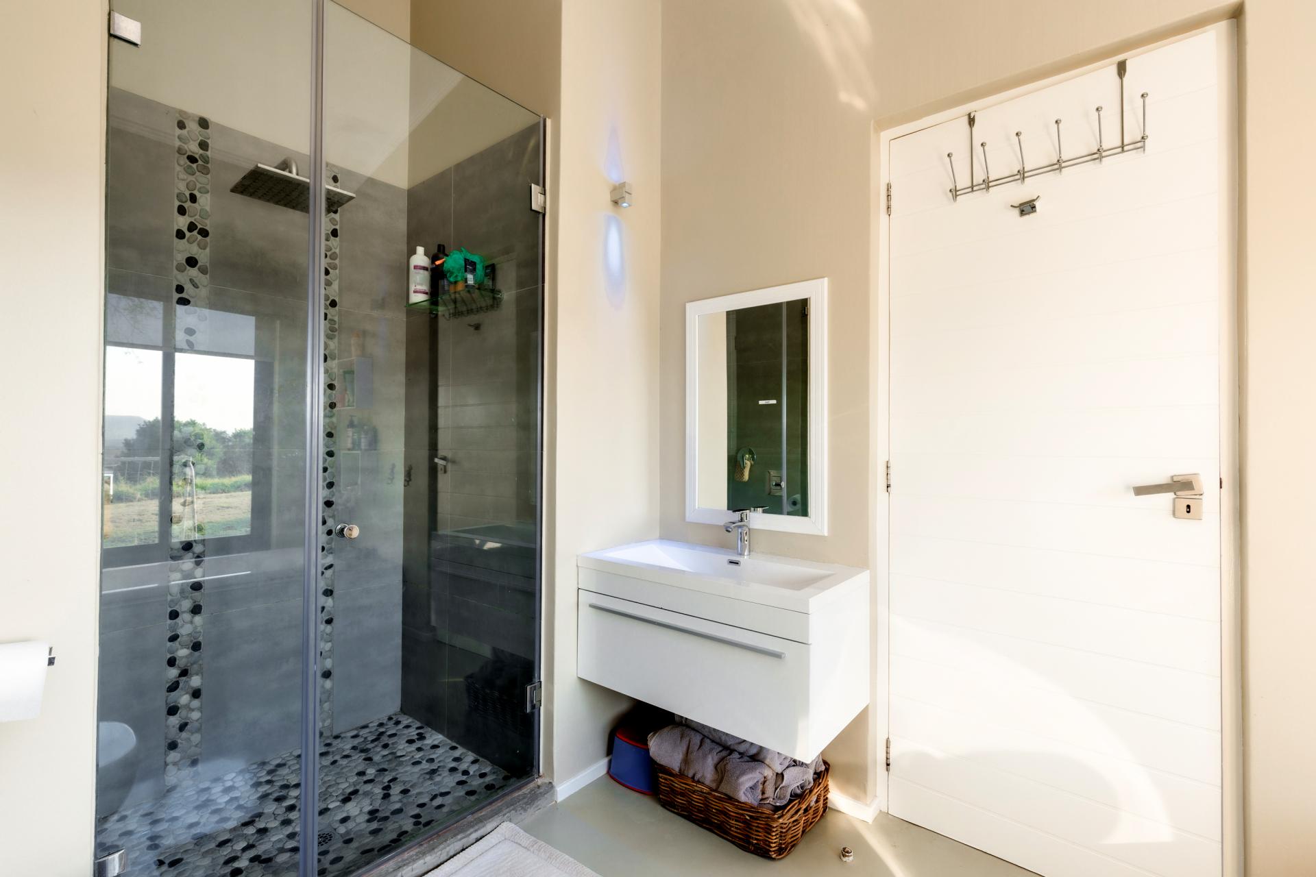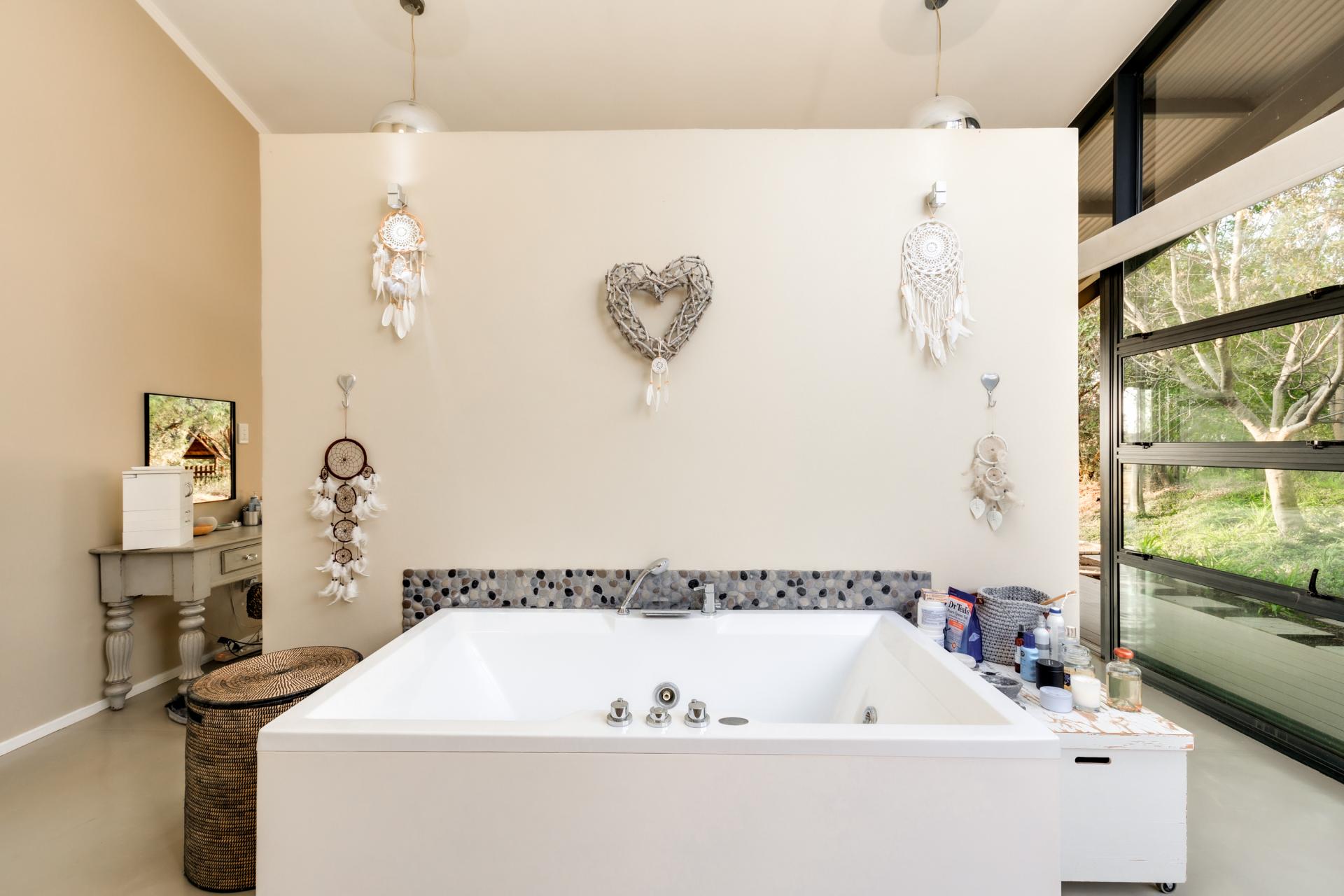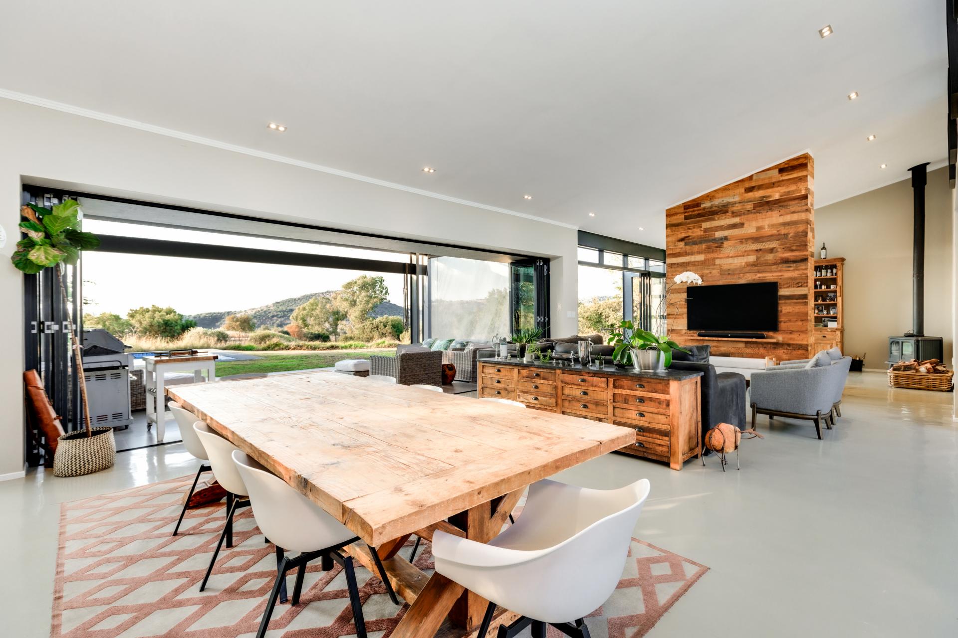 Set on one of the top 10 largest stands in Monaghan Farm, the 4-bedroom, 3-bathroom residence was designed for off-grid resilience and effortless indoor-outdoor flow. At the heart of the home is a bespoke Blu-Line kitchen, fully equipped with built-in Miele appliances, an integrated fridge/freezer, gas pizza oven, and both gas and induction hobs — for cooking during loadshedding. The living space is warmed by a massive Morso wood-burning fireplace (plus one in the master suite too), and the house is wired throughout for Wi-Fi, fibre, and sound. The home includes a large study/play area leading onto a central courtyard, a private staff suite with its own kitchenette and bathroom, and offers ample space for extended additions such as a studio, garage, or flatlet.