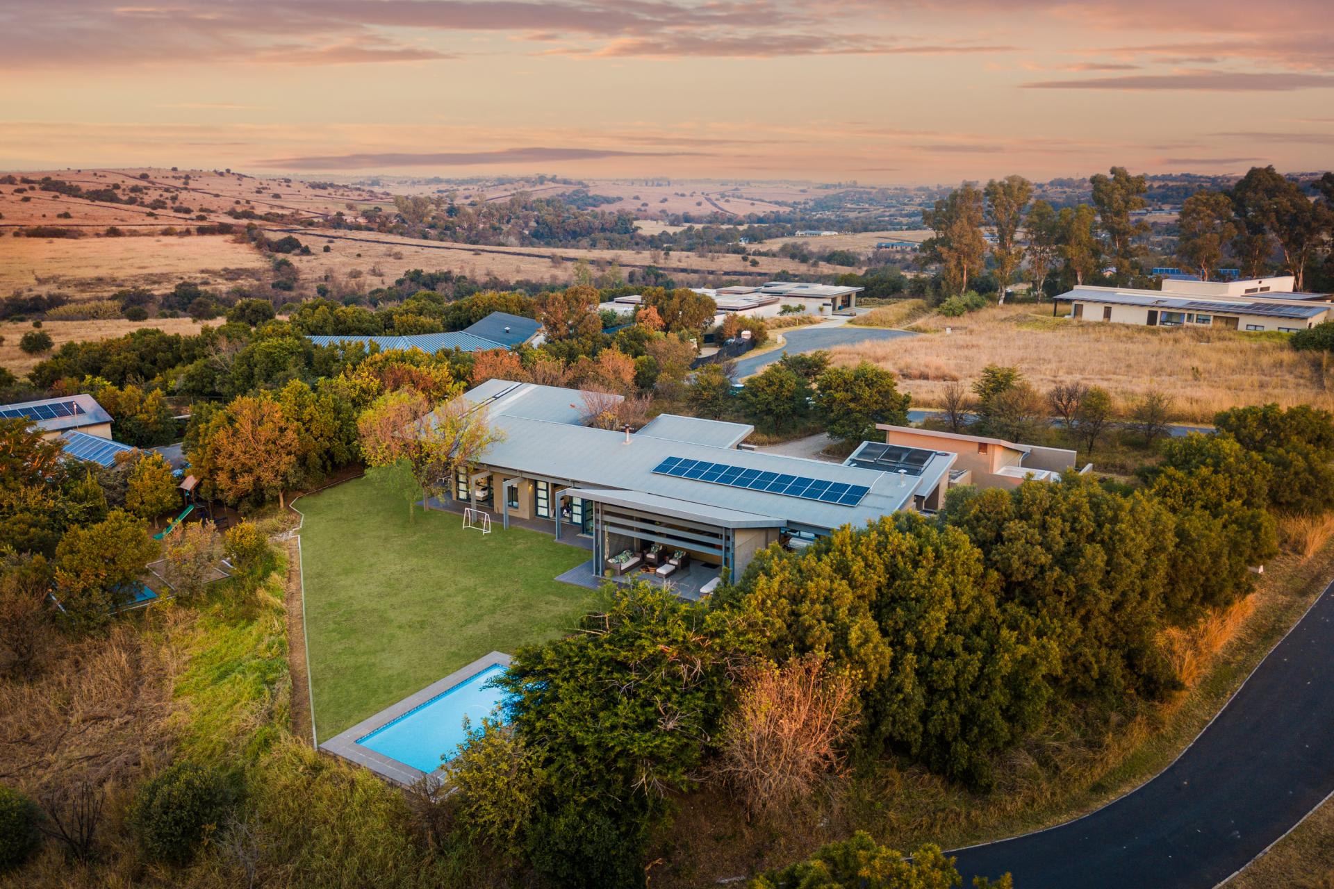 A Fine & Country Exquisite Exclusive Mandate - positioned on a quiet, elevated corner of Monaghan Farm, this beautifully designed steel-frame home offers comfort, sustainability, and idyllic family living. With uninterrupted views across open land and no development possible in front of the property, it promises lasting privacy in one of Gauteng’s most environmentally conscious and secure estates.