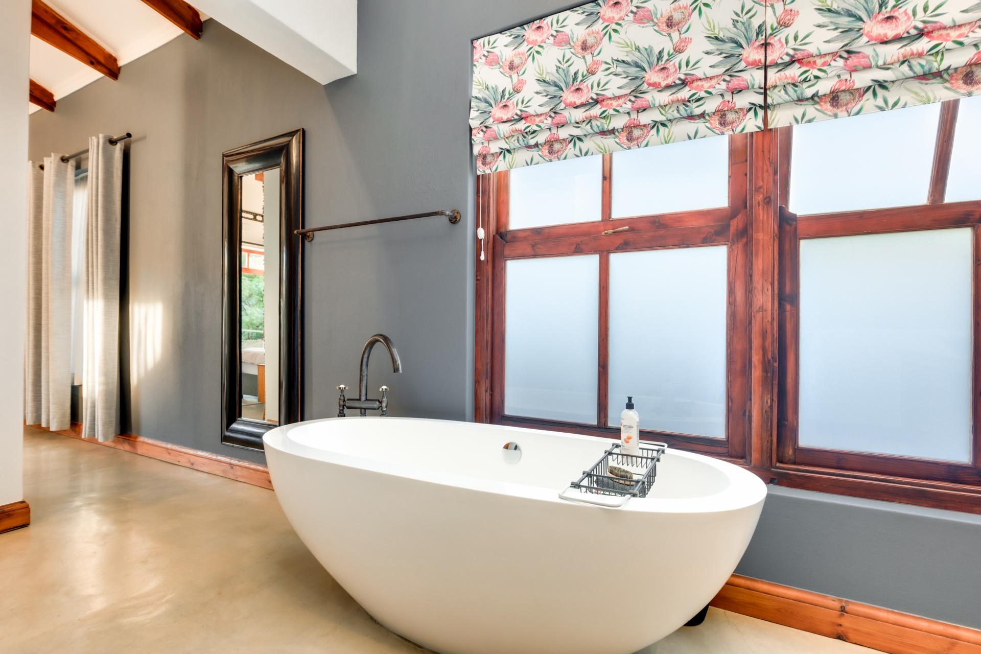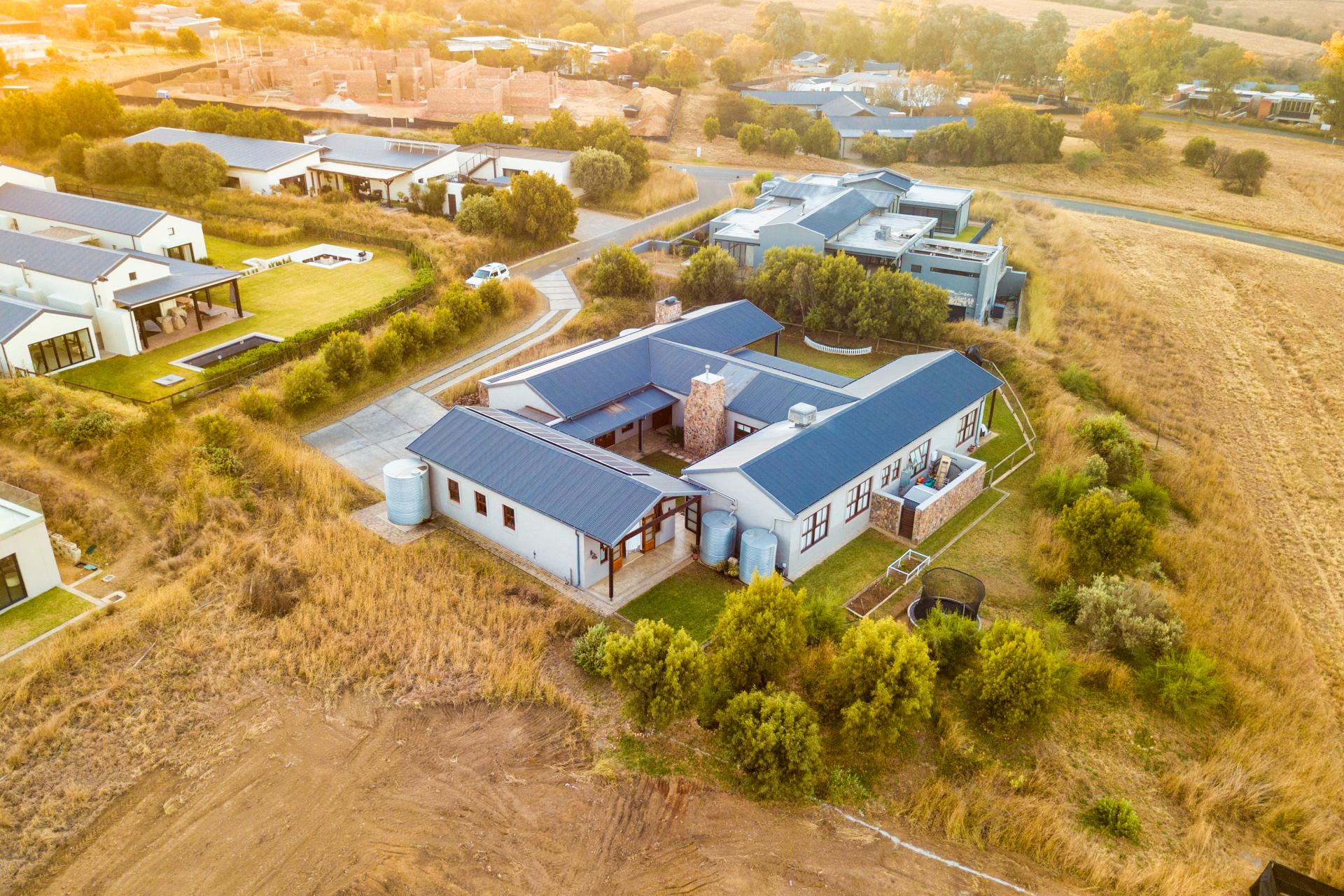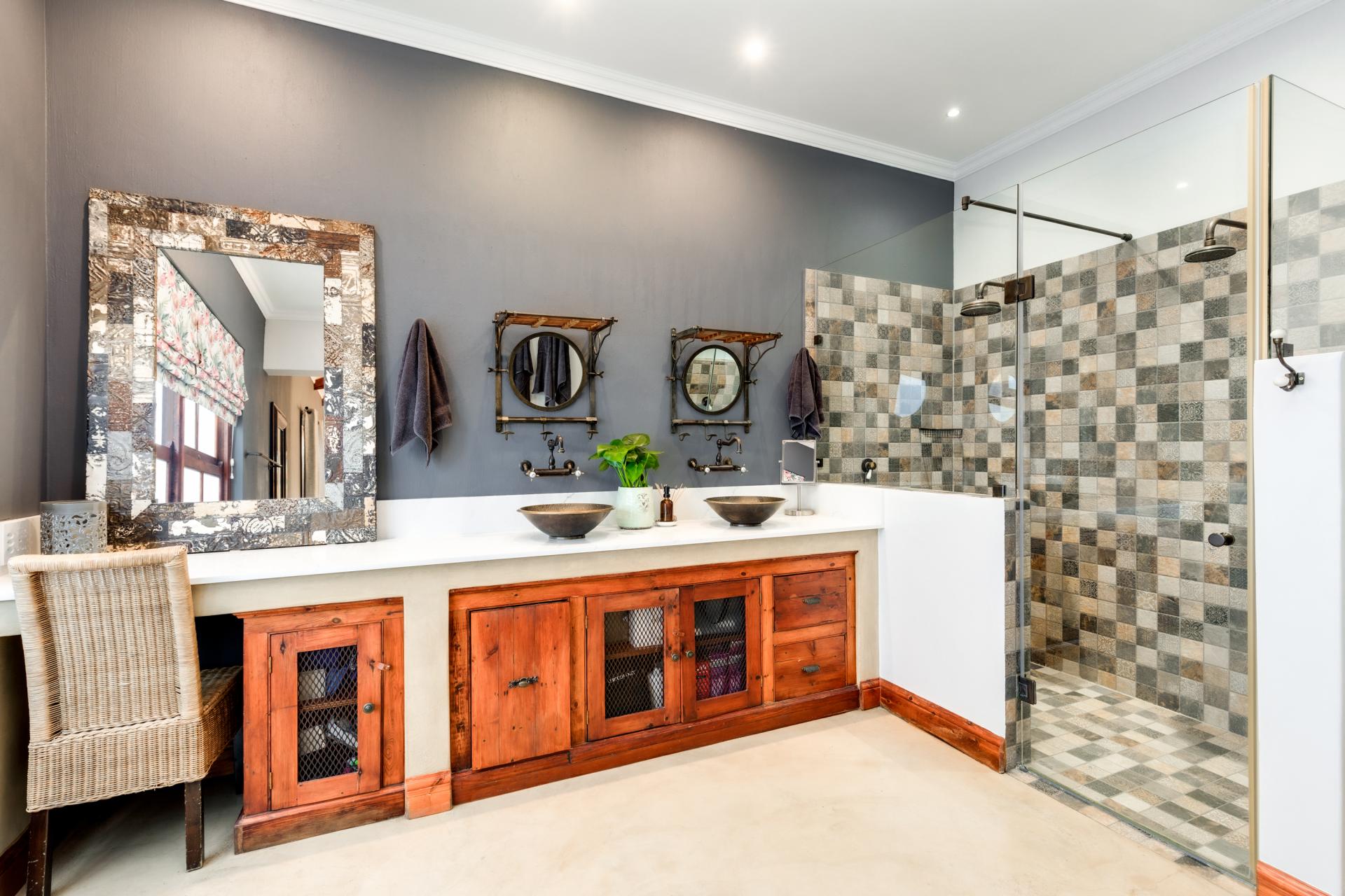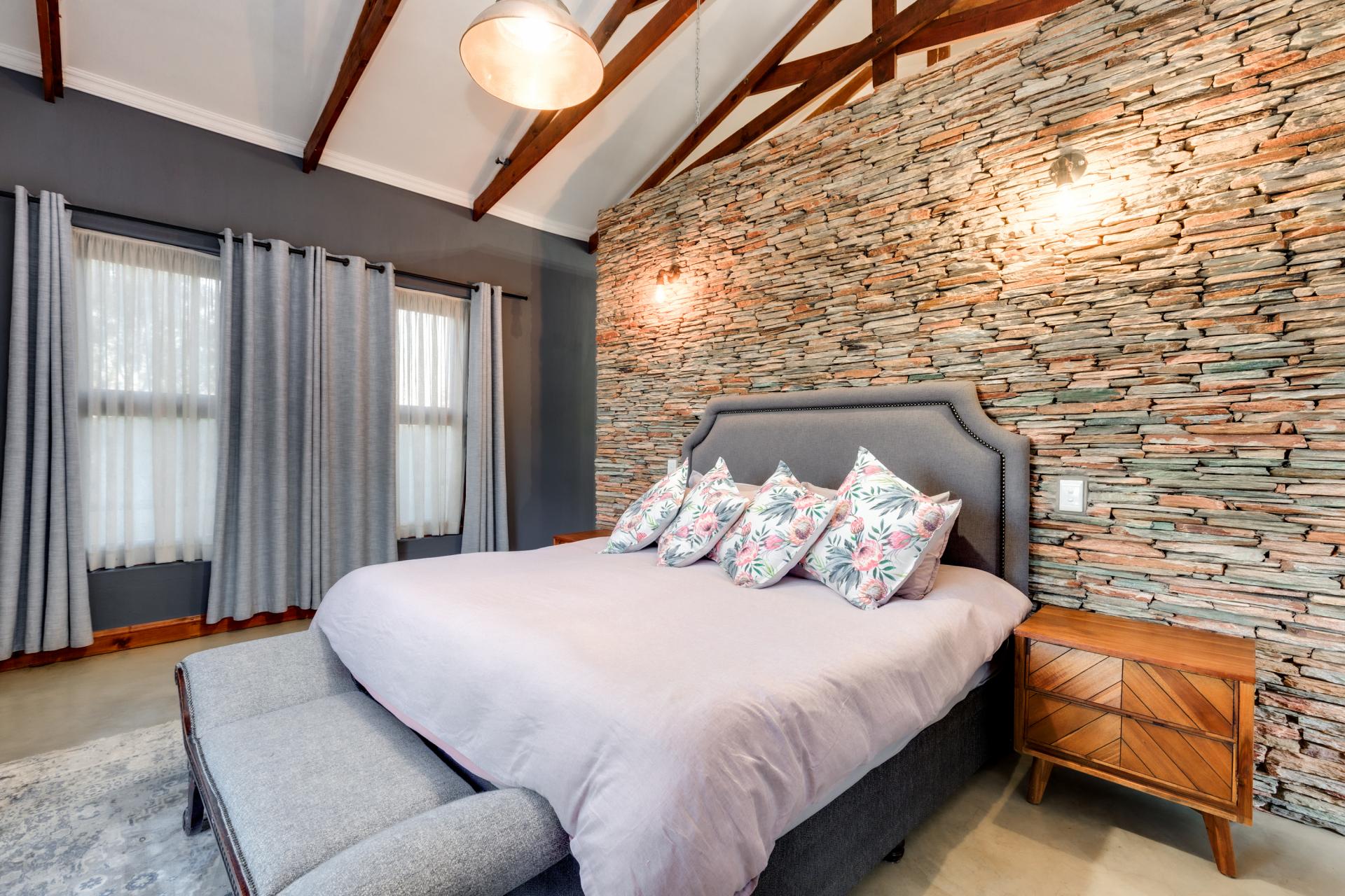 The home runs on a 5kVA Victron inverter with 12 solar panels and a 10kWh backup battery. There are 3 gas geysers, 30,000 litres of rainwater storage, and rain-fed irrigation for grass and trees. BreezeAir cooling and a Becker anthracite fireplace keep you covered during summer and winter.