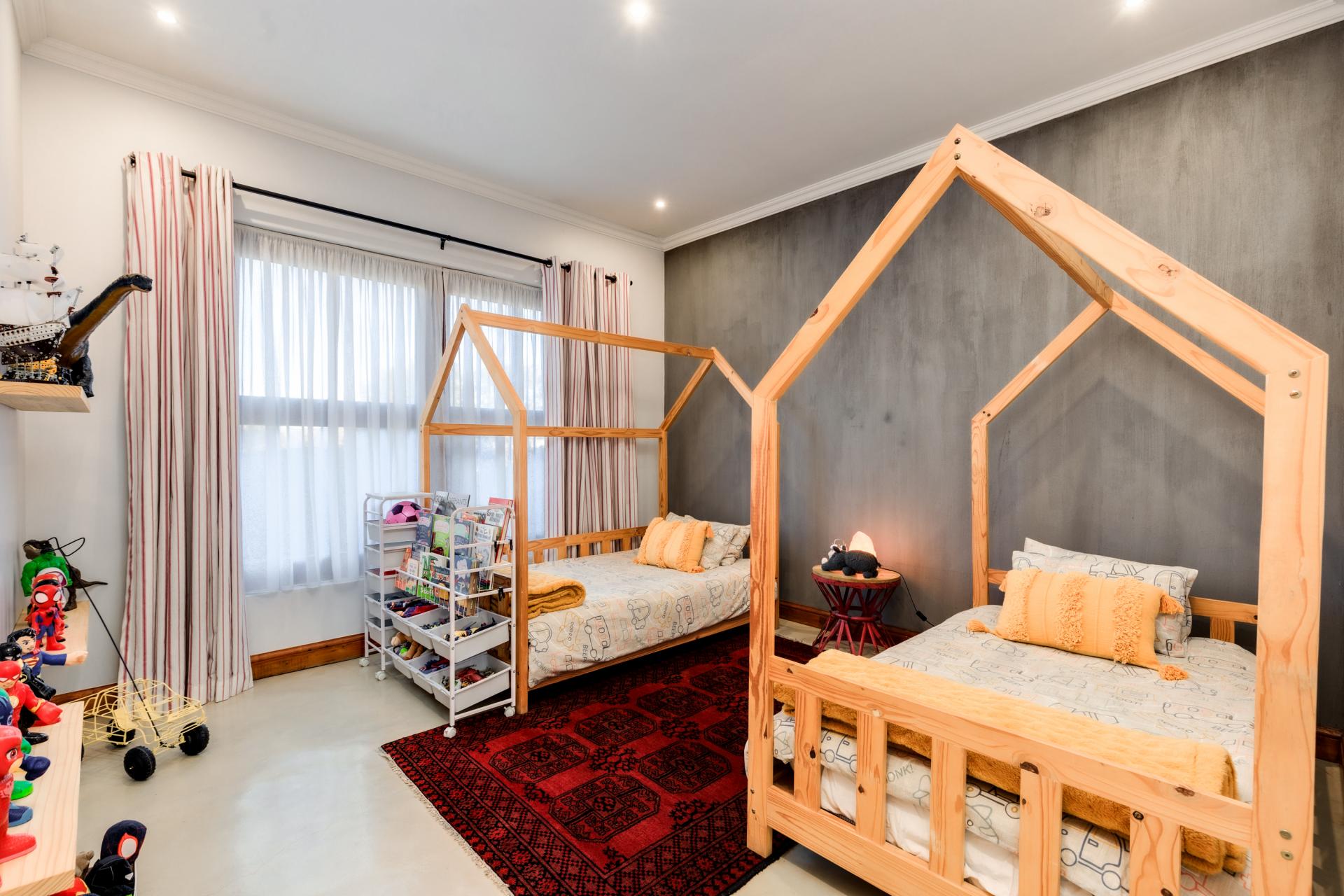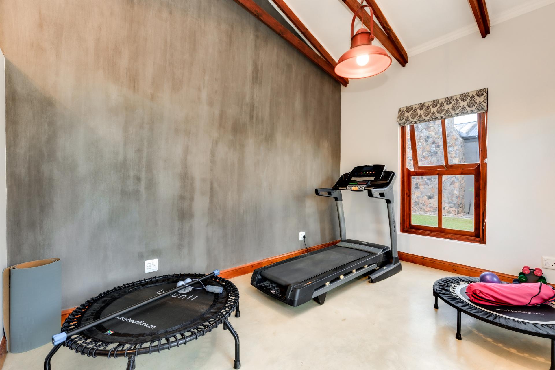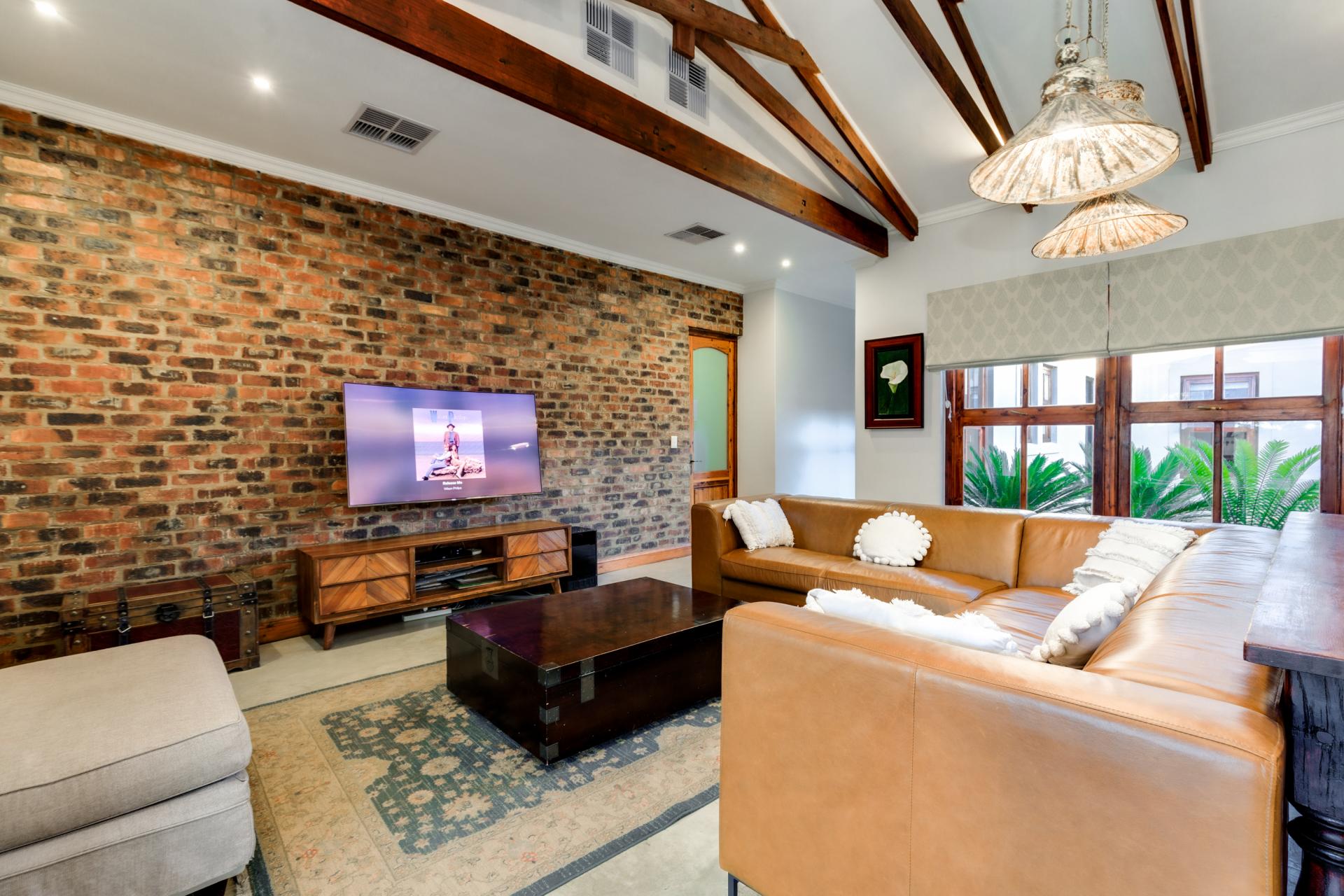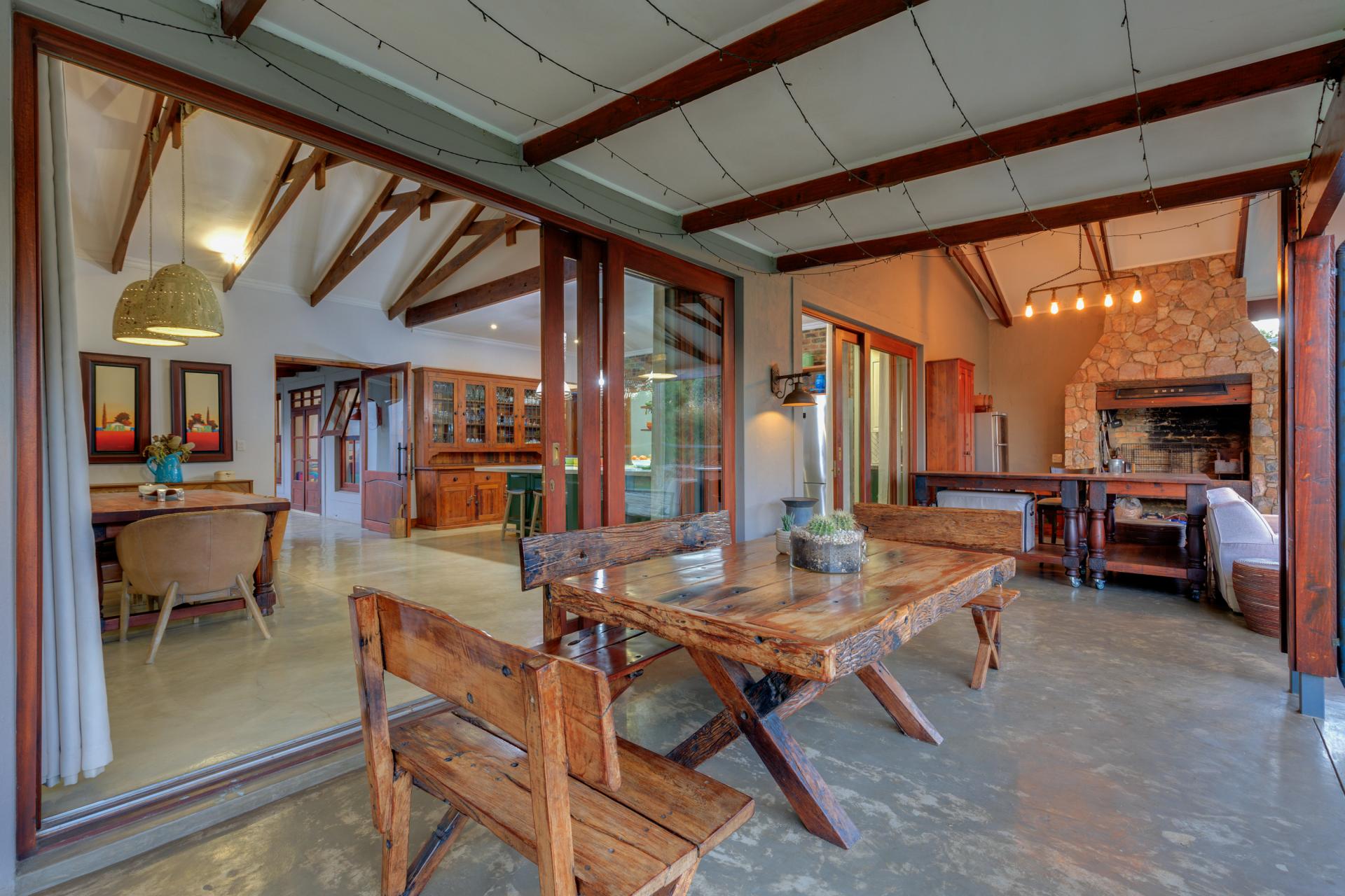 The home runs on a 5kVA Victron inverter with 12 solar panels and a 10kWh backup battery. There are 3 gas geysers, 30,000 litres of rainwater storage, and rain-fed irrigation for grass and trees. BreezeAir cooling and a Becker anthracite fireplace keep you covered during summer and winter.